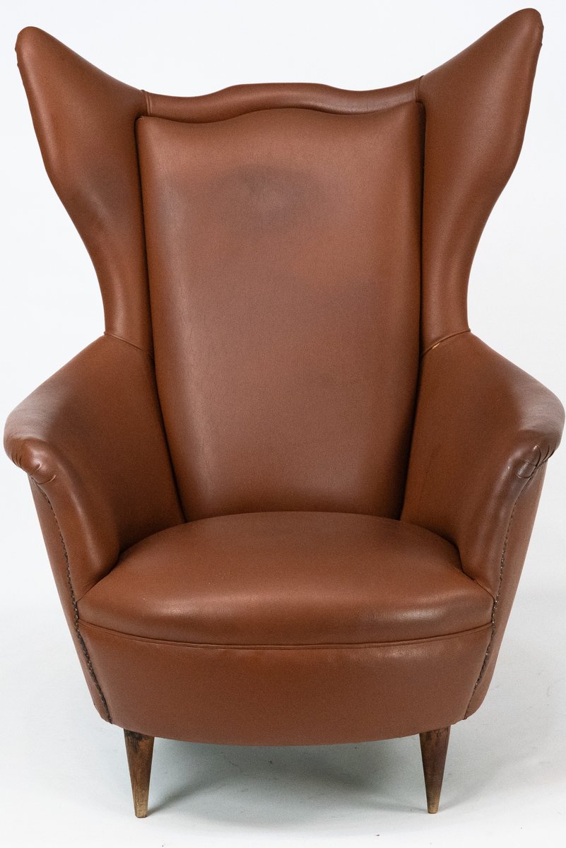 Mid-Century Italian Wingback Armchair in Leatherette, 1950s
