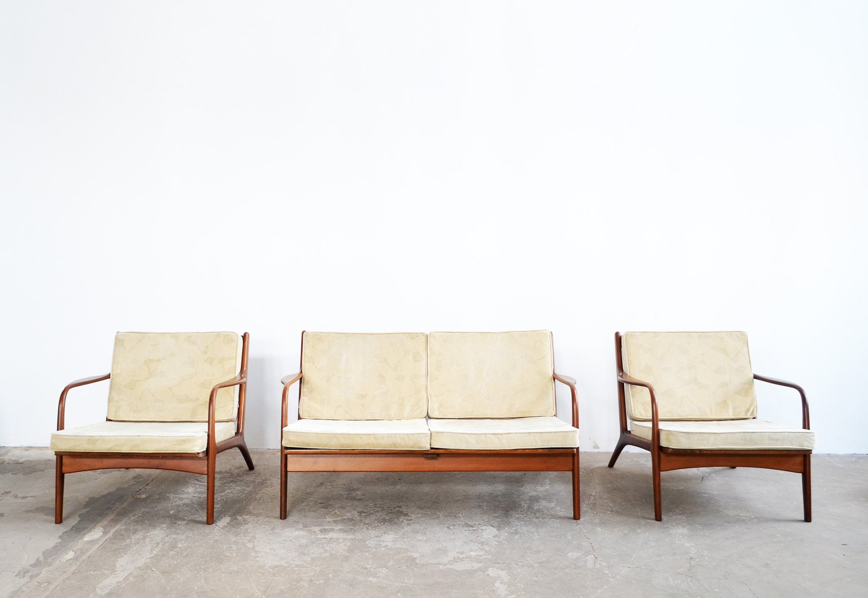 American designer Adrian Pearsall (1925-2011) was born in Trumansburg, New York, in 1925. He enlisted in the U.S. Navy at the age of seventeen. Subsequently, he studied architectural engineering at the University of Illinois, graduating in 1950. After only two years working in architecture, he decided to change his focus to furniture design. In 1952, he and his brother Richard founded Craft Associates, Inc. in Wilkes-Barre, Pennsylvania. In the beginning, the company primarily produced designs in wrought iron, but it soon came to specialize in wood furniture, especially walnut. Pearsall’s use of walnut in the structures of coffee tables and sofas became his signature look.