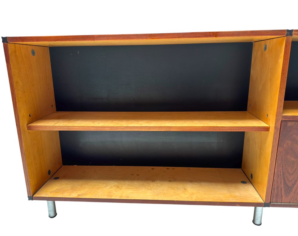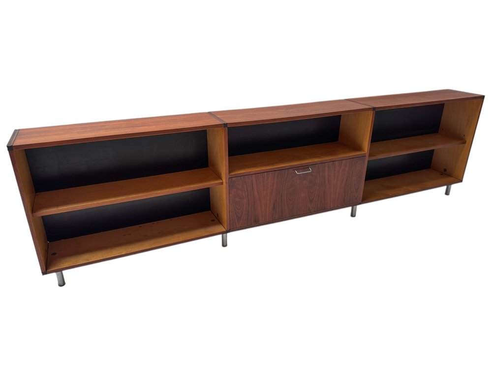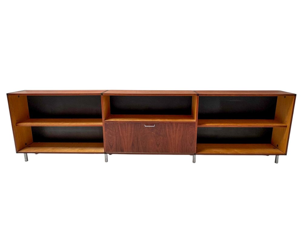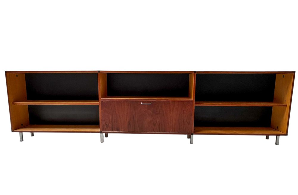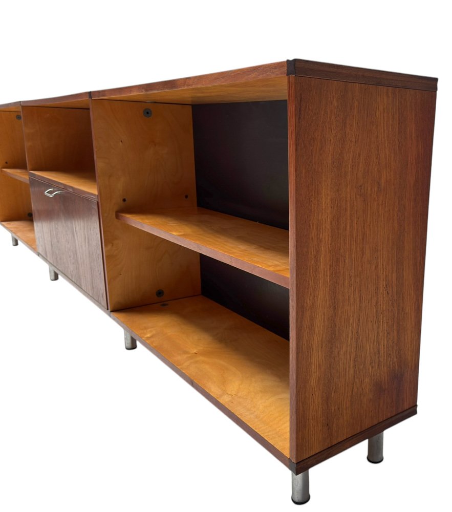In 1848, Cees Braakman (1917-1995), D. L.’s son, took the helm as designer and director and furthered the company’s modernist aims, advocating for low-cost, modular designs inspired by the likes of Charles & Ray Eames and Alvar Aalto—the latter of which created the first series of Pastoe geometric cabinets at the end of the 1940s. During the 1950s, the company focused on developing flexible cabinet systems that could be assembled by the consumer, which led to the highly customizable, highly successful Made-to-Measure storage system (1955). In 1957, Made-to-Measure furniture was awarded a silver medal at the 11th Trienniale in Milan and crowned with the Le Signe d’Or in Belgium.