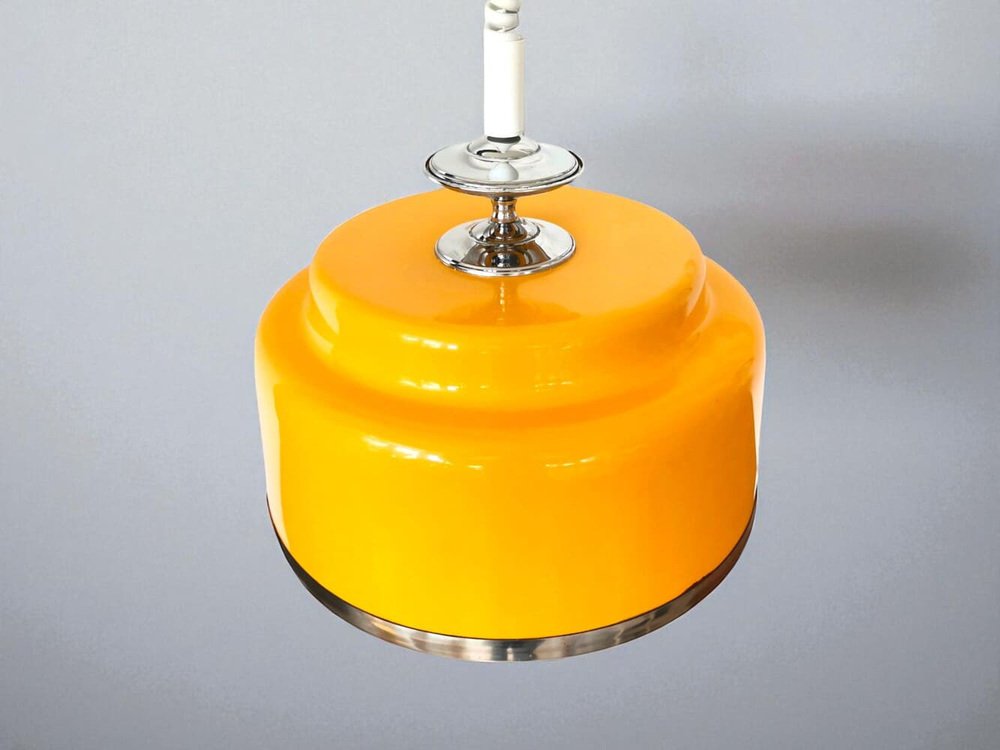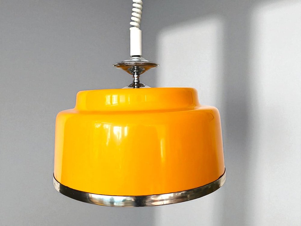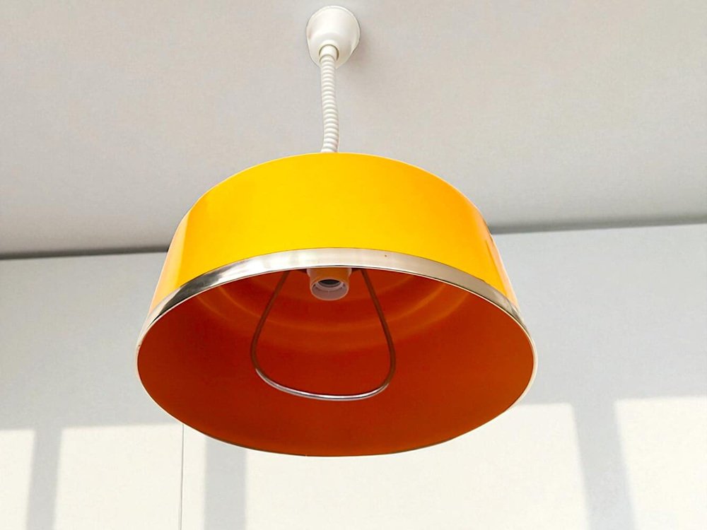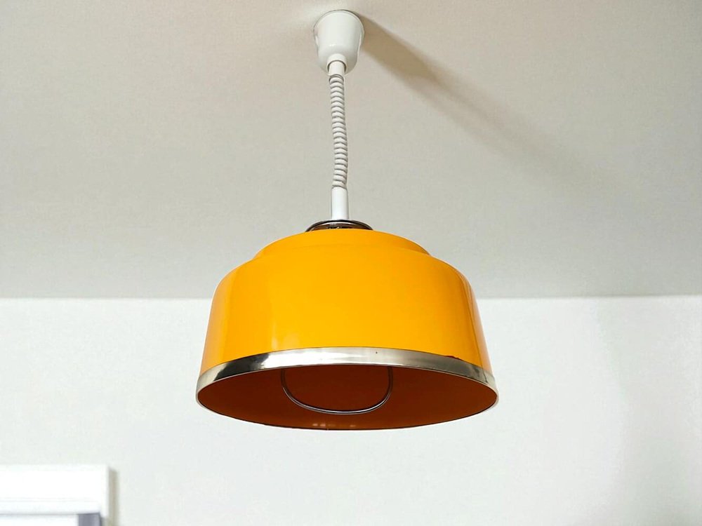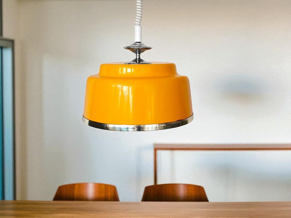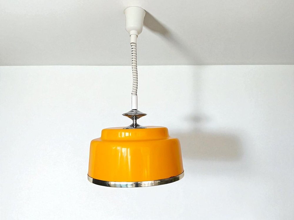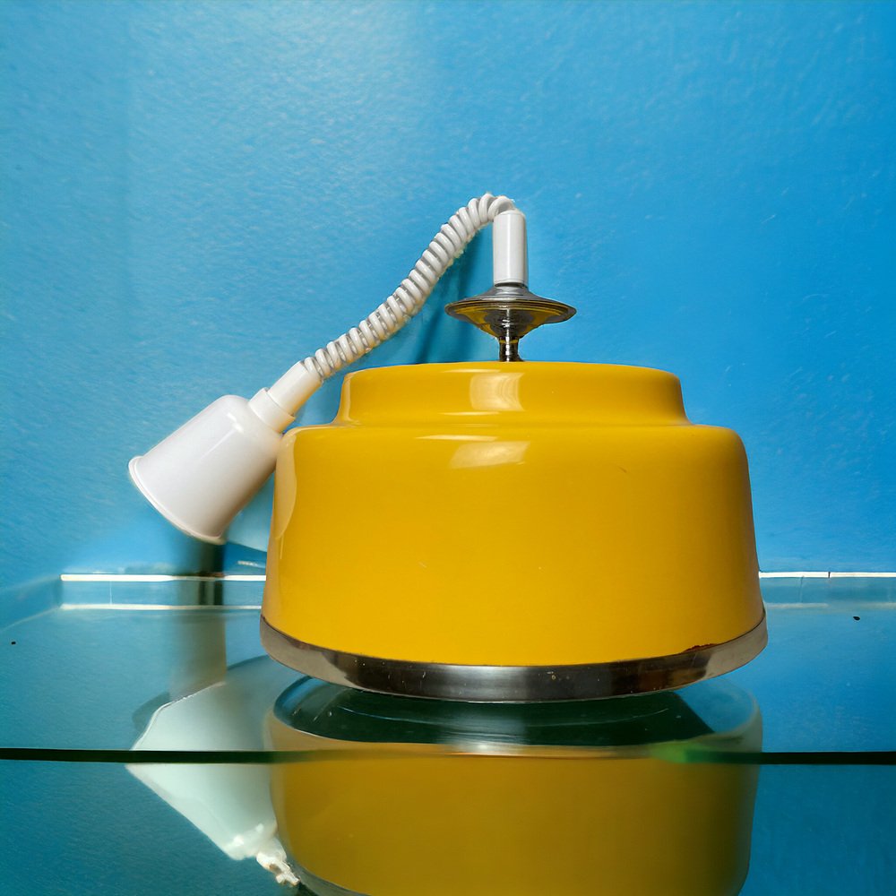 Mid-Century Modern Yellow Pull Down Kitchen Hanging Lamp, 1970s