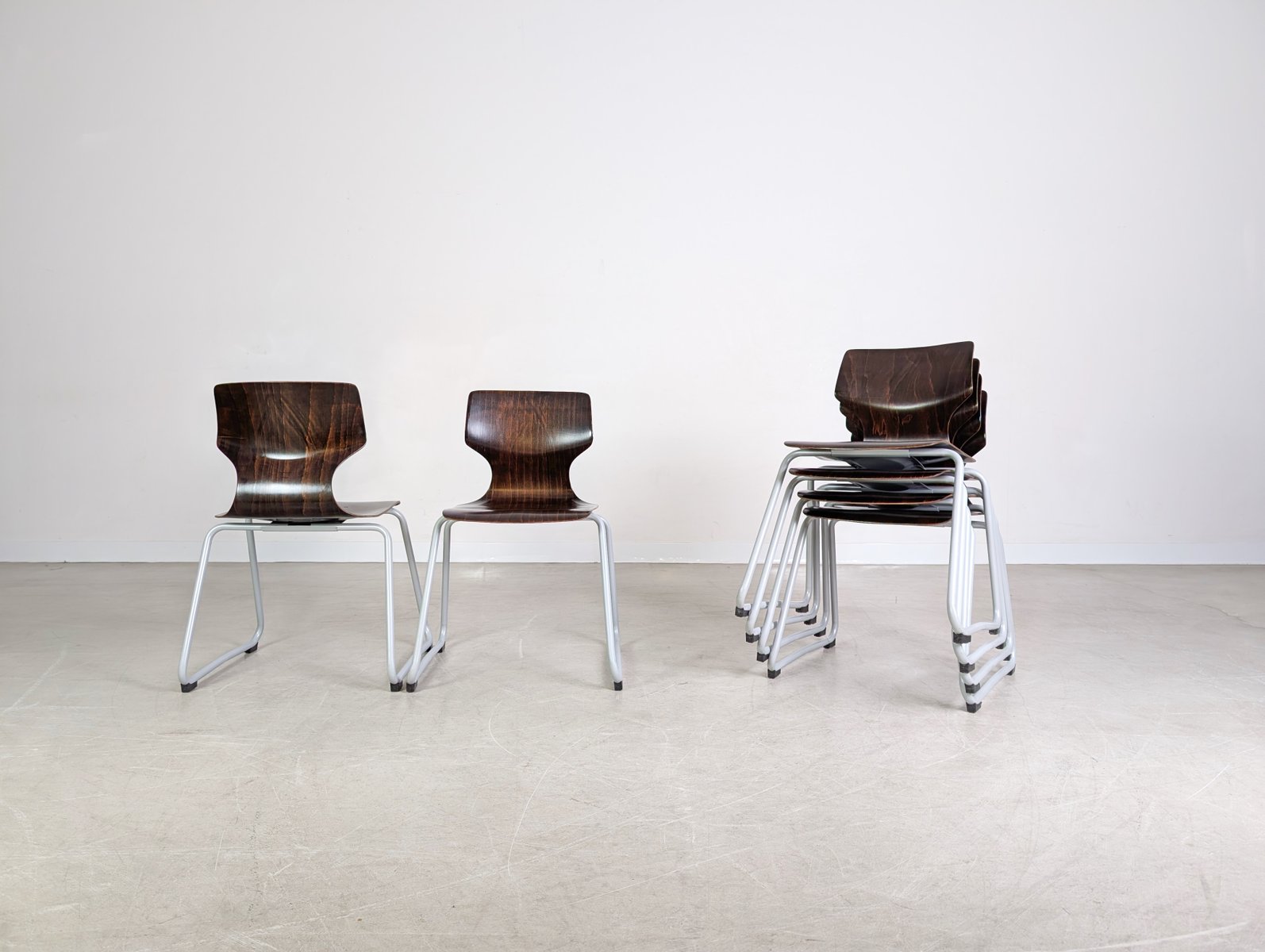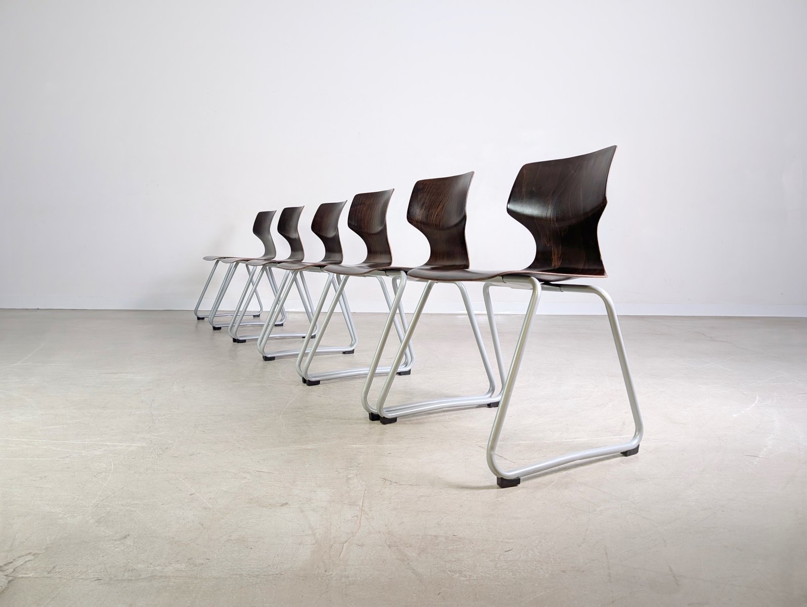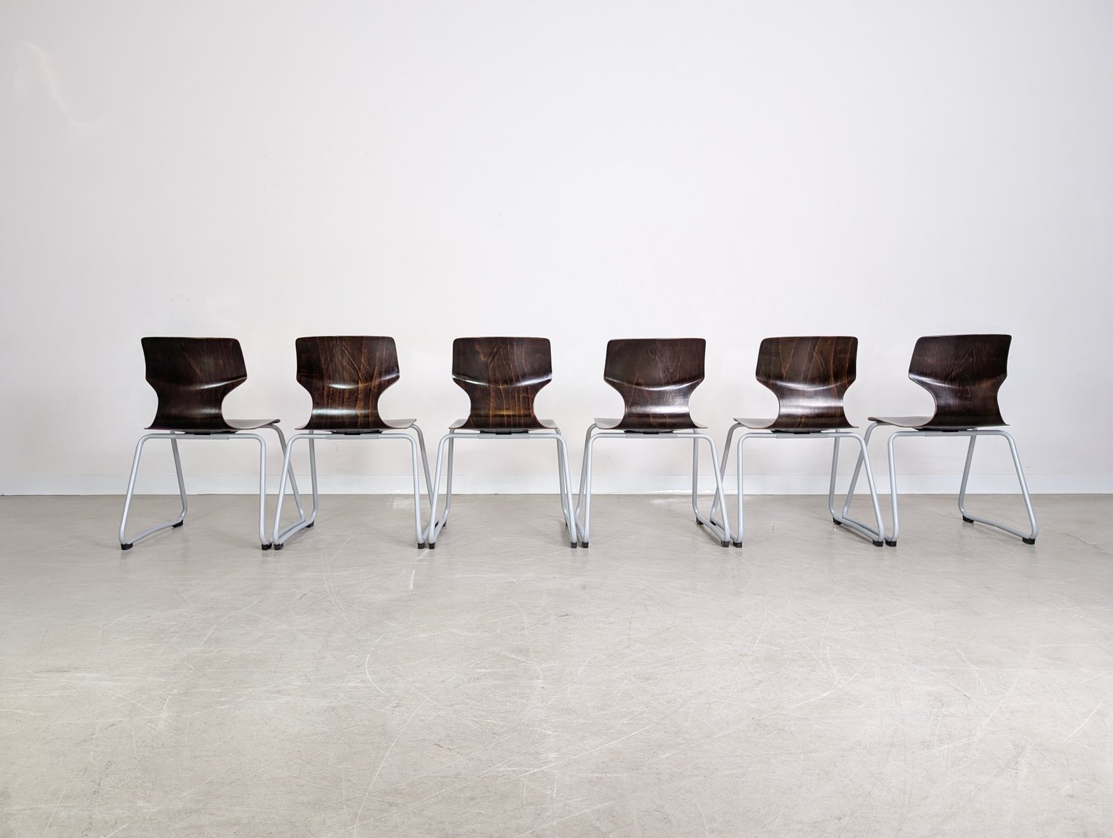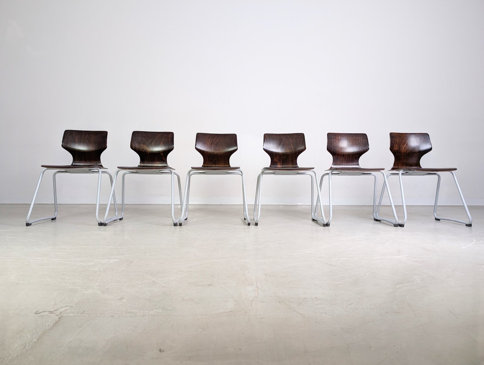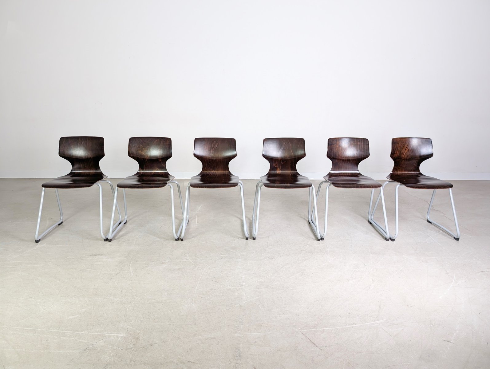 Mid-Century Paved Wooden Chairs, Set of 6