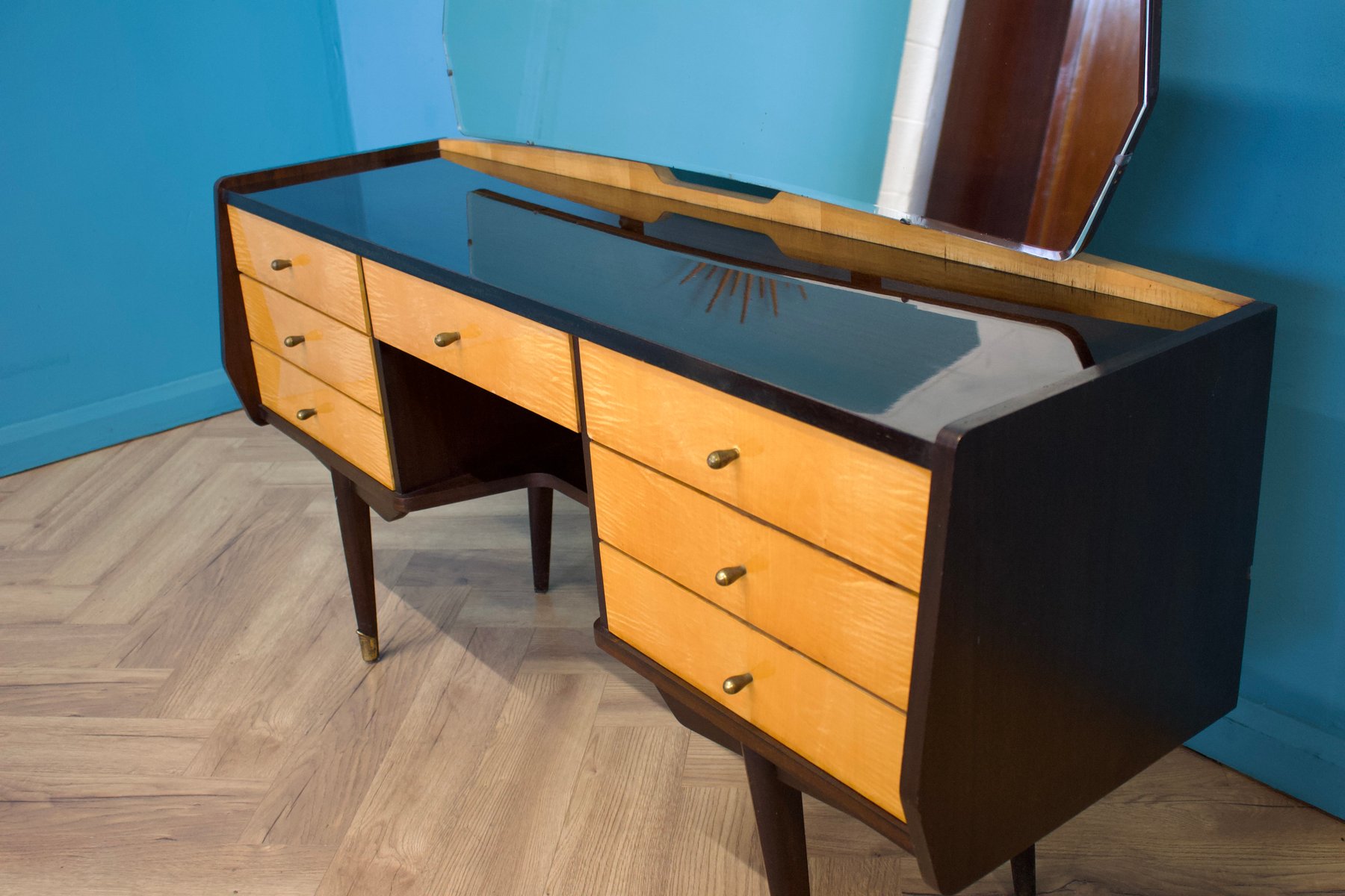 Mid-Century Satin Birch and Walnut Dressing Table from Times Furnishings, 1960s