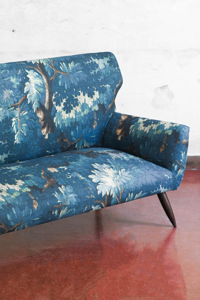 Mid-Century Sofa and Bergère Armchairs Set with Dedar Fabric Upholstery, 1950s, Set of 3