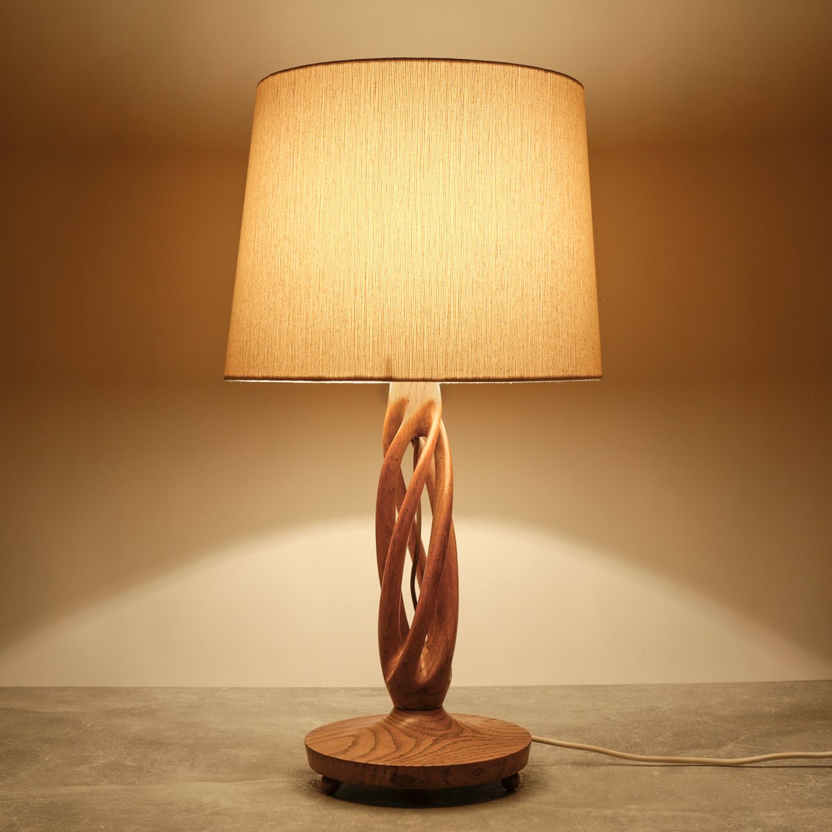 Mid-Century Table Lamp with Handmade Oak Lamp Base, 1960s