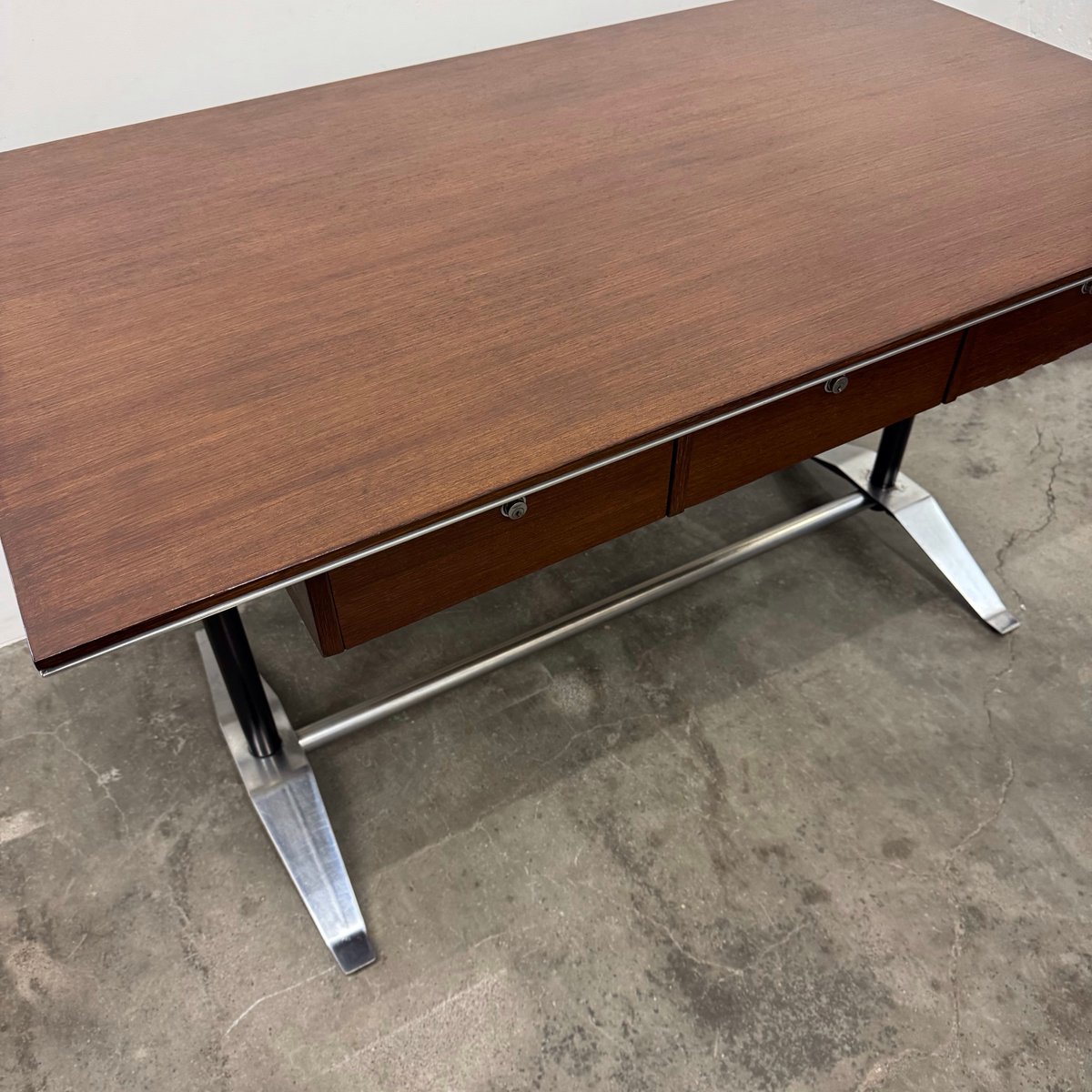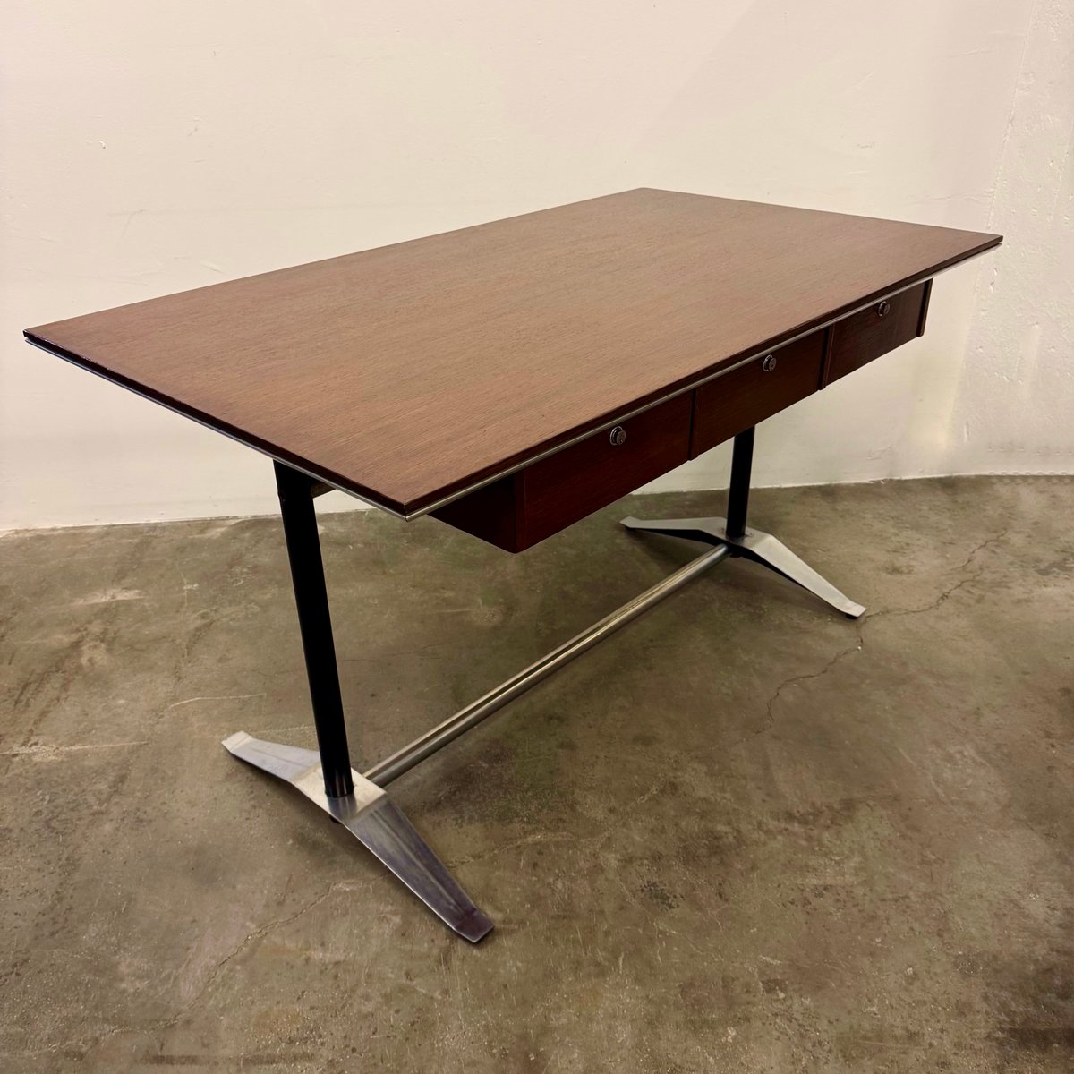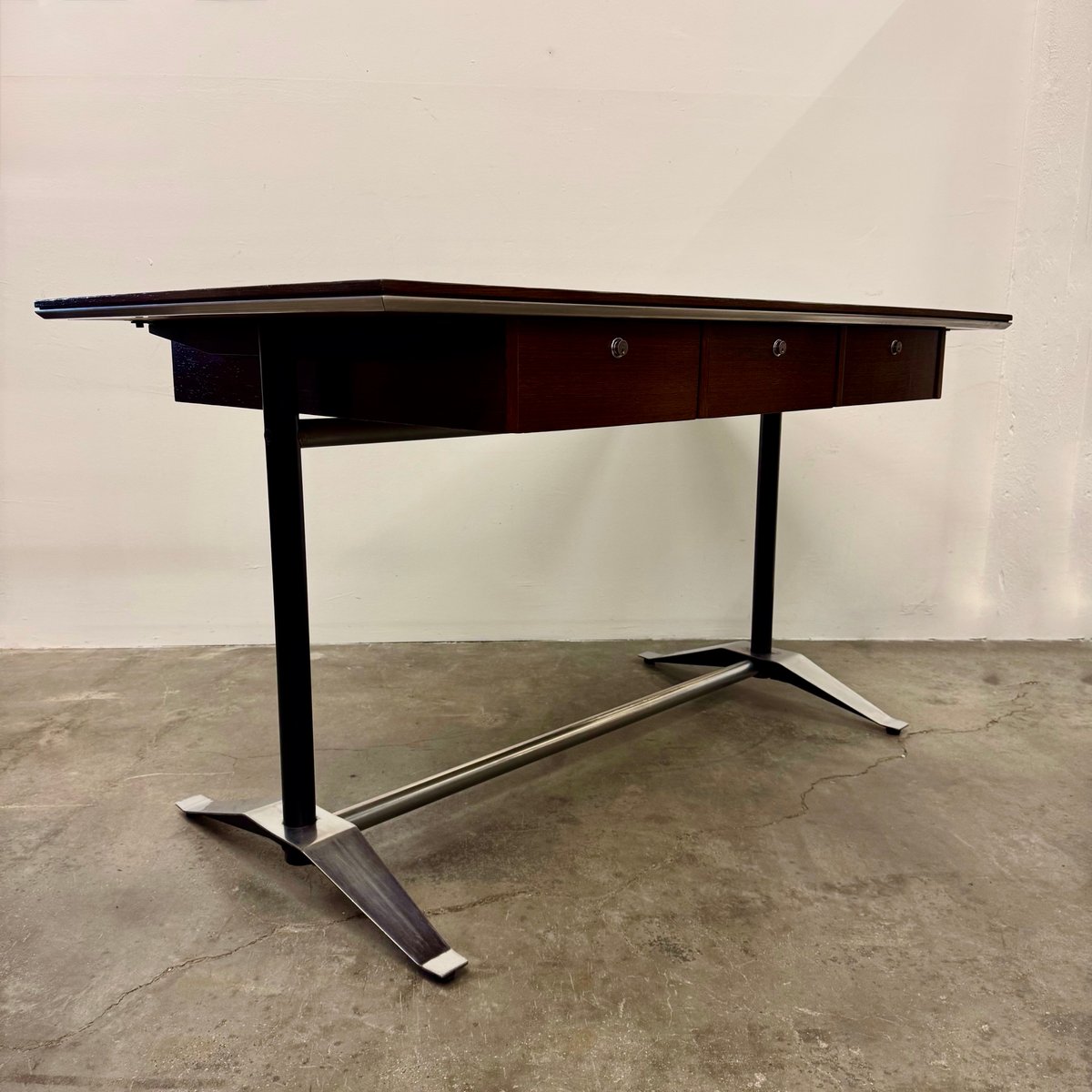 Italian furniture manufacturing company Arflex was originally founded in Milan 1947 by a team of engineers—Carlo Barassi, Renato Teani, Pio Reggiani, and Aldo Bai—from Italian tire company Pirelli. While exploring new technologies in rubber production, they developed a new polyurethane foam and elastic tape that held great potential for modernist furniture design. Italian architect-designer Marco Zanuso (1916-2001) was brought in to create the first collections, guided by the principle that the new materials would inform the aesthetic result.