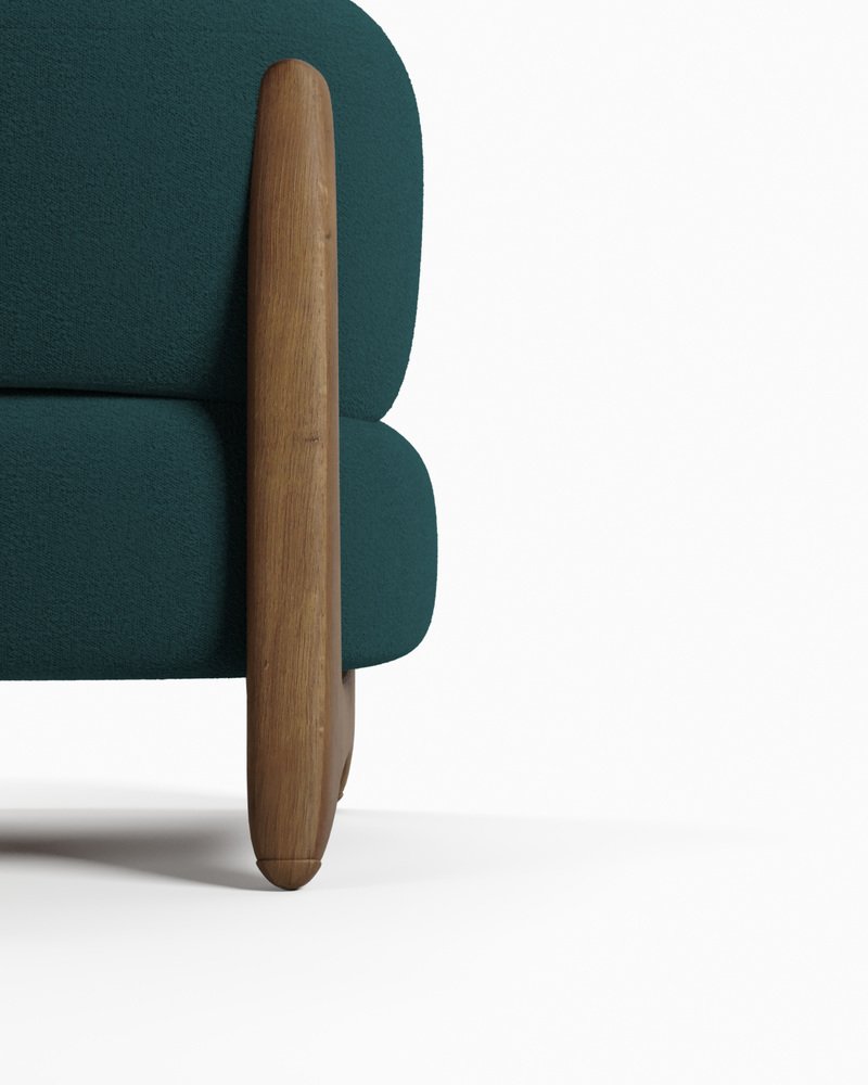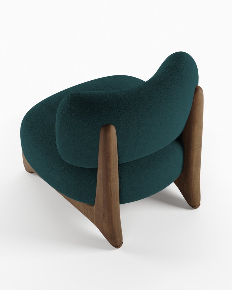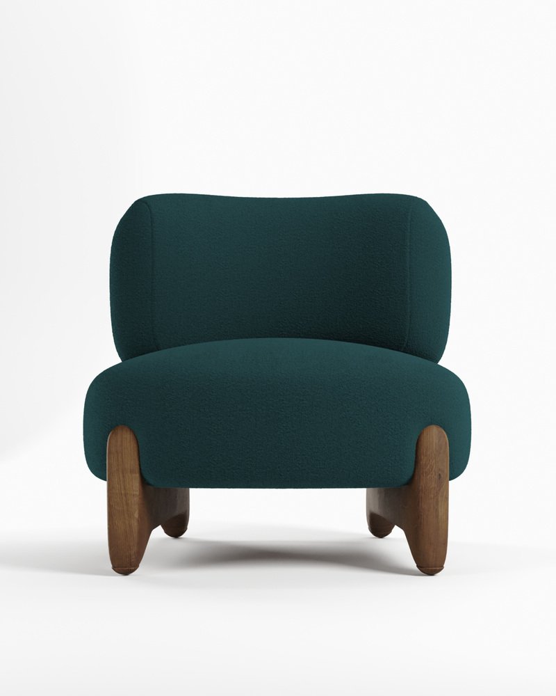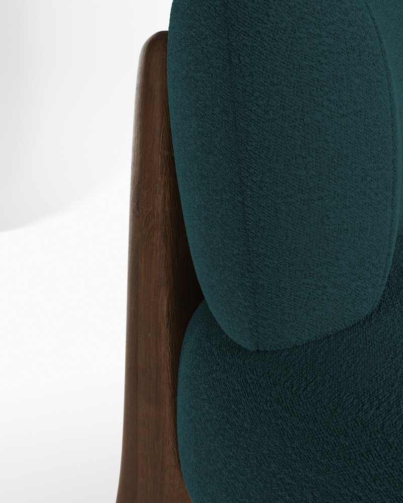 Modern Tobo Armchair in Fabric Boucle Night Blue and Smoked Oak by Collector Studio