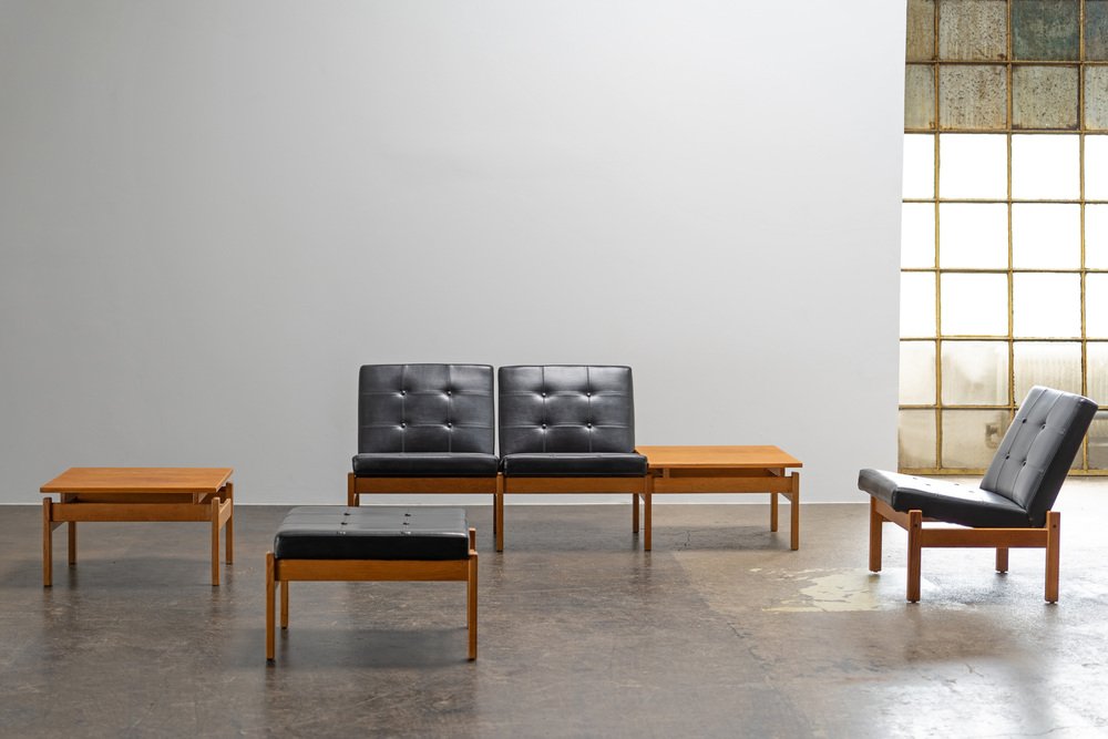Other well-known designs in Ekström’s portfolio include the Ruster seating collection for Pastoe (1950s)—which features low-back and high-back models sofas and chairs made from solid teak with signature triangle armrests—as well as the spindle-back Arka Chair for Stolfabrik (1955), the modular Fakta shelving system for Swedese (1958), and a series of teak tea trolleys (1959, 1962). Ekström’s designs can be found in many permanent collections, including the Victoria & Albert Museum in London, Nationalmuseum in Stockholm, and the Stedelijkmuseum in Amsterdam.