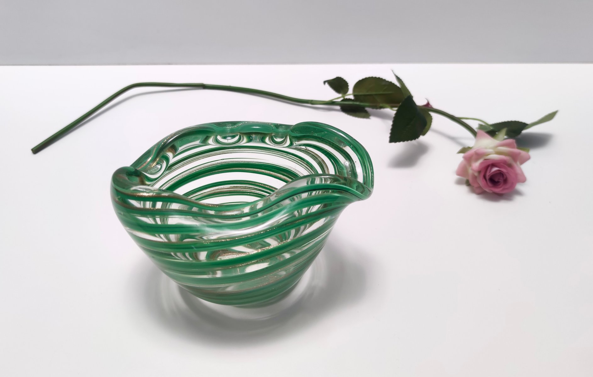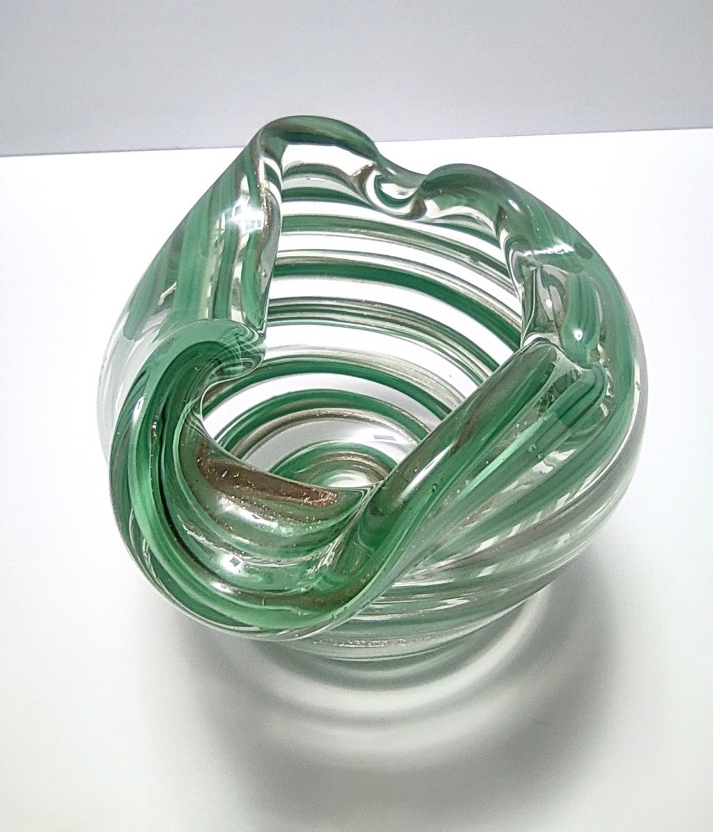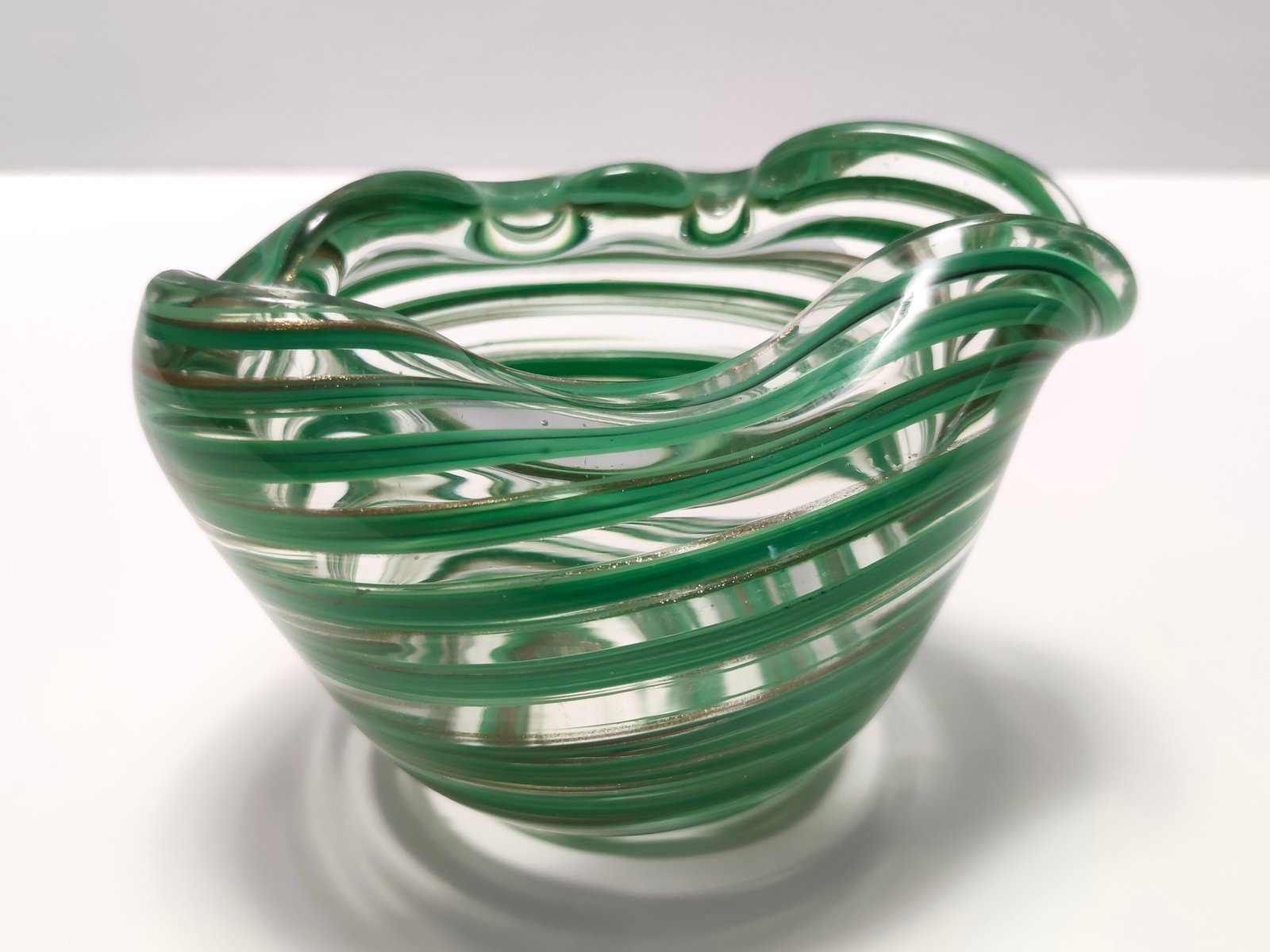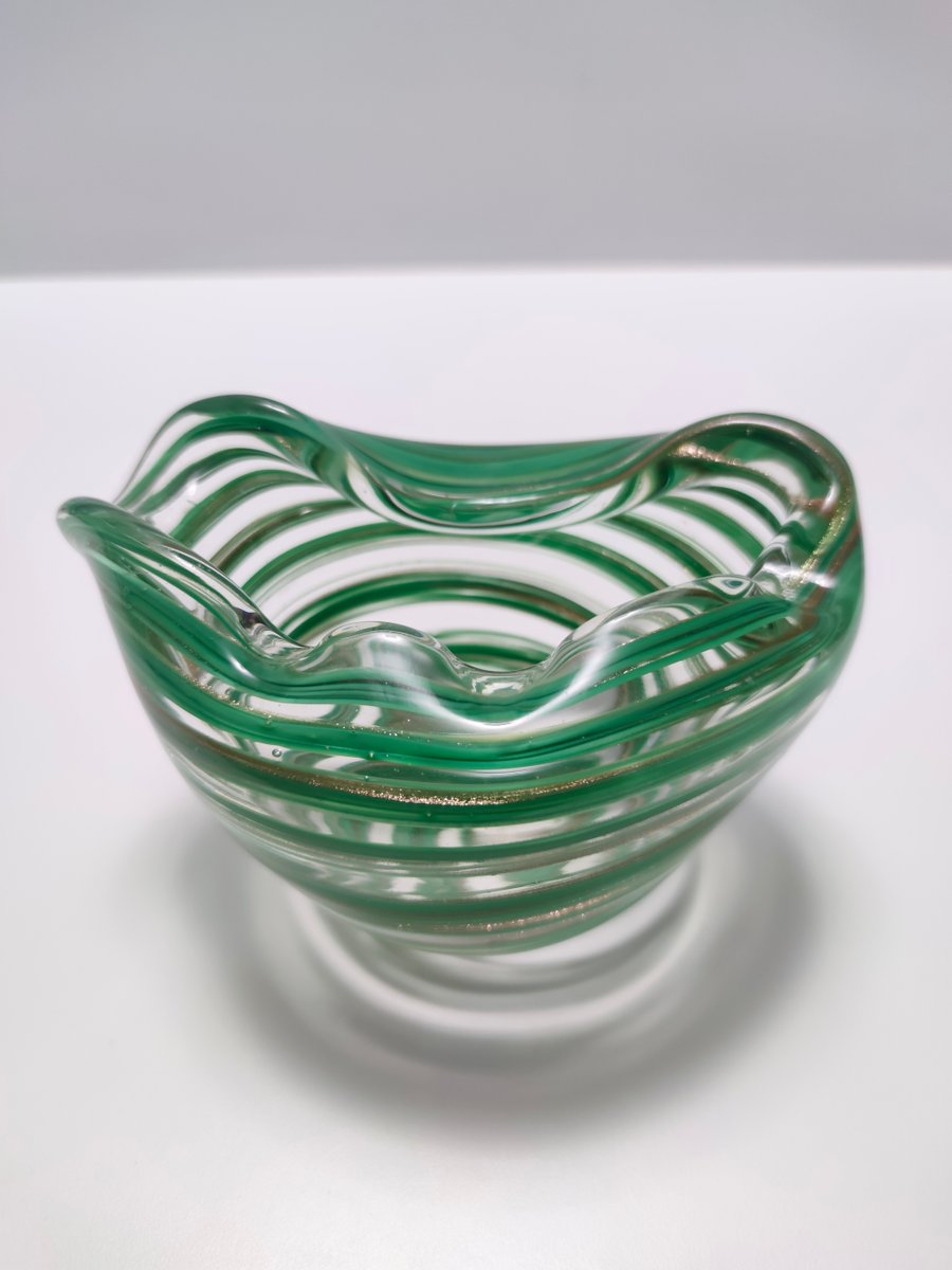 Murano Glass Ashtray with Green Canes and Aventurine Glass attributed to Alfredo Barbini, Italy, 1950s