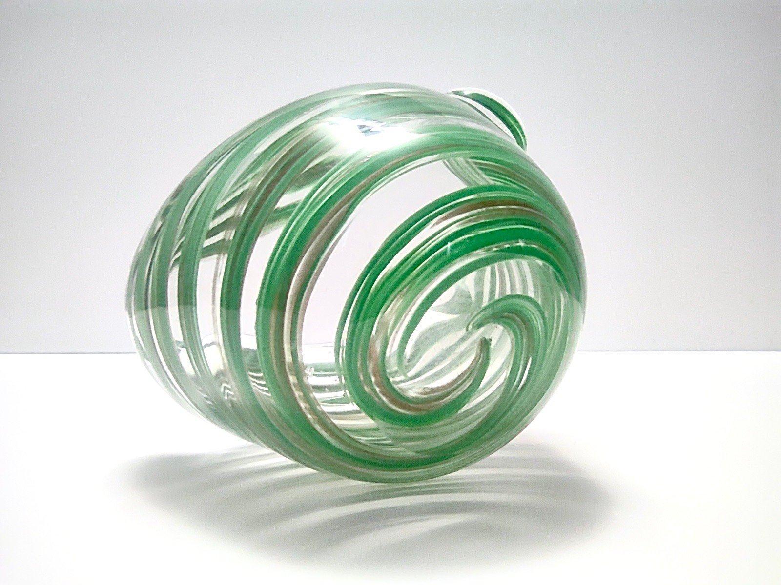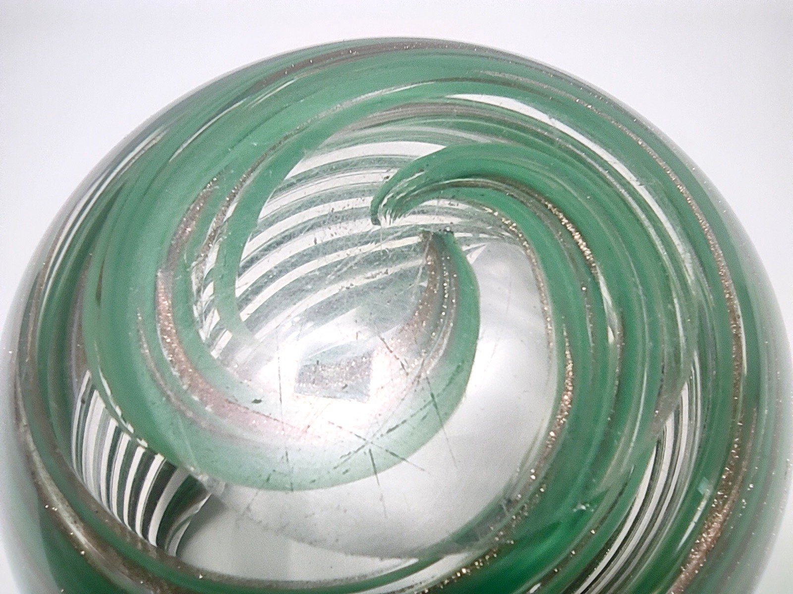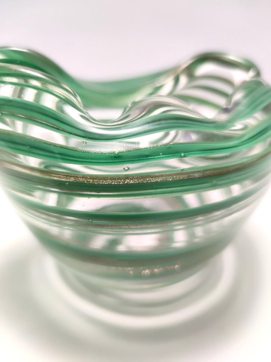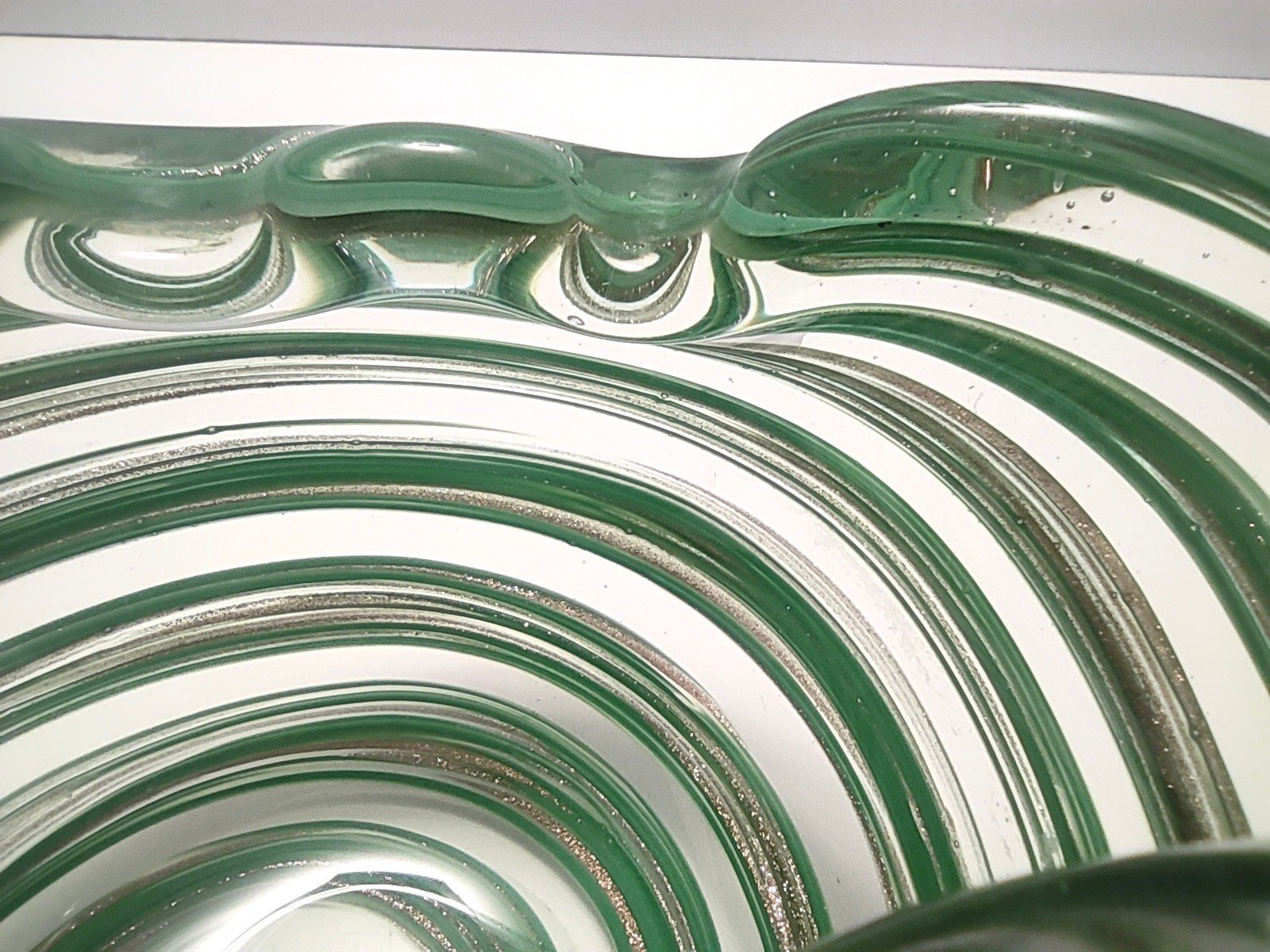 Murano Glass Ashtray with Green Canes and Aventurine Glass attributed to Alfredo Barbini, Italy, 1950s