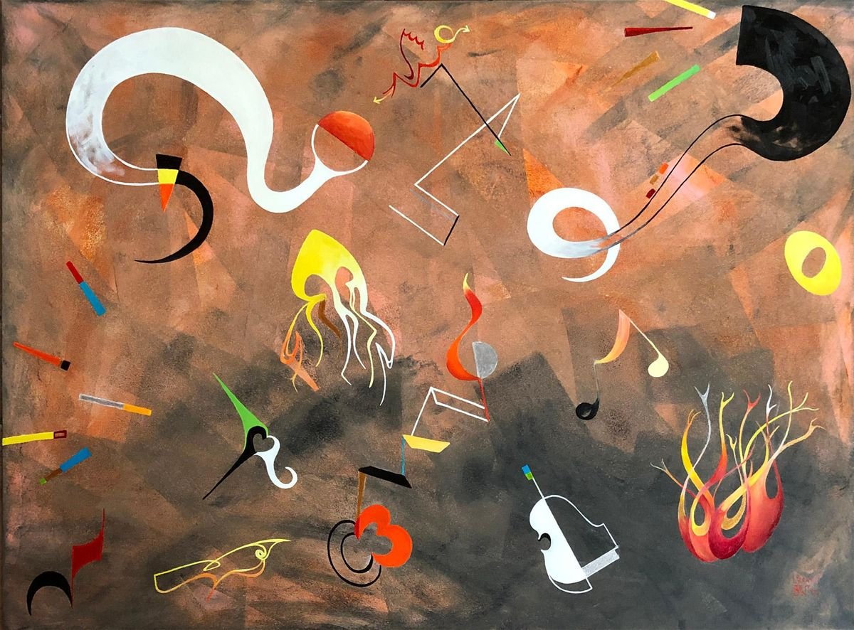 Music and Fire, Contemporary Abstract Mixed Media Painting, 2019