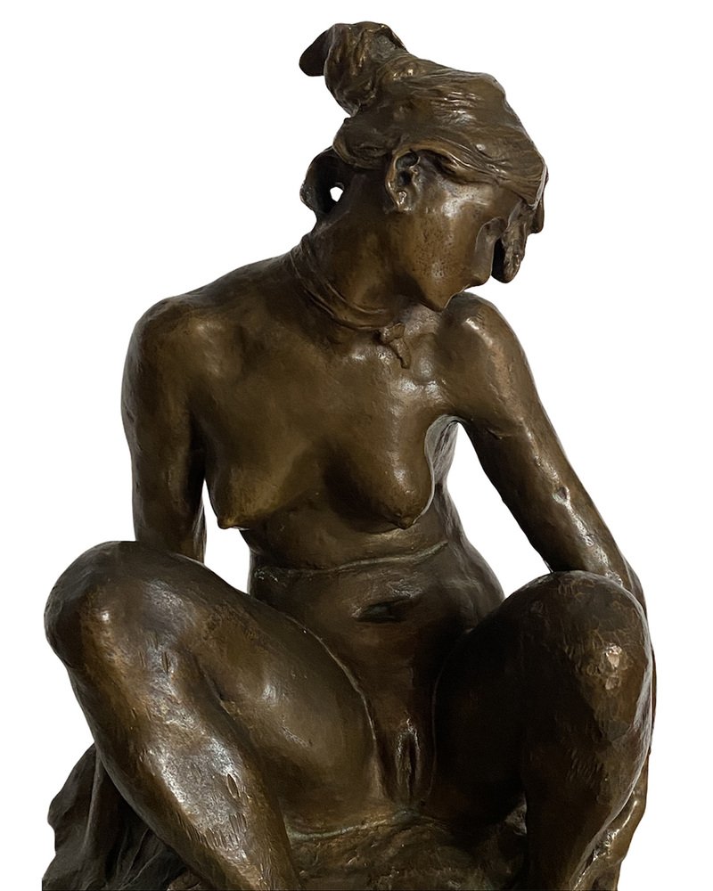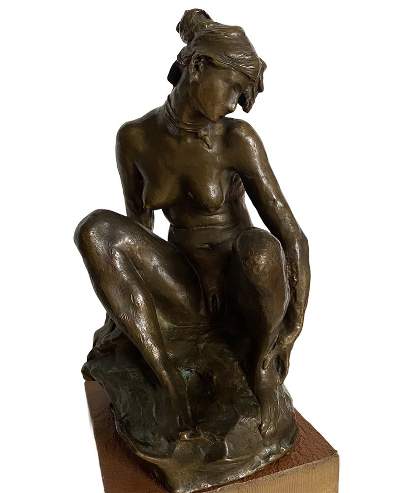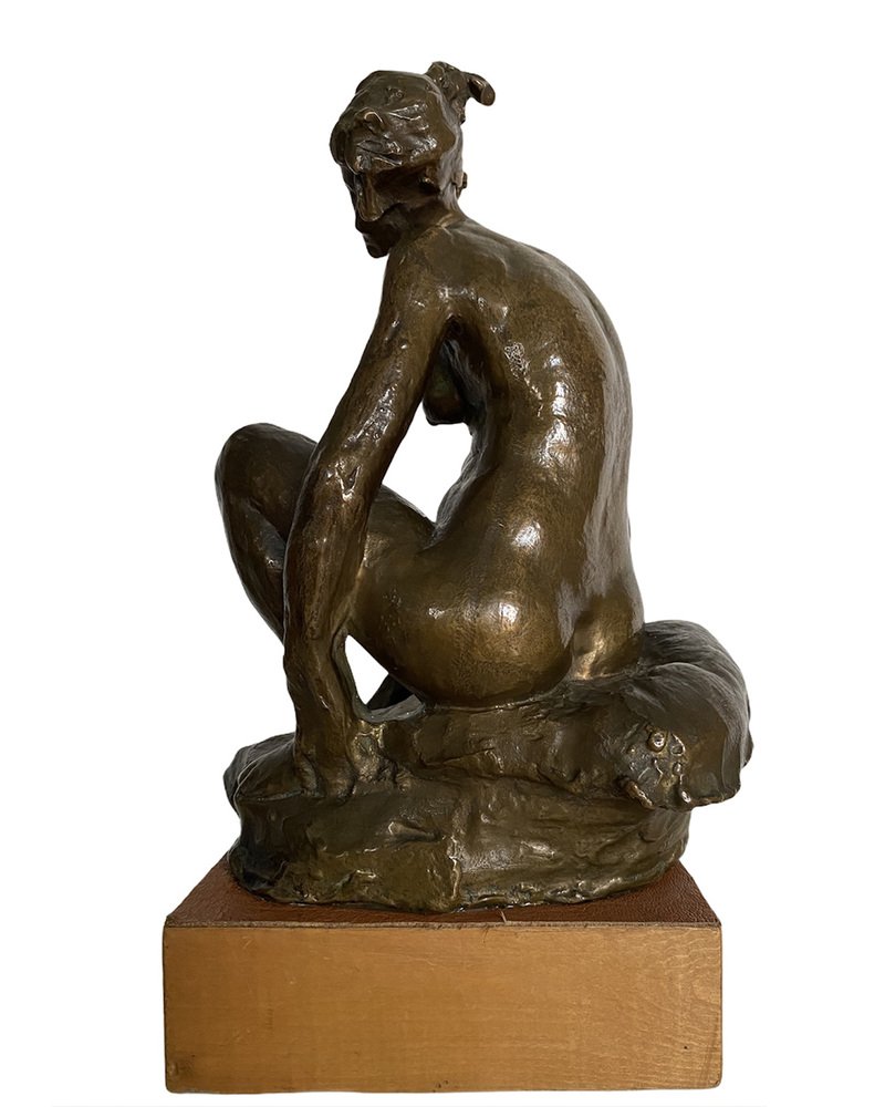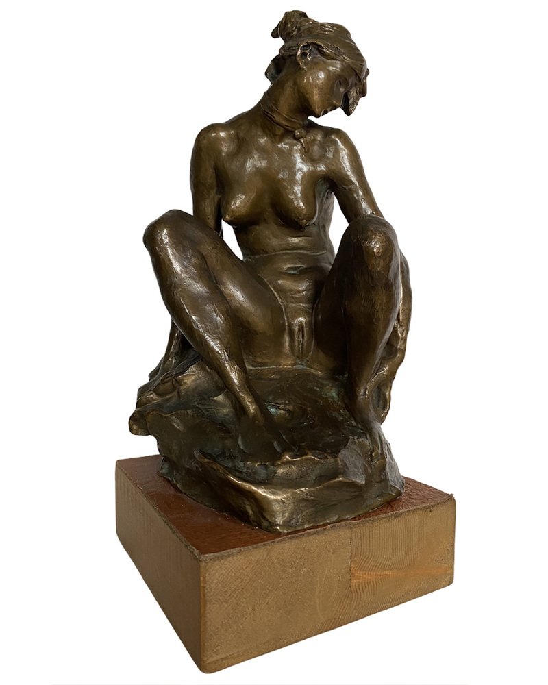 Nude Sculpture of Woman, 1950s, Bronze with Wooden Base