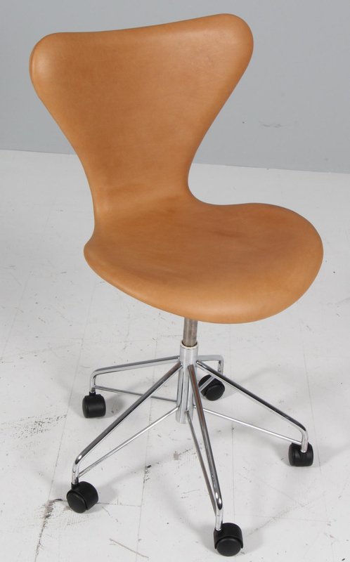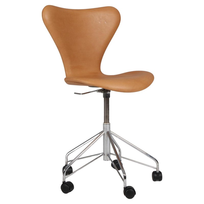 Office Chair in Cognac Aniline Leather by Arne Jacobsen for Fritz Hansen