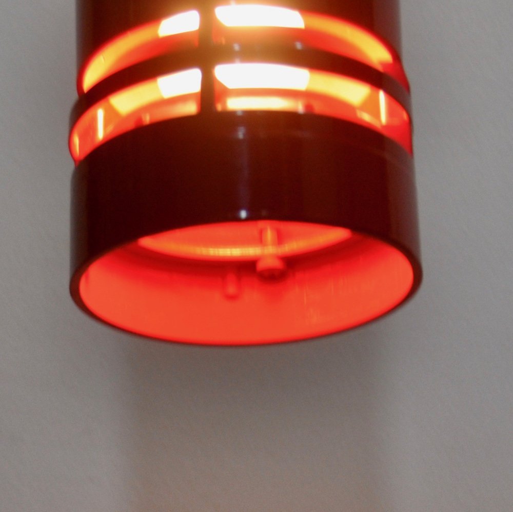 Nordisk Solar used its expertise in using plastic for the production of radio sets, to create many colorful plastic lighting fixtures in the late-1950s and 1960s. The company also commissioned notable Danish architects and designers including Sigvard Bernadotte, Acton Bjørn, Max Brüel, Vagn Dyring, Anton Fogh Holm, Jørgen Kastholm & Preben Fabricius, Eva and Nils Koppel, Sven Middelboe, and Jørn Utzon—who later designed the Sydney Opera House—to create lighting fixtures for Solar. The manufacturer’s most iconic productions include Sven Middleboe’s Verona Pendant Lamp (1960s); Jørn Utzon’s Tivoli Pendant (1947-48, renamed P254 and reintroduced in the 1960s) and Navy Pendant or Sovaernspendel (1956)—which was created for the Royal Danish Navy offices, and was later updated and re-launched by Louis Poulsen under the new name Doo Wop; K Kewo’s Minisol Light (1960s); Preben Fabricius & Jørgen Kastholm’s P376 (1964, renamed Kastholm Pendant in 1980); and Vagn Dyring’s Granada Light (1982).