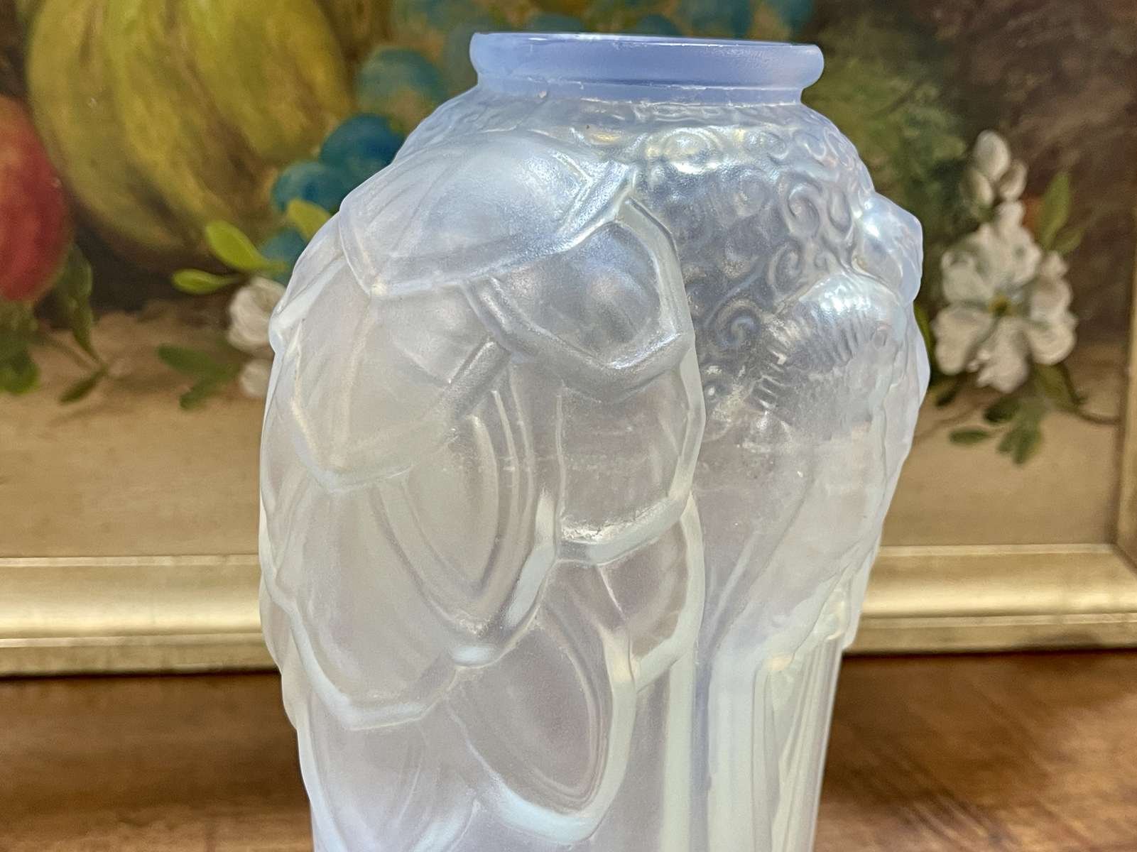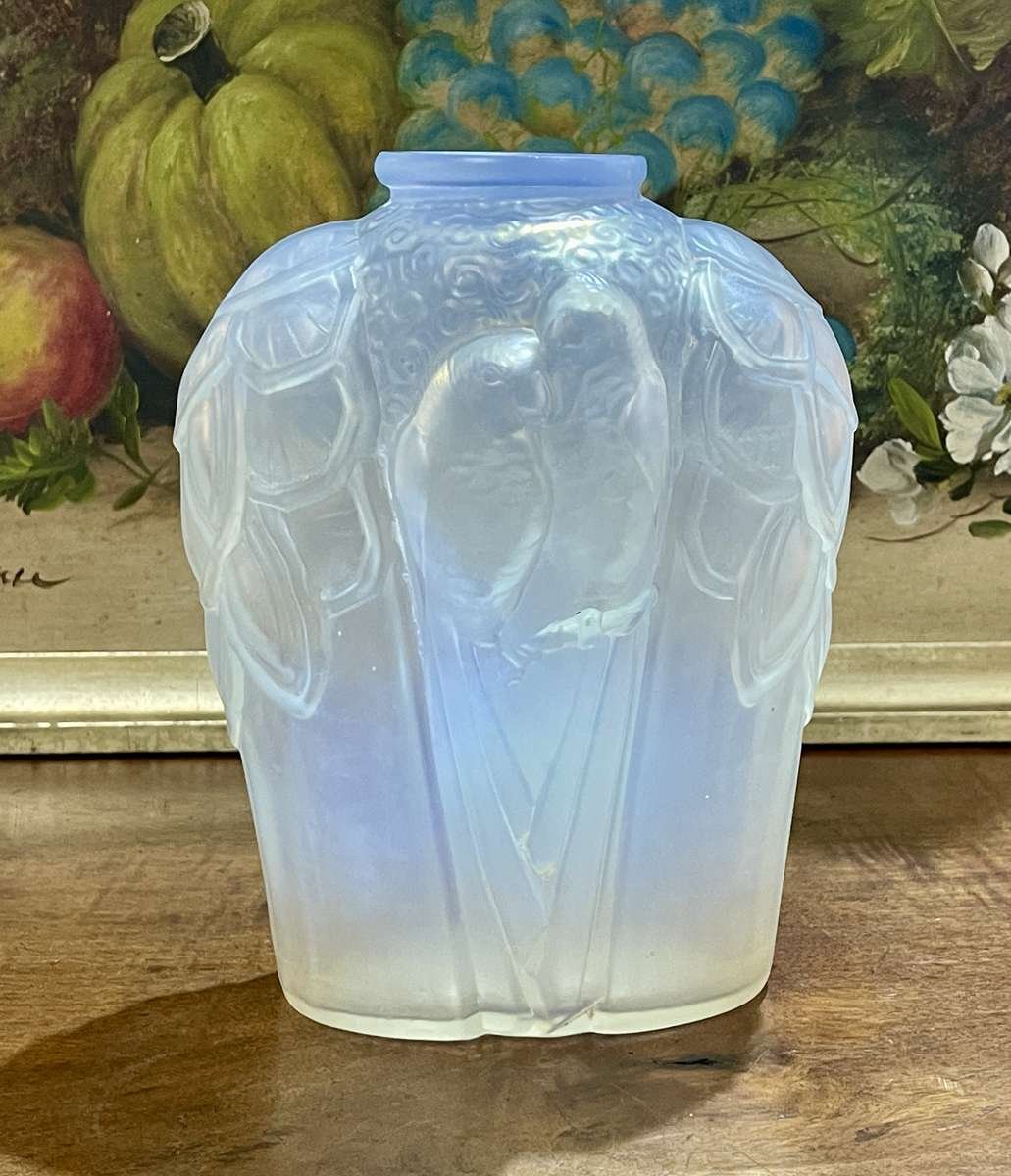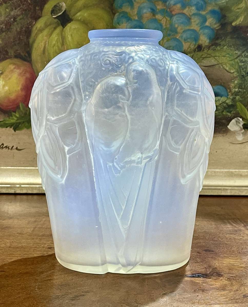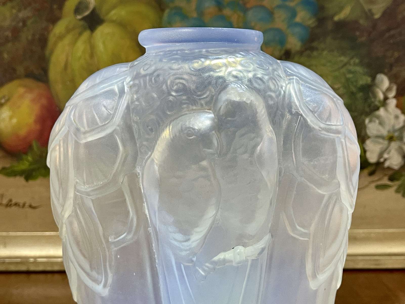 Pressed Glass Vase with Parakeets by Carrillo