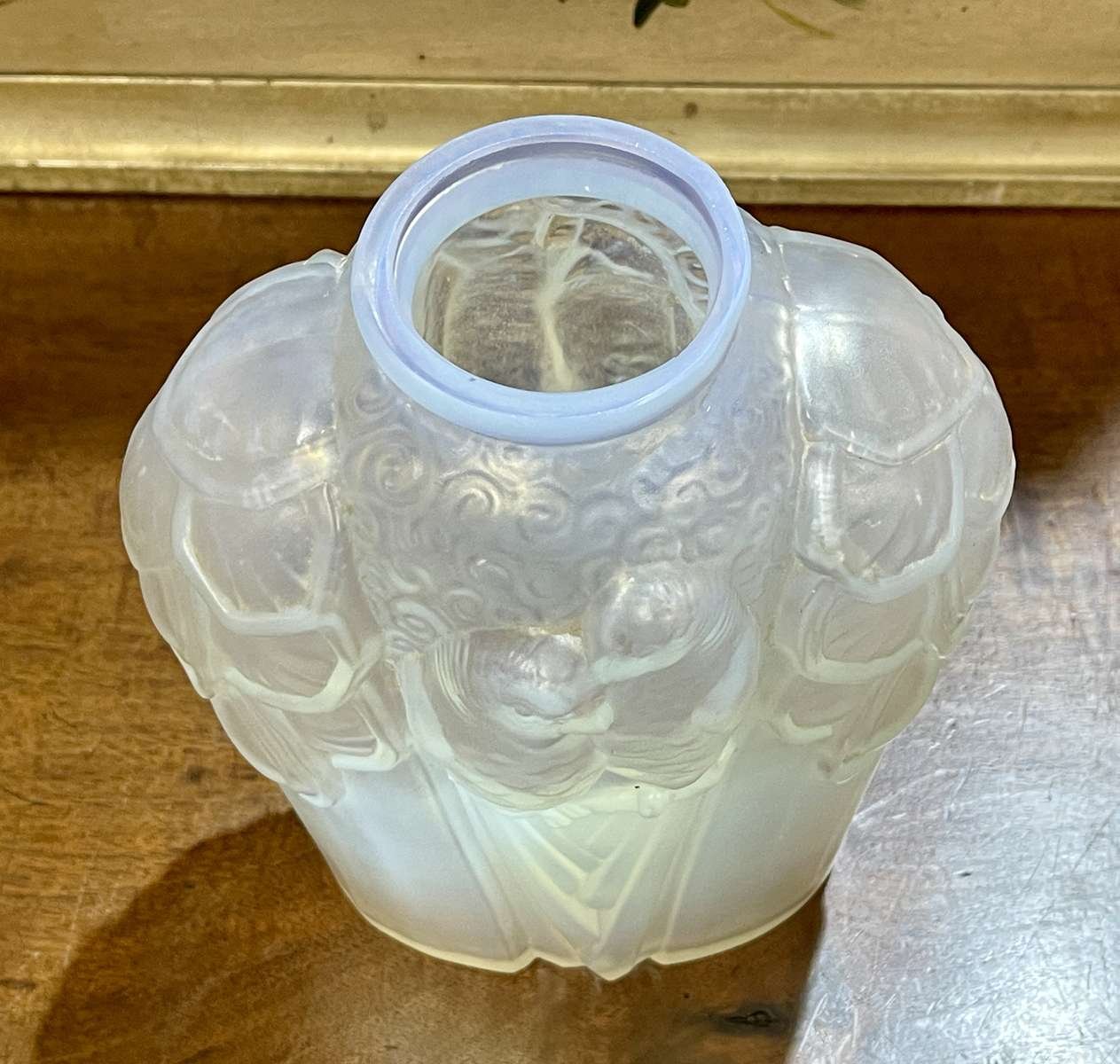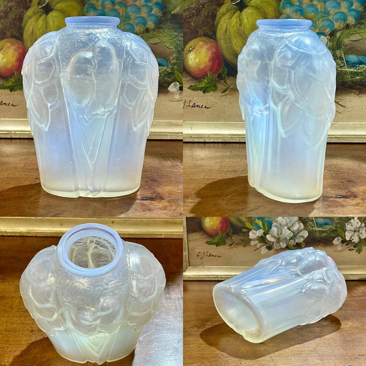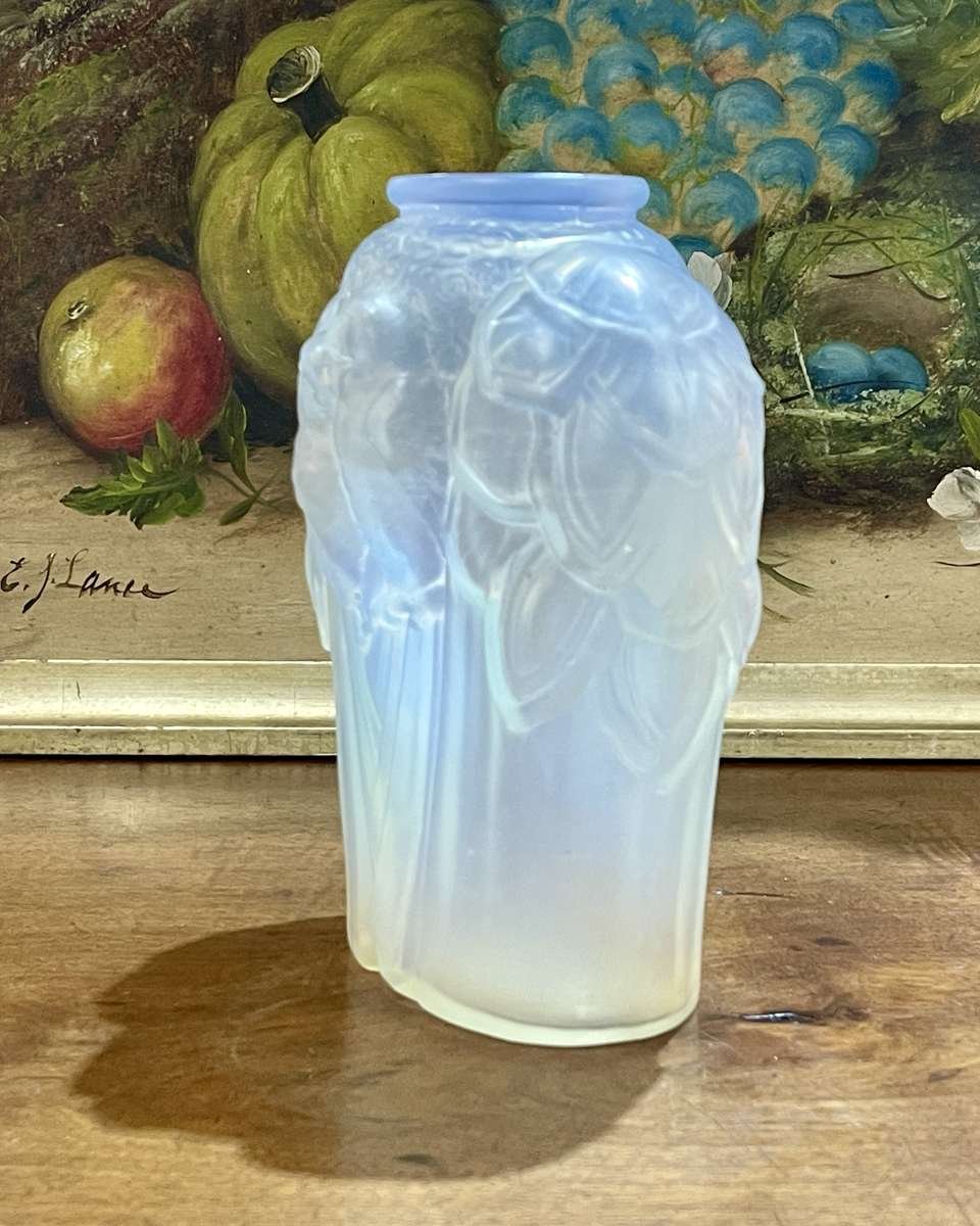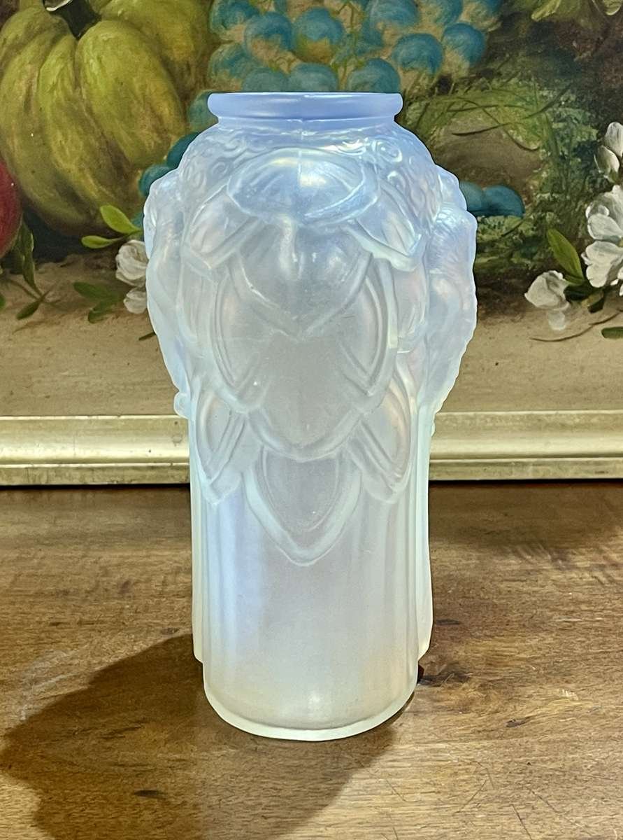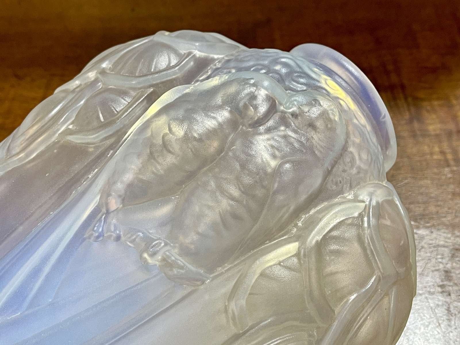Pressed Glass Vase with Parakeets by Carrillo