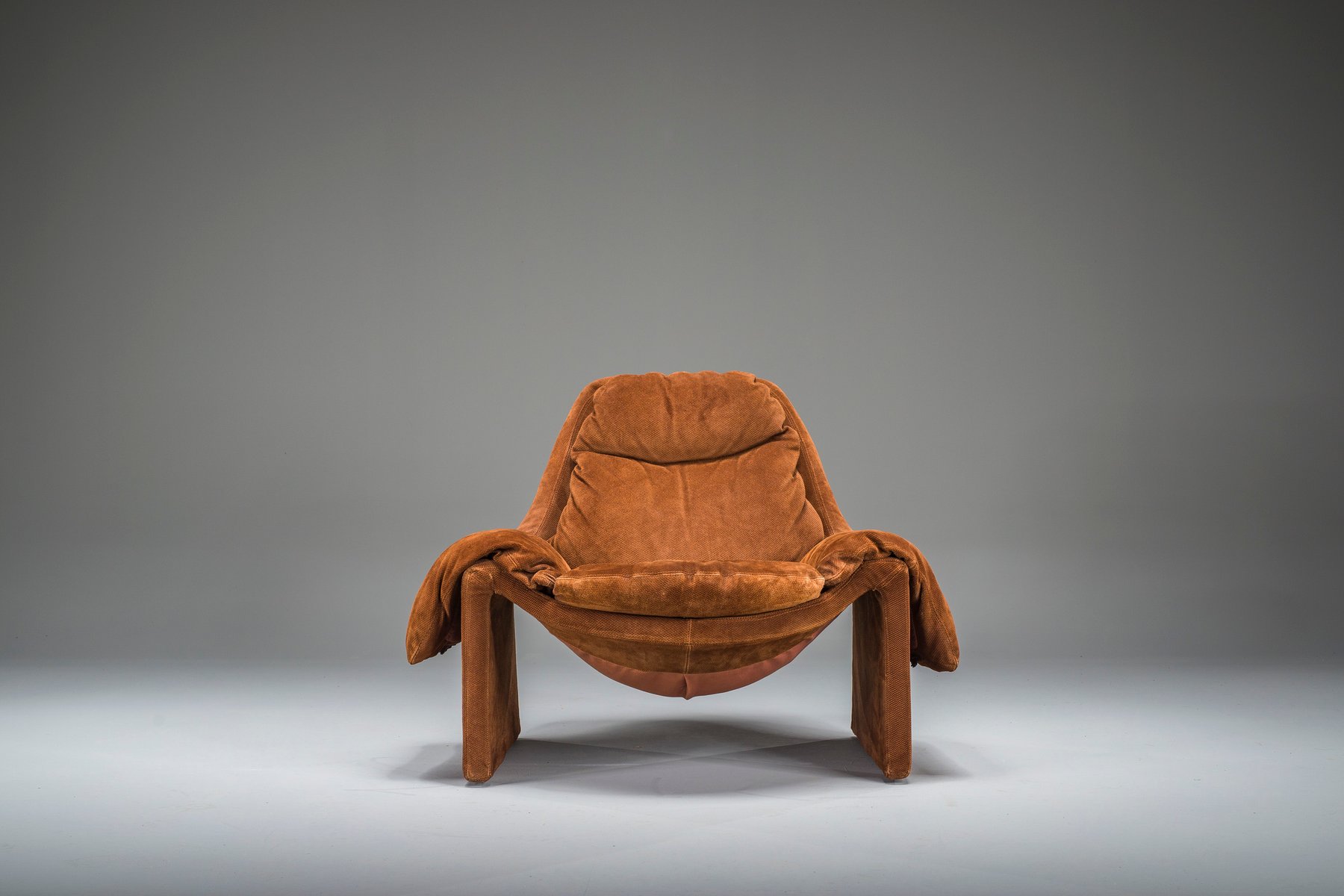 Proposals P60 Leather Lounge Chair by Vittorio Introini for Saporiti, Italy, 1960s