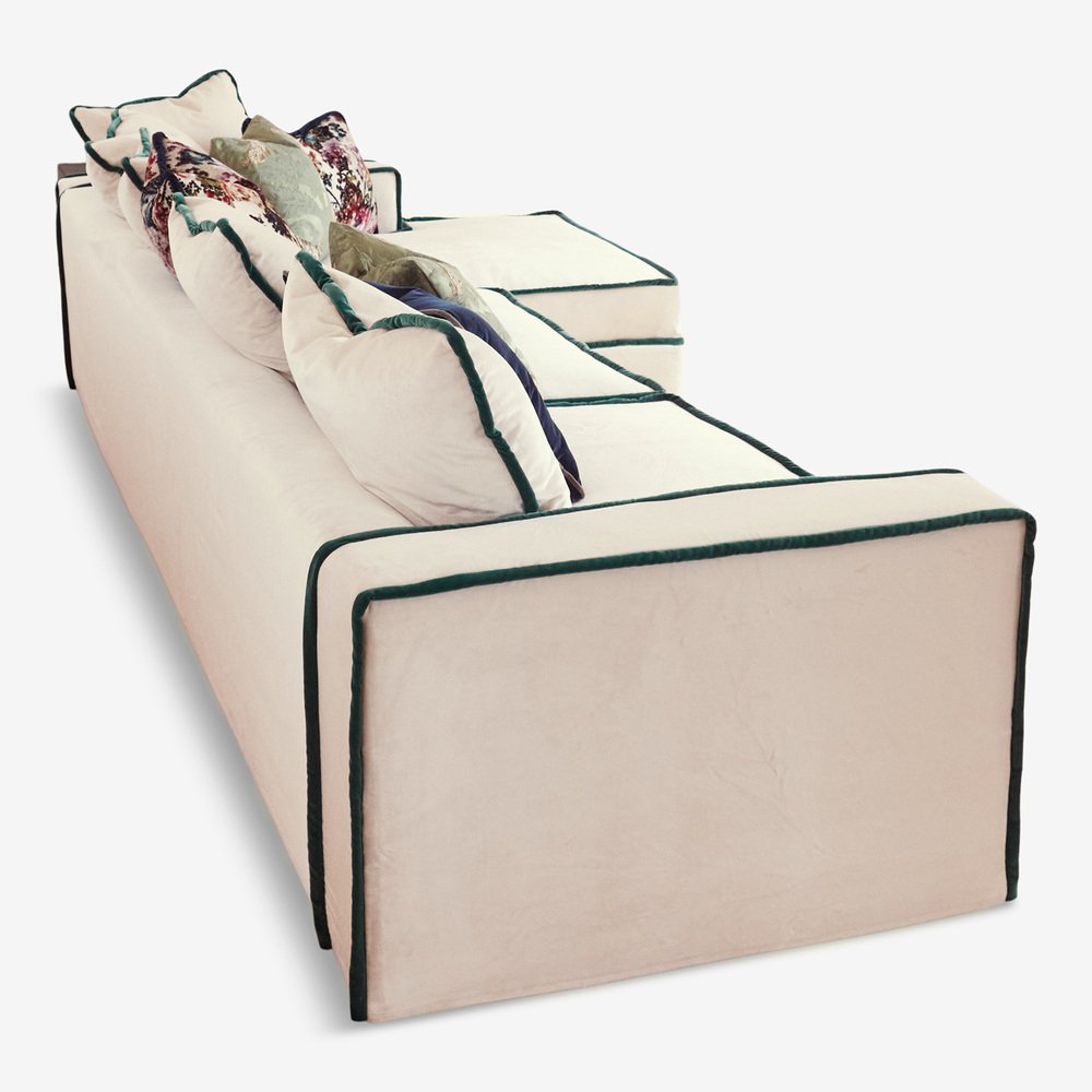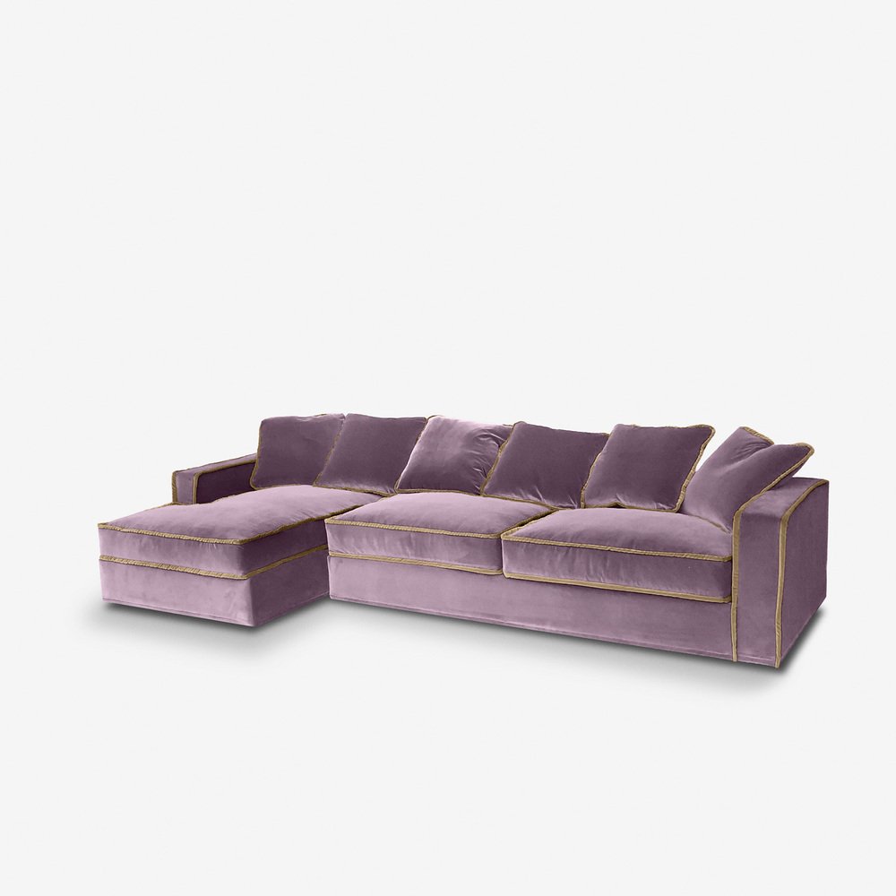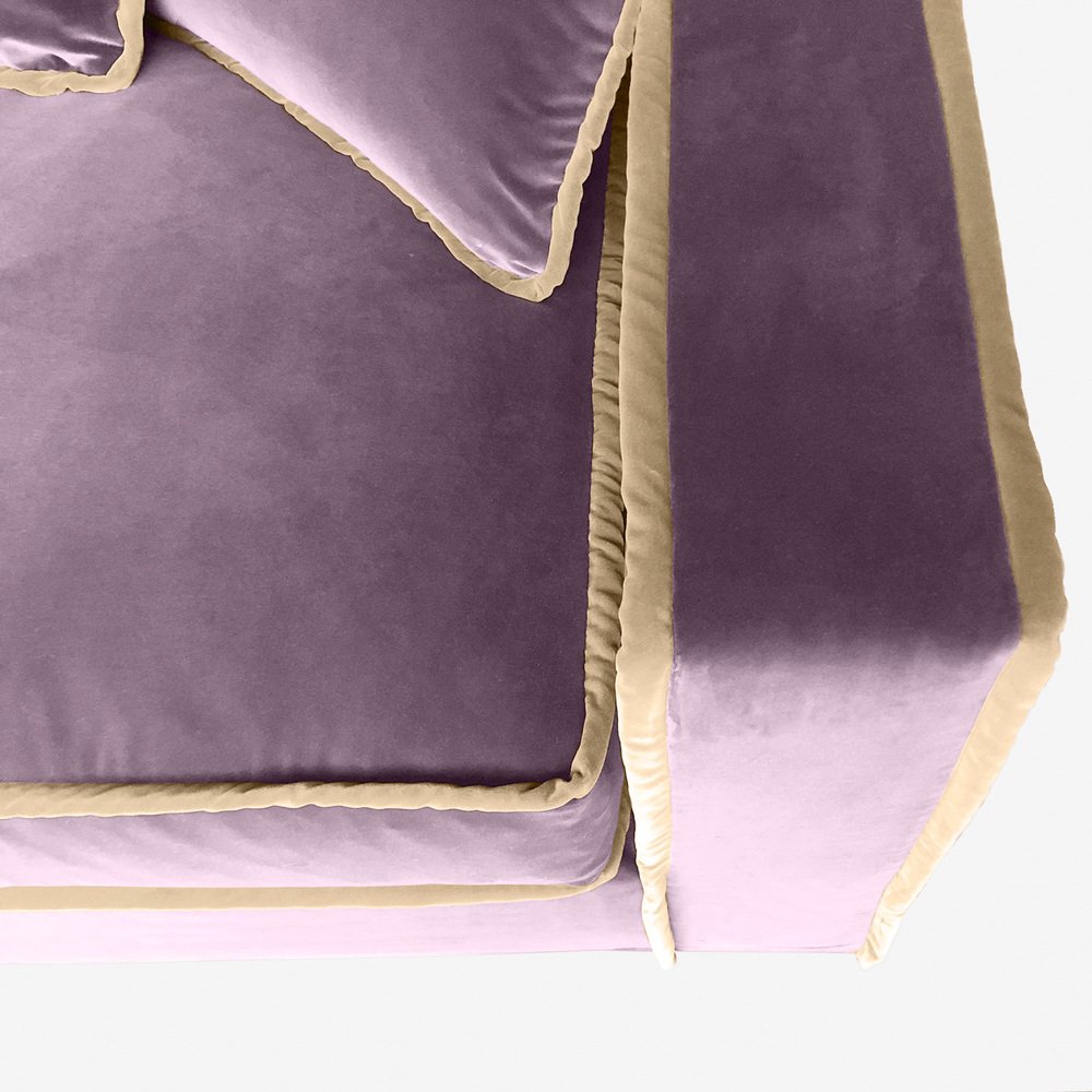 Rafaella Chaise Sofa in Pastel Pink Velvet with Camel Beige Trim from Biosofa