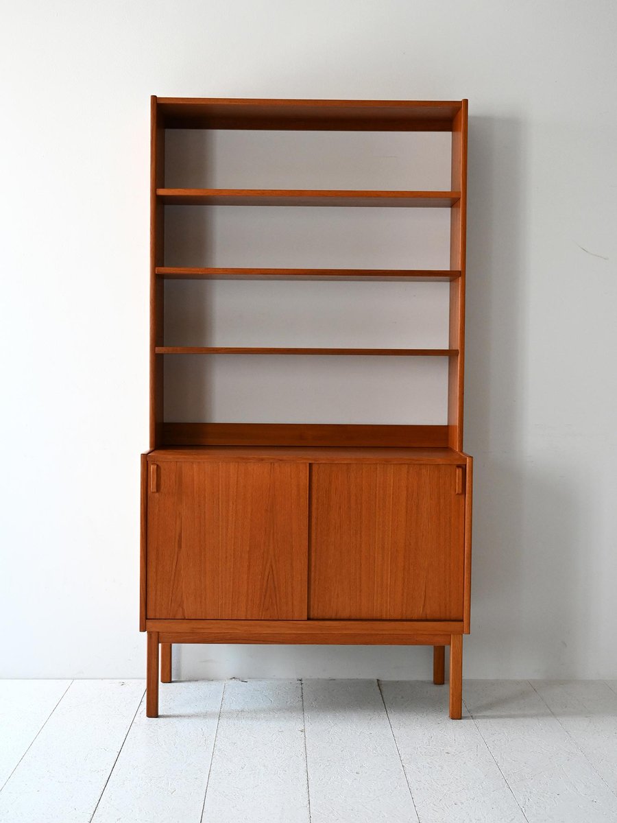 Scandinavian Teak Bookcase with Hinged Doors, 1950s