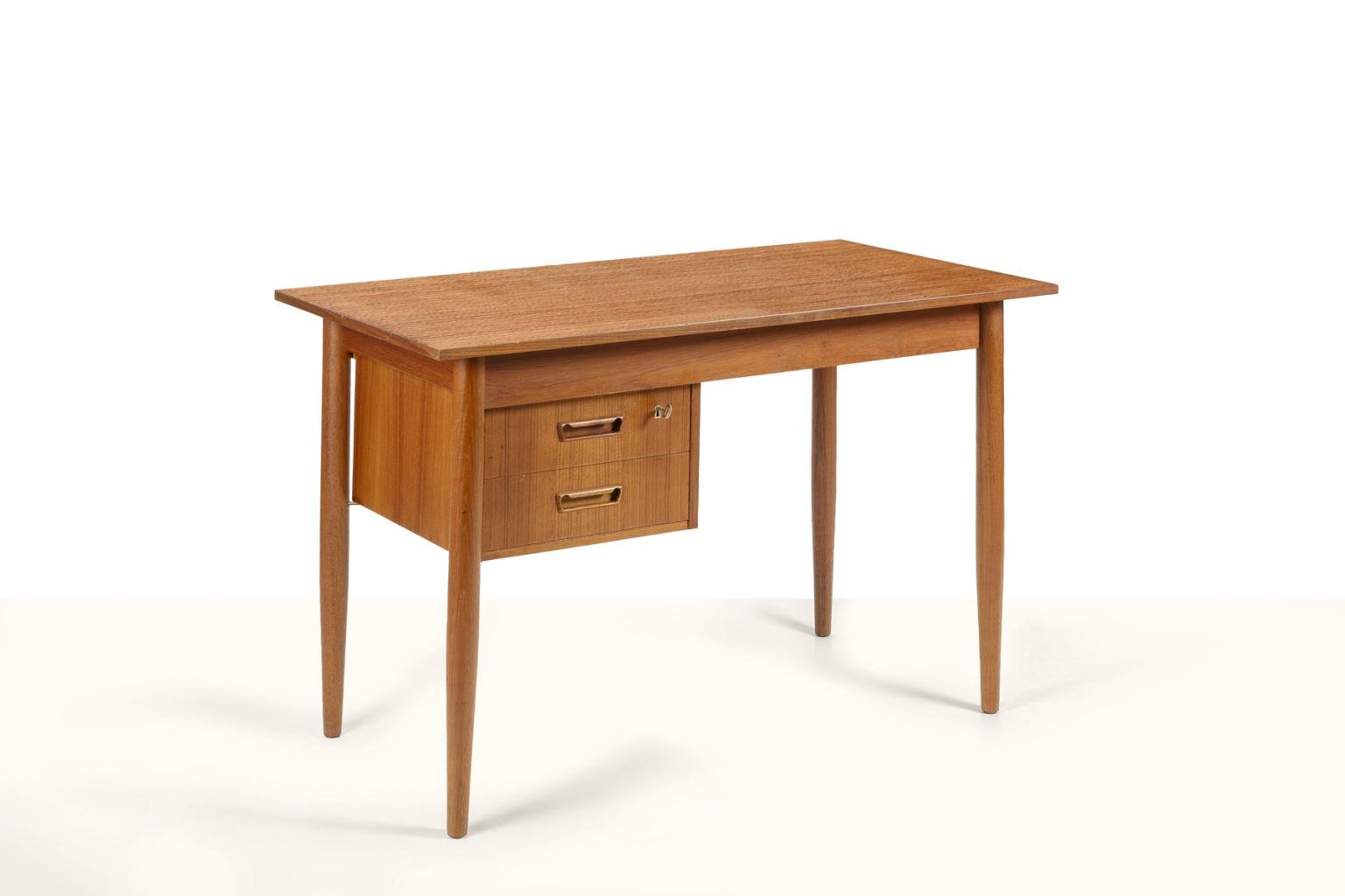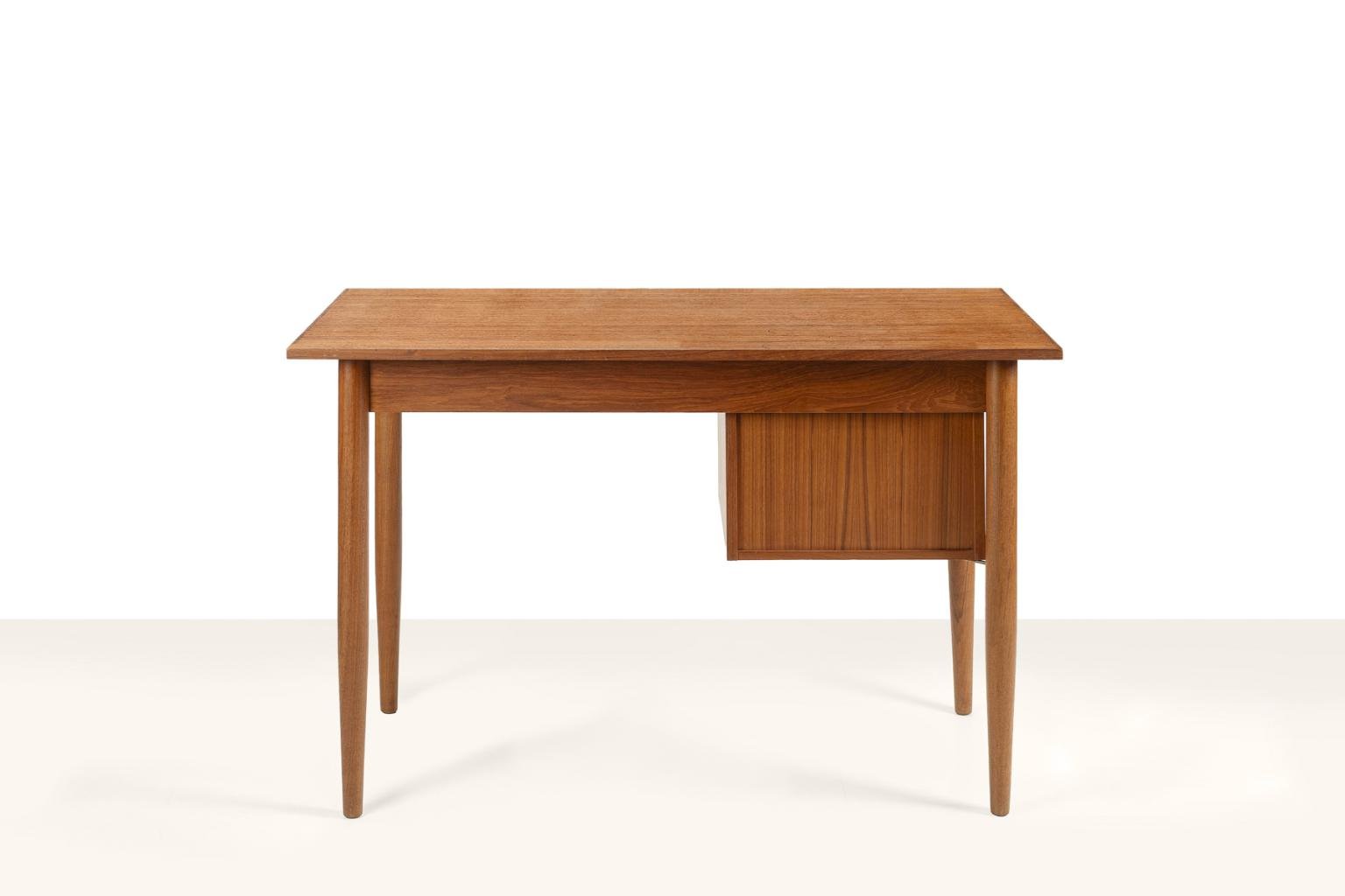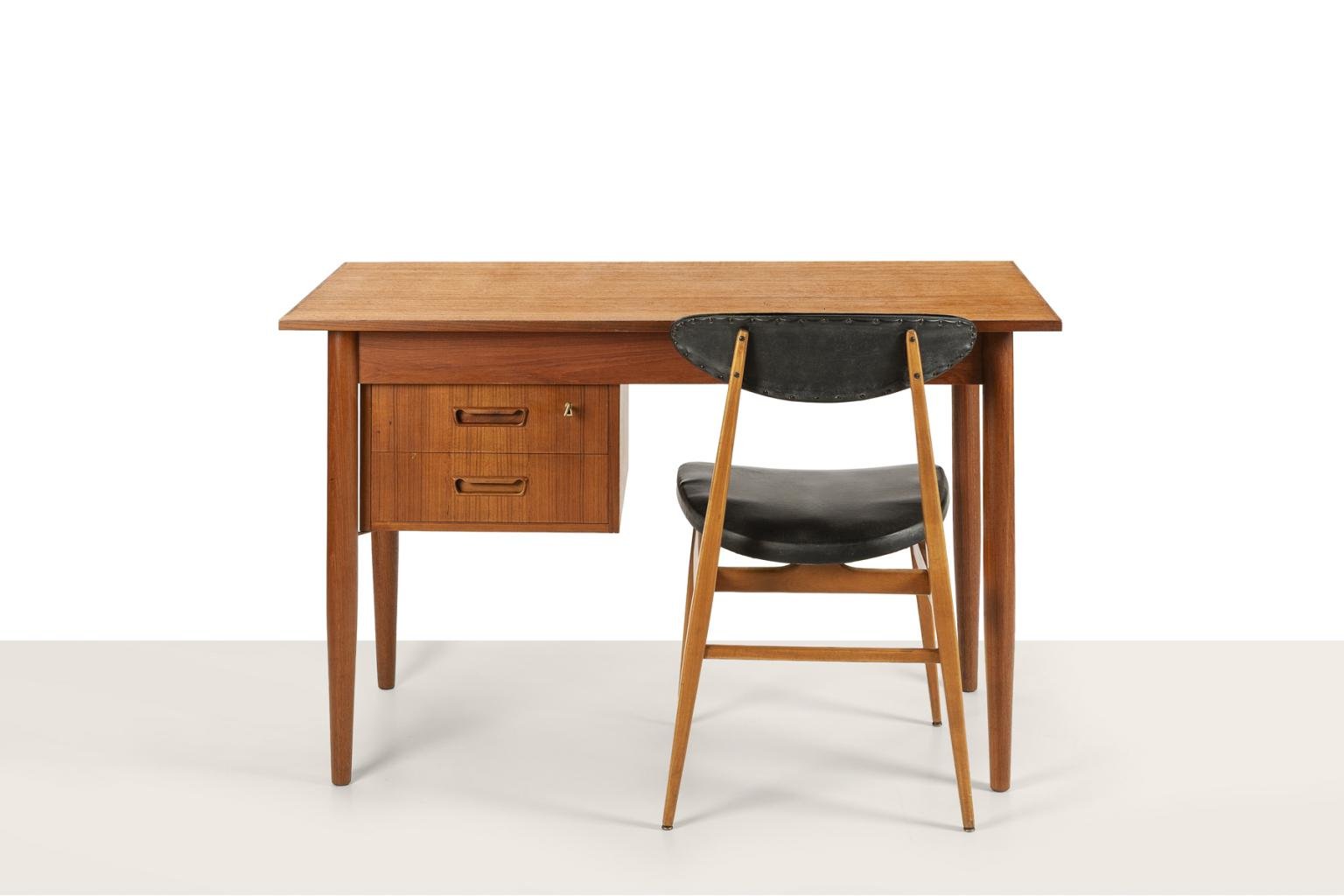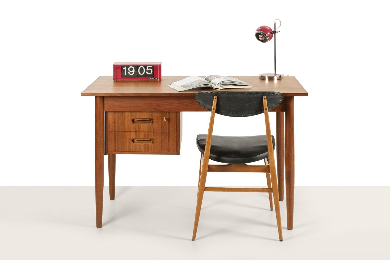 Scandinavian Desk with Sliding Mobile Drawer Block and Small Armchair, Denmark, 1970s, Set of 2