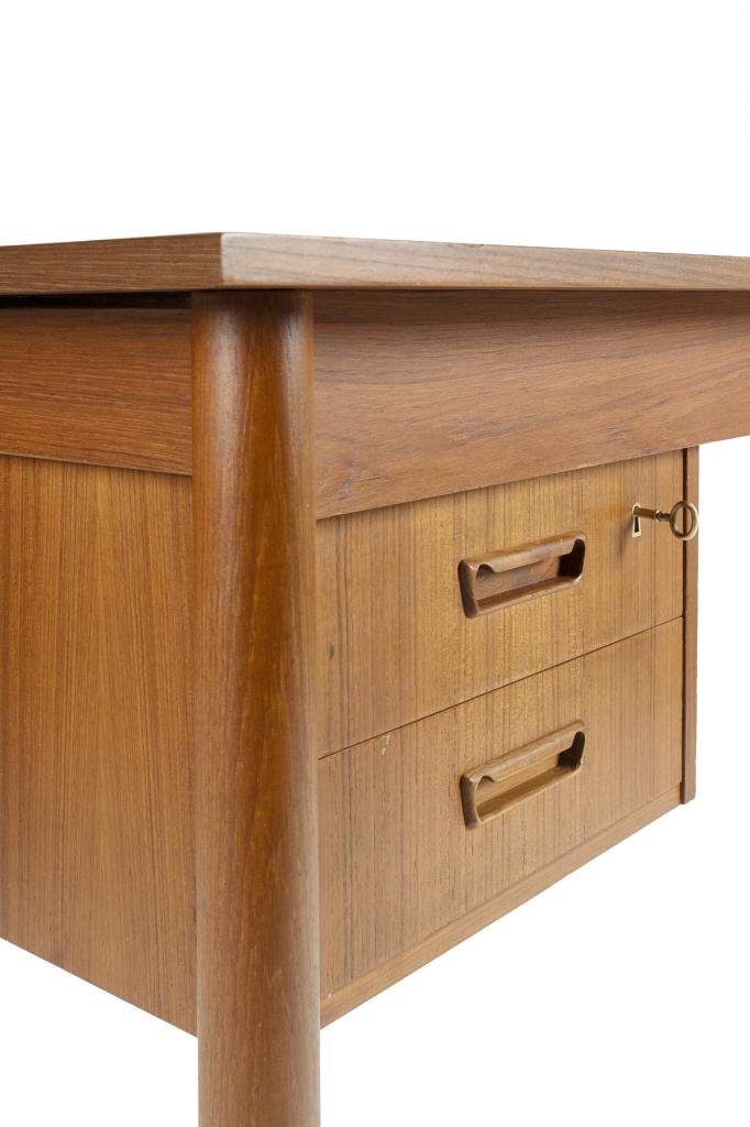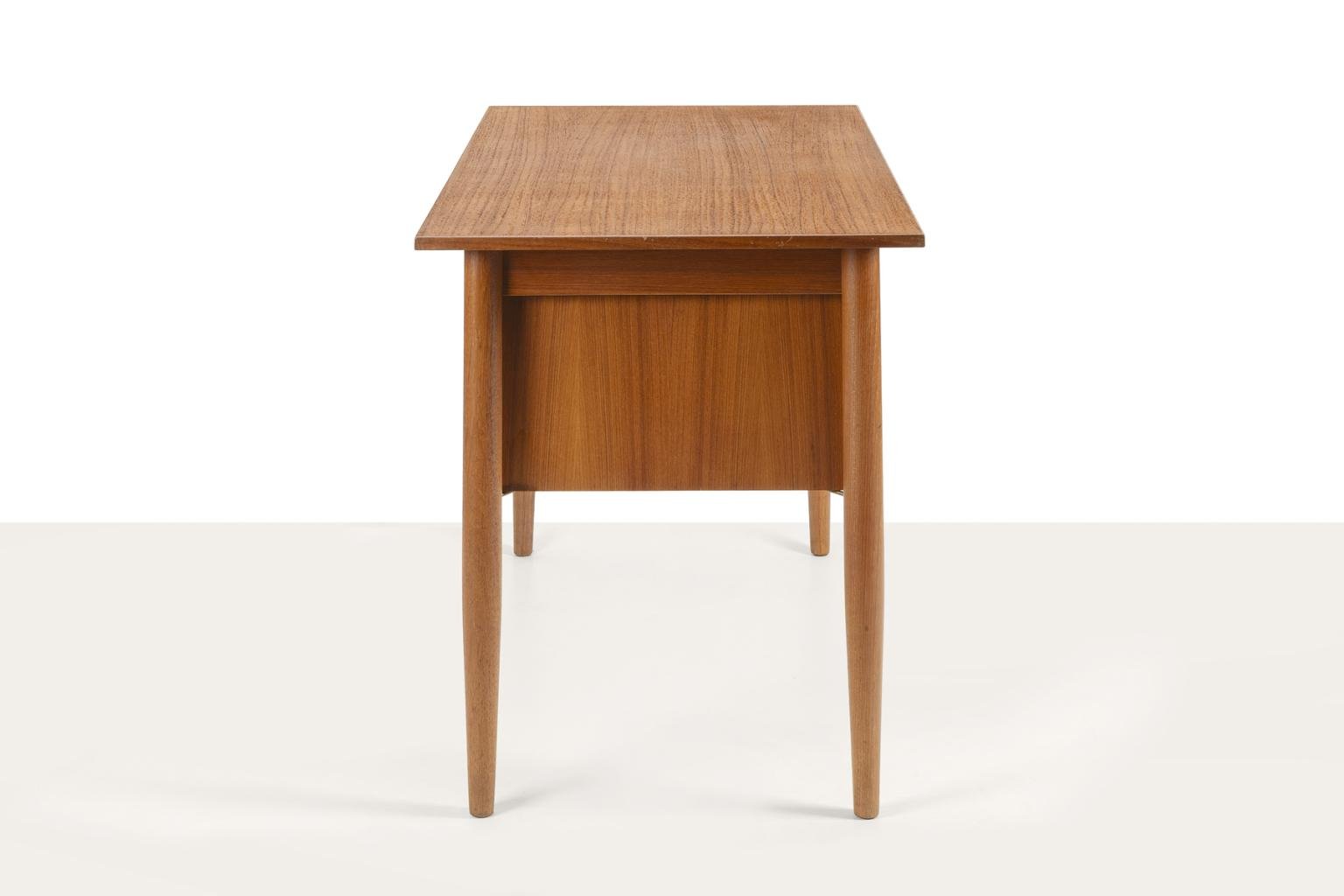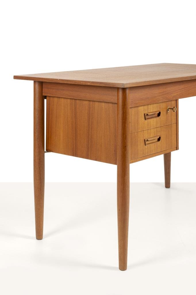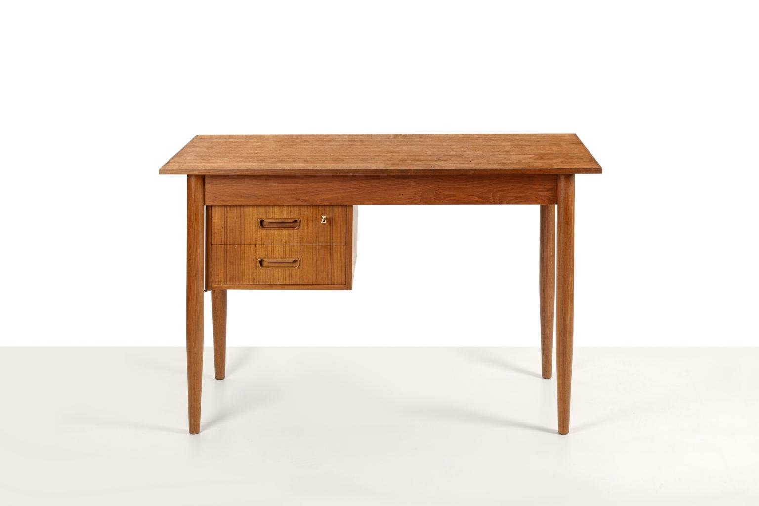 Scandinavian Desk with Sliding Mobile Drawer Block and Small Armchair, Denmark, 1970s, Set of 2