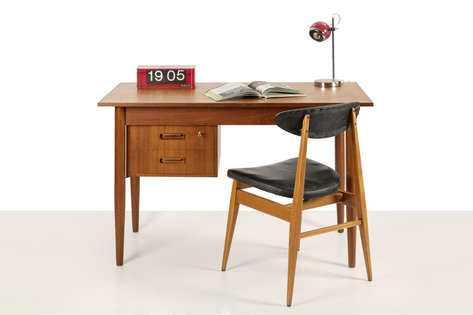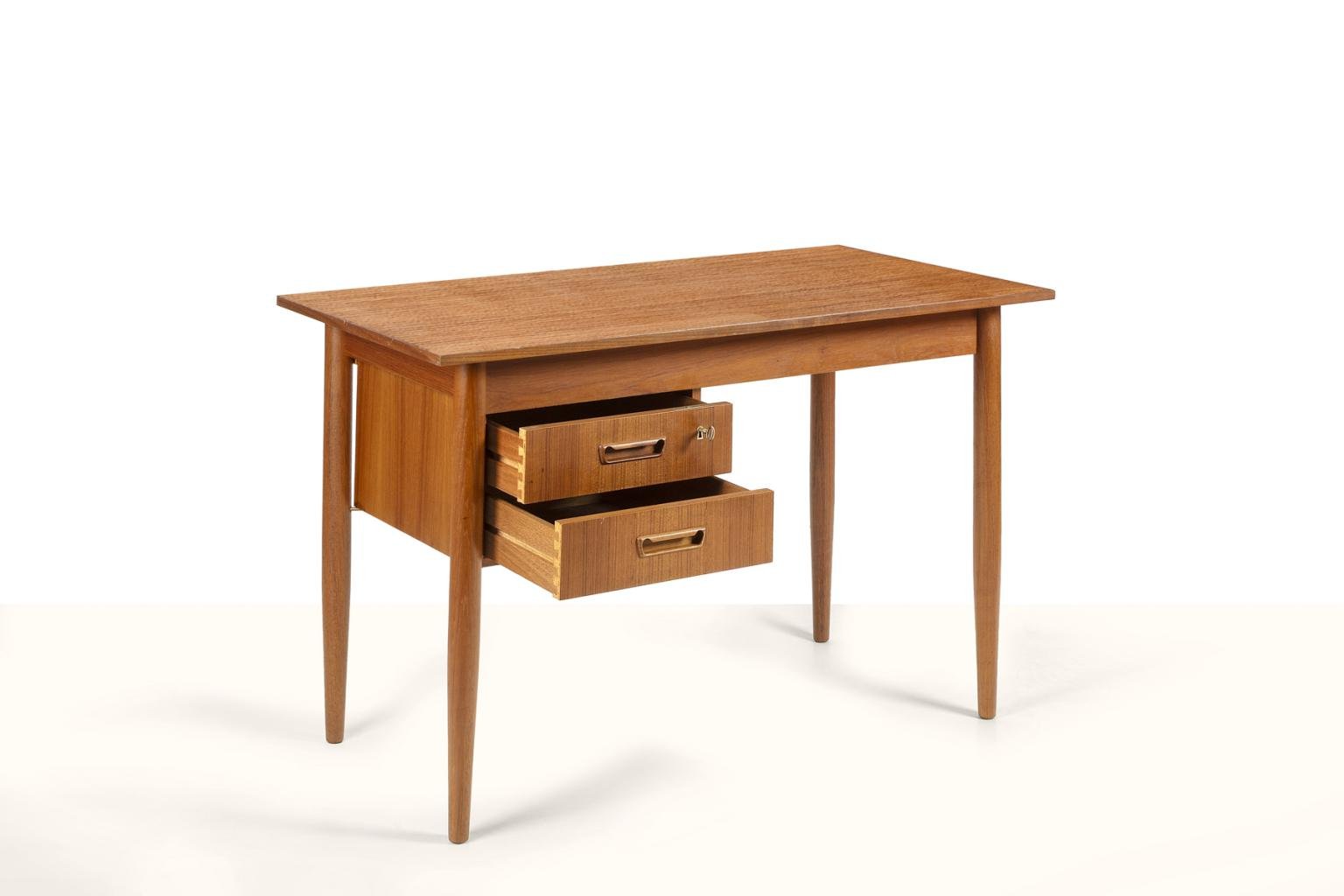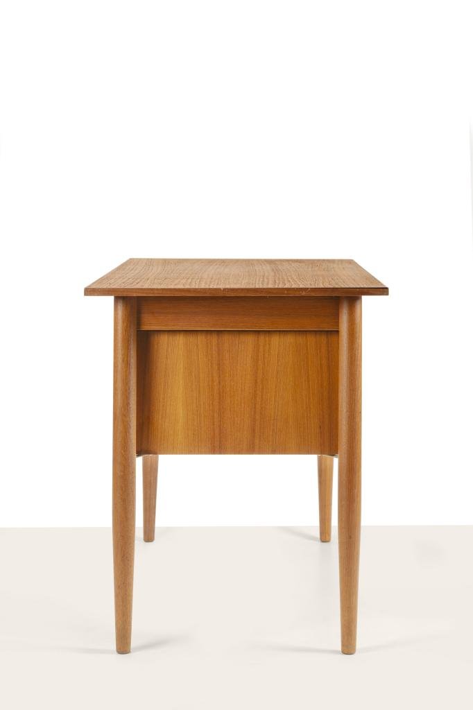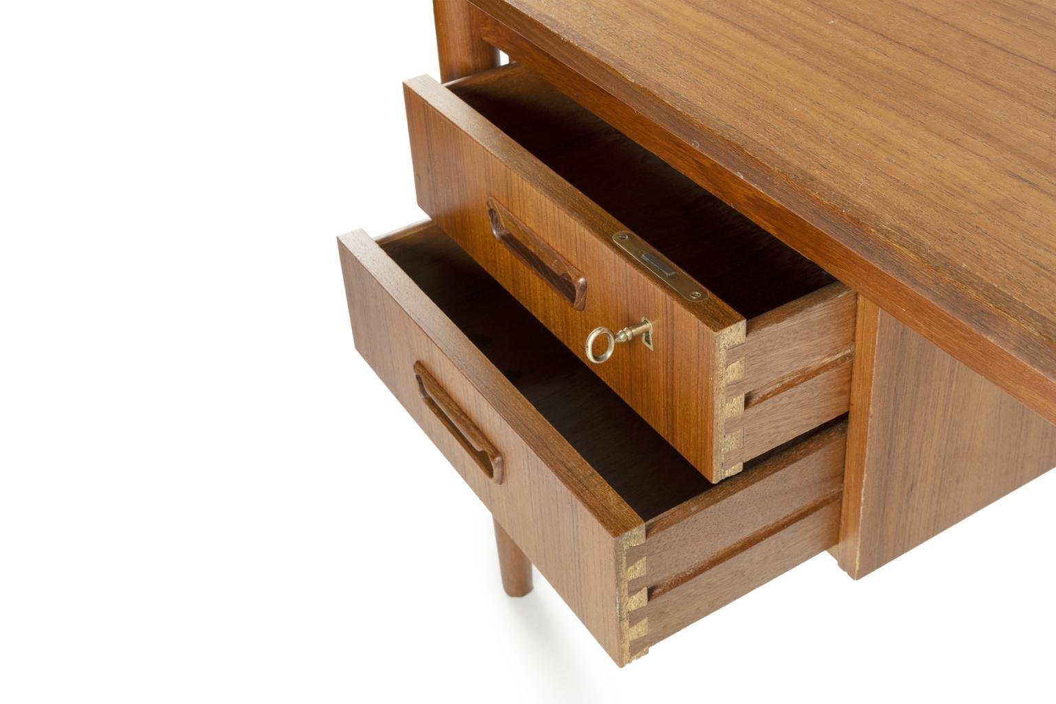 Scandinavian Desk with Sliding Mobile Drawer Block and Small Armchair, Denmark, 1970s, Set of 2