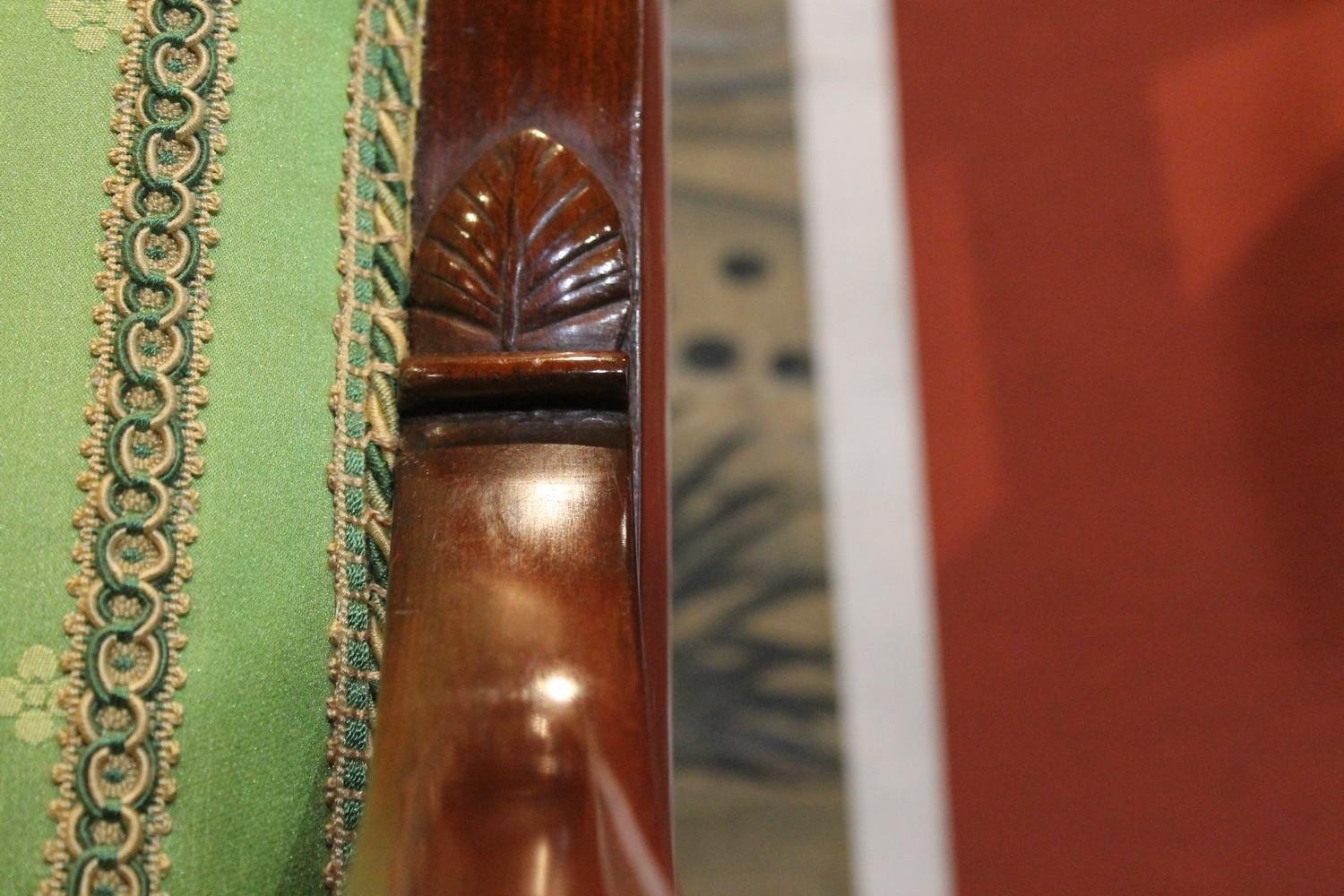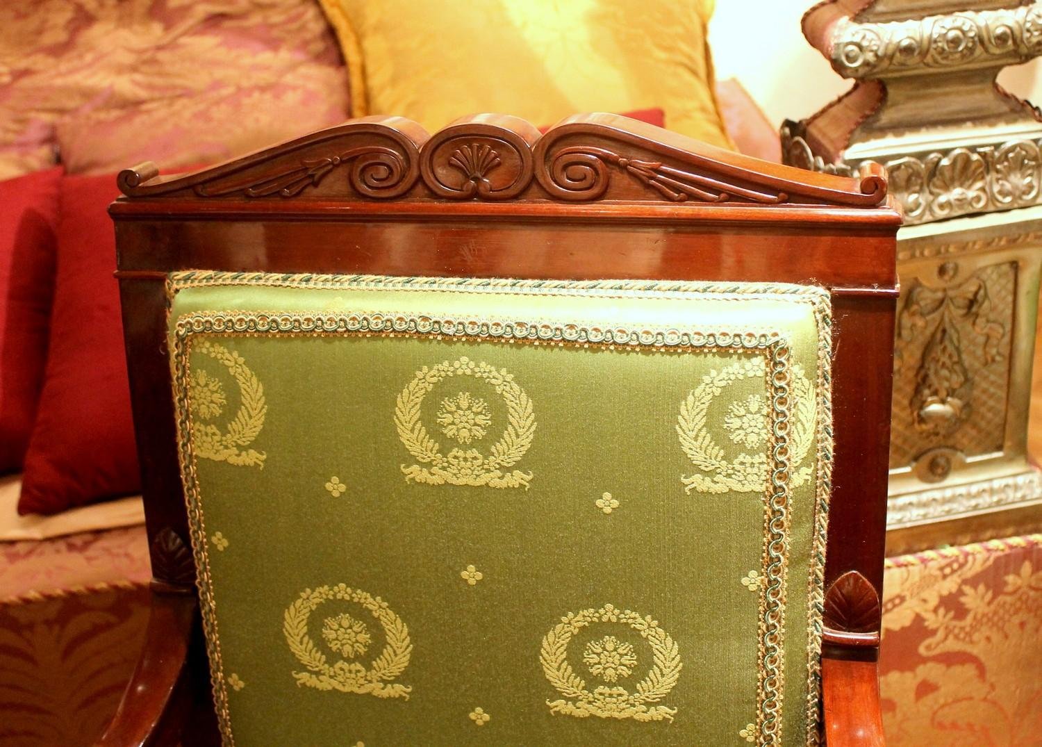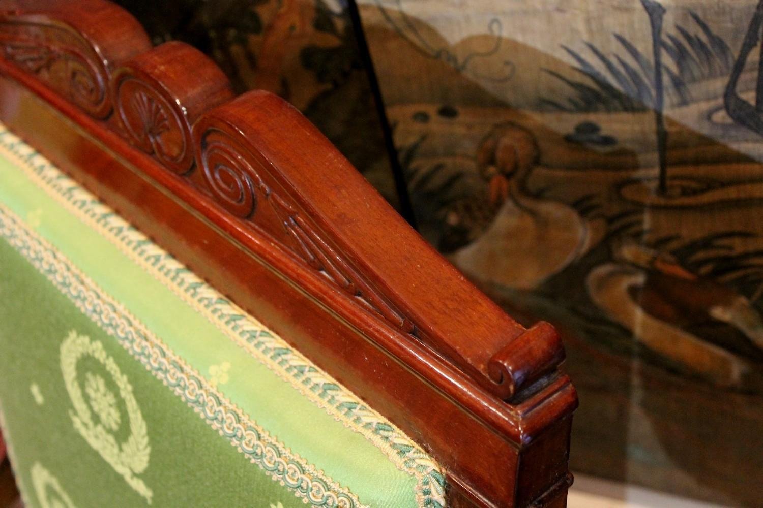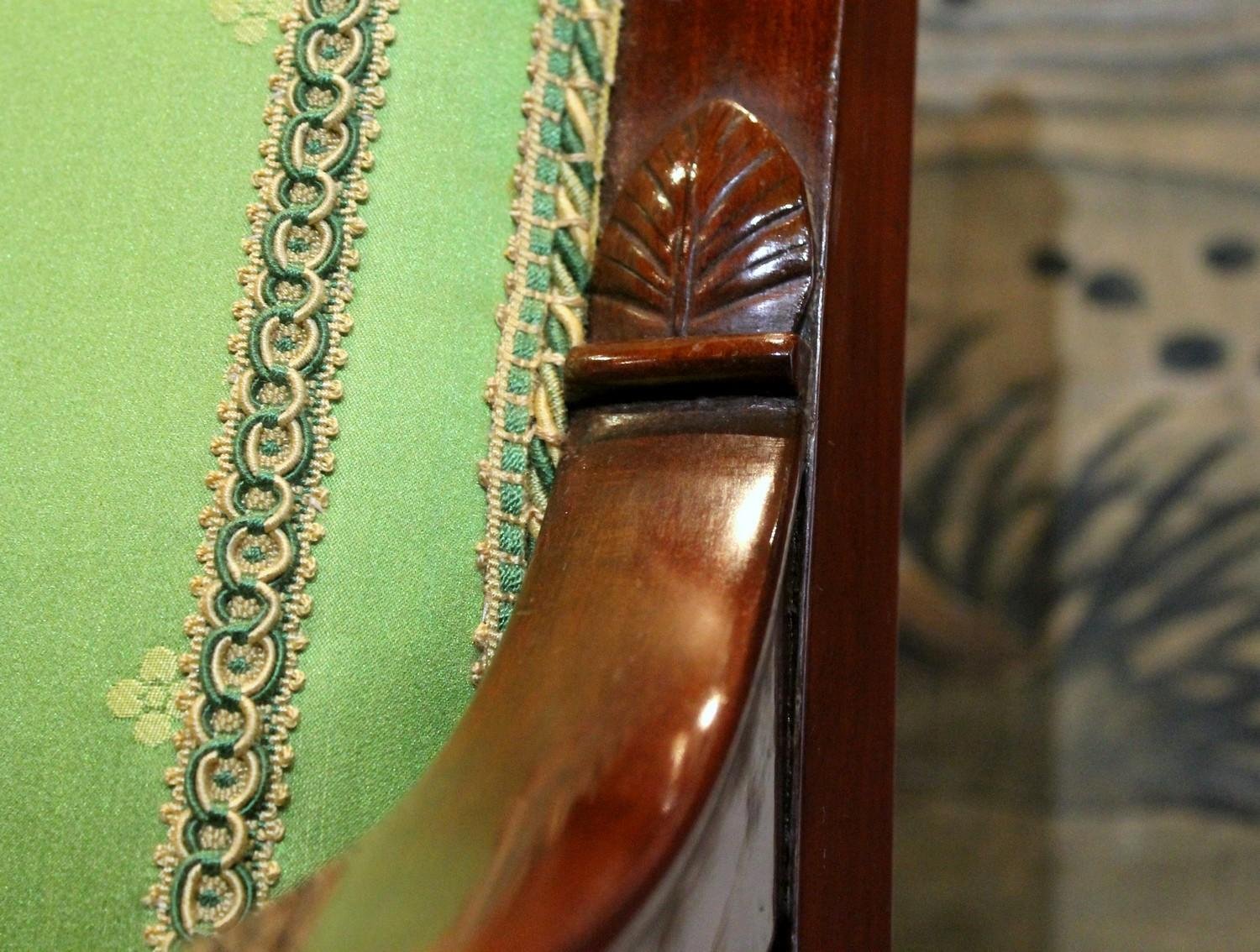 Set of 18th Century French Mahogany and Green Silk Upholster High Back Armchairs