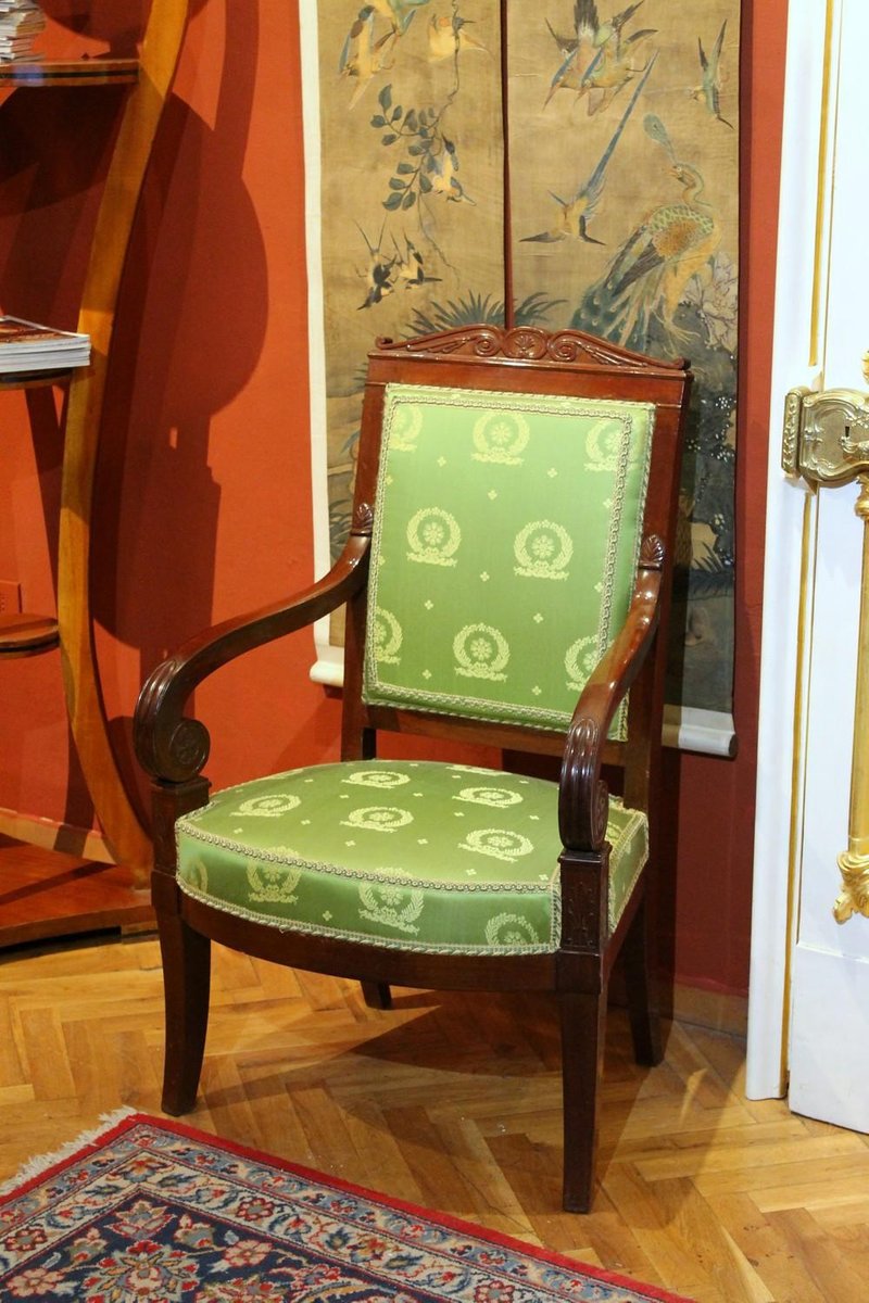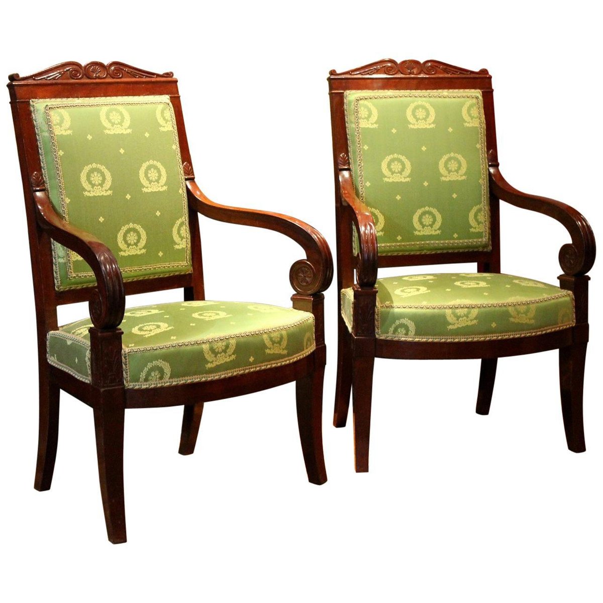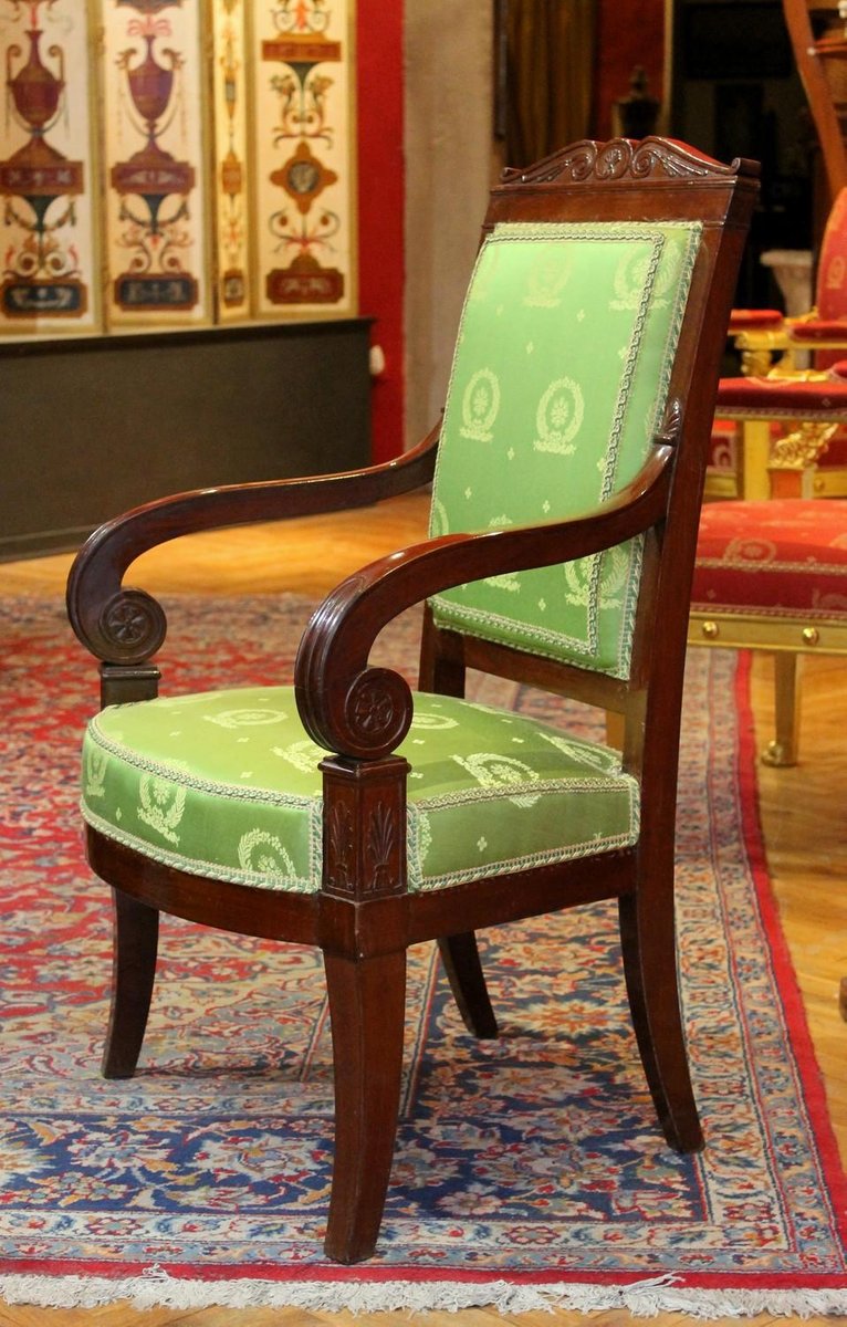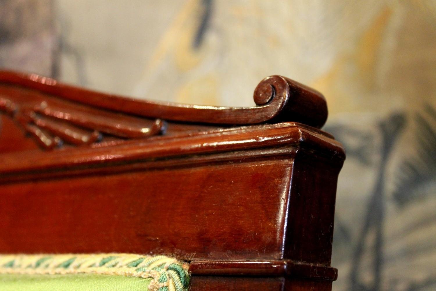 Set of 18th Century French Mahogany and Green Silk Upholster High Back Armchairs