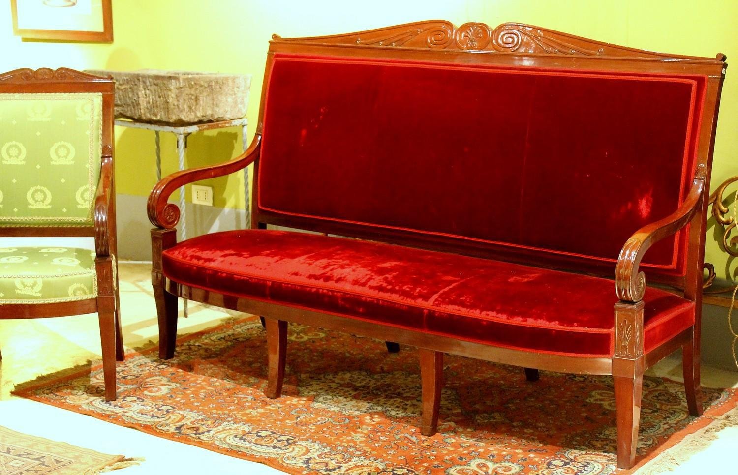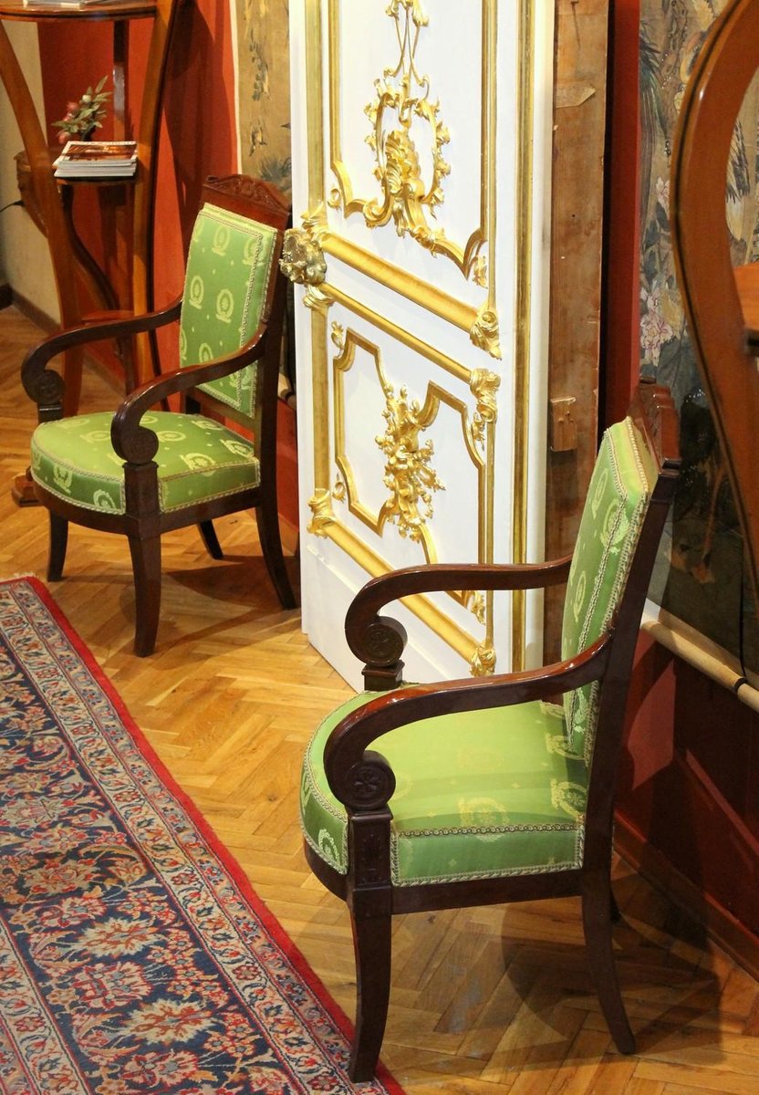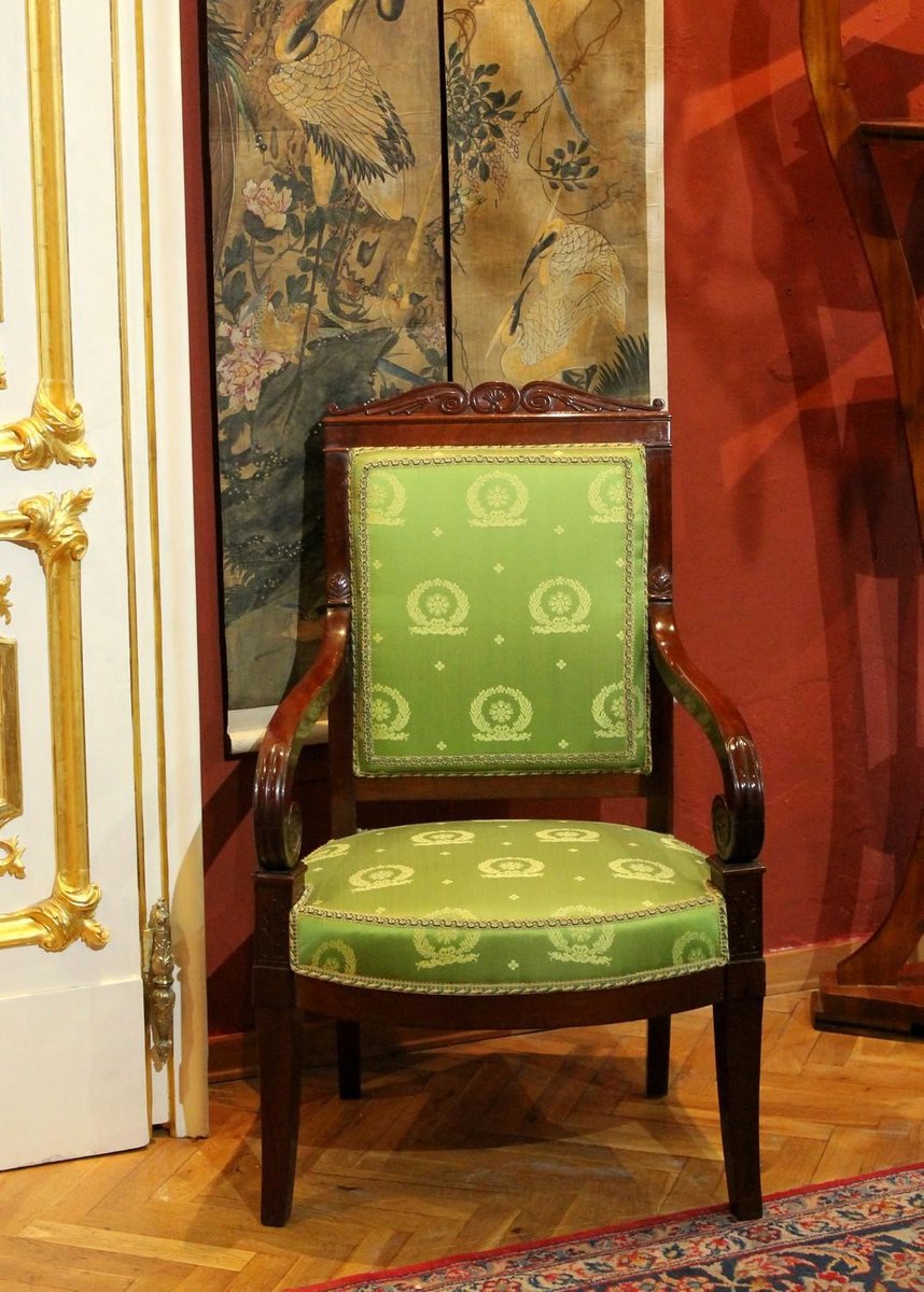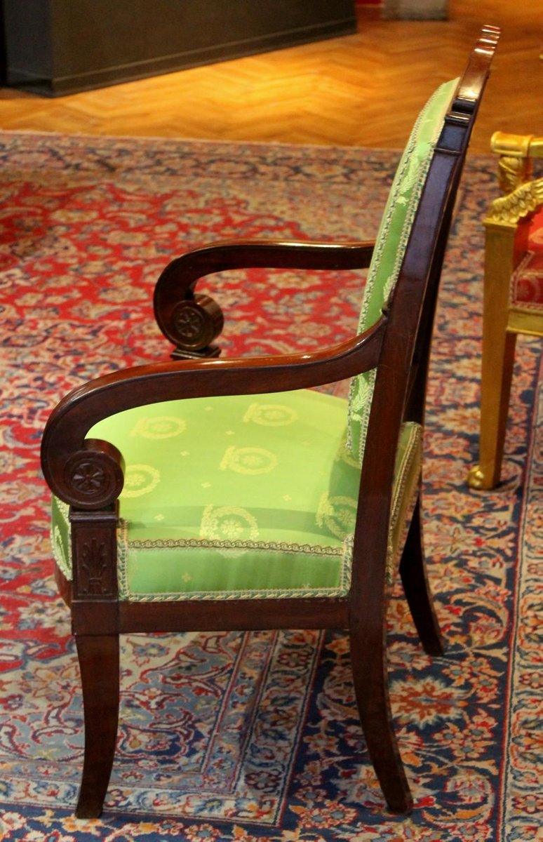 Set of 18th Century French Mahogany and Green Silk Upholster High Back Armchairs
