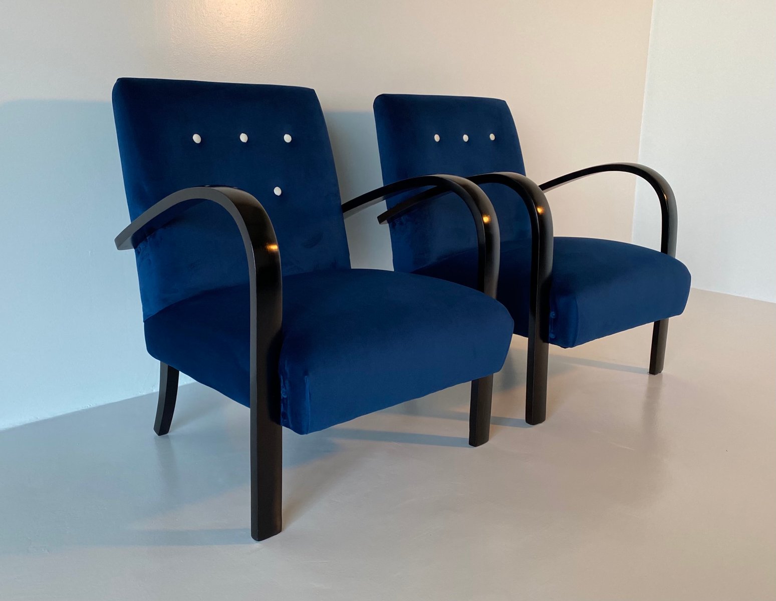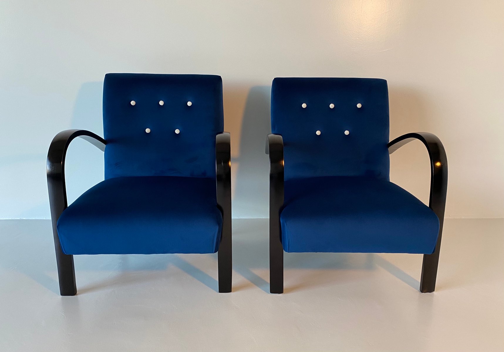 Set of Italian Art Deco Blue Armchairs, 1930s