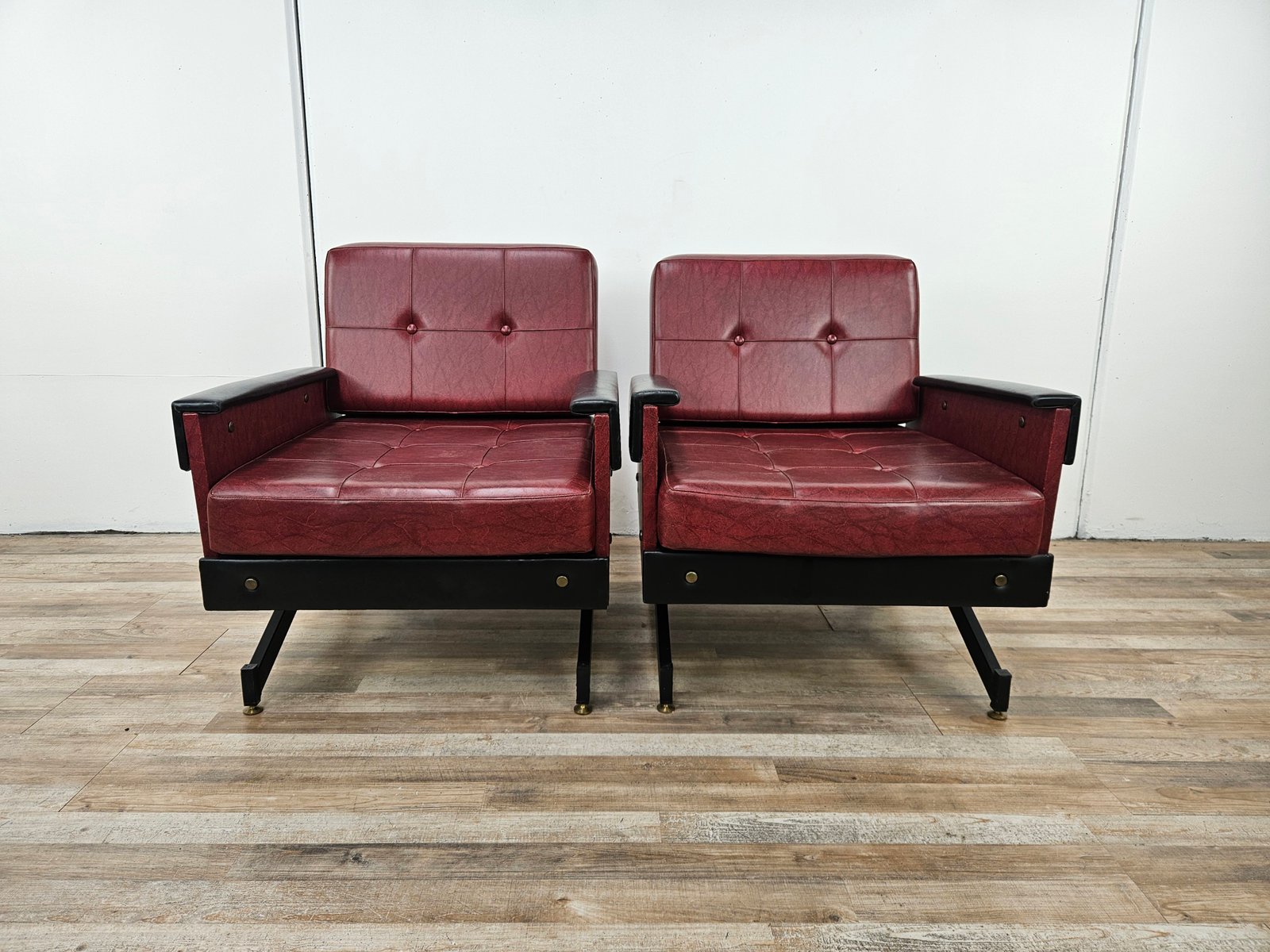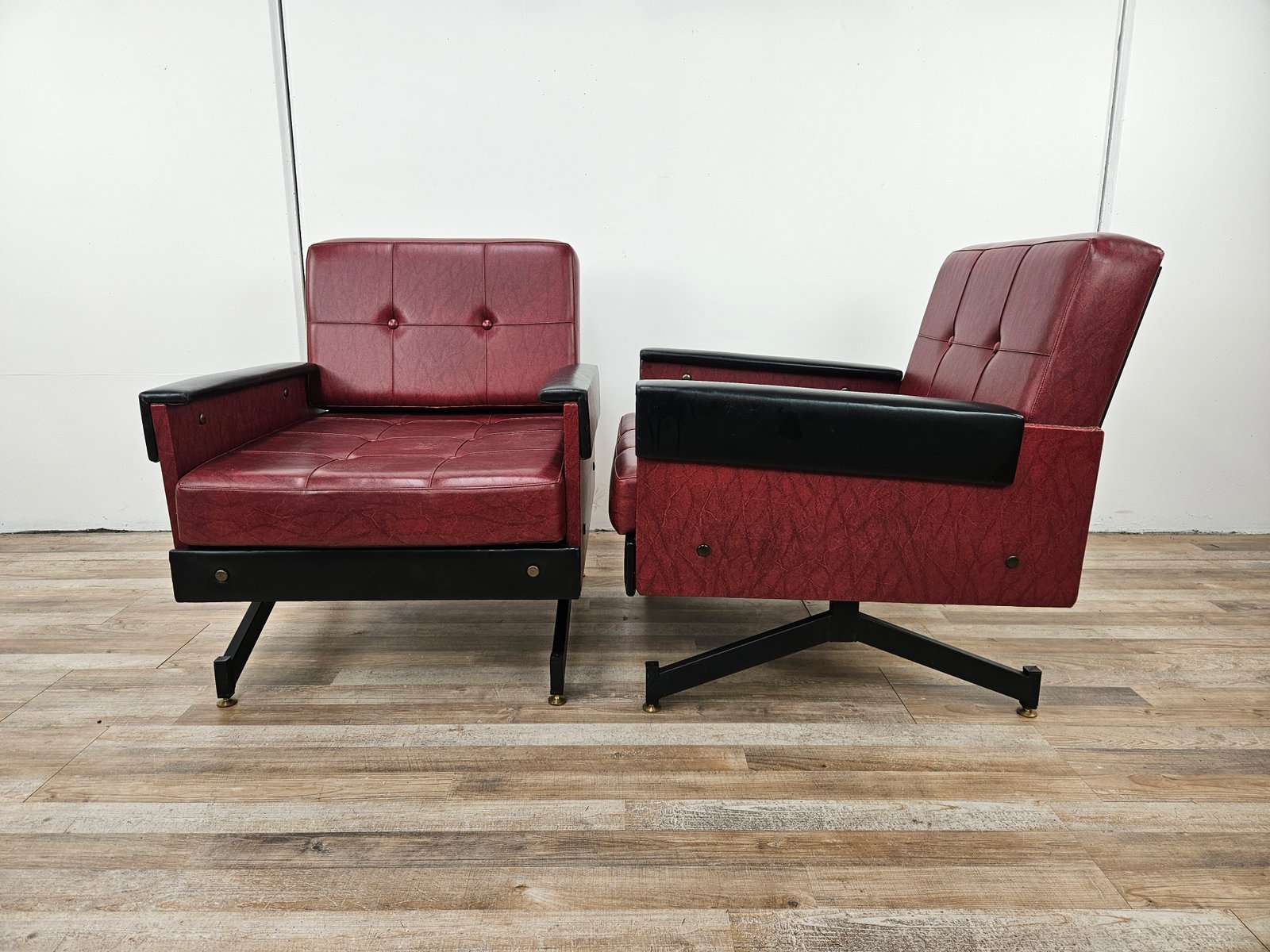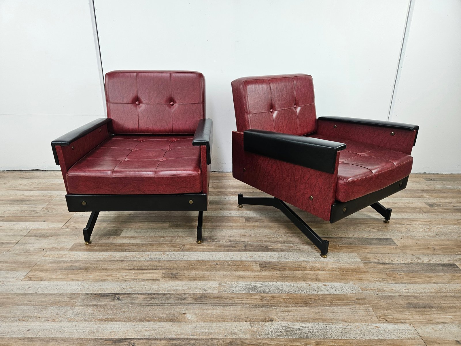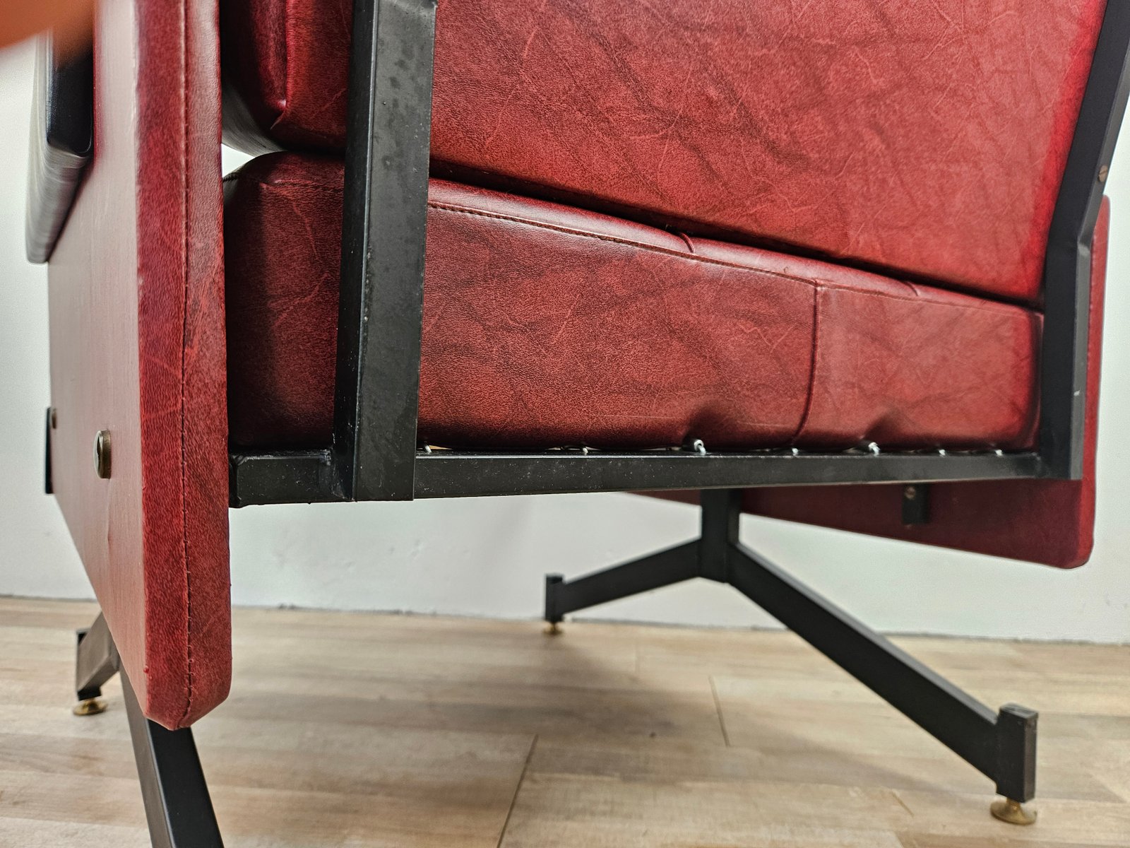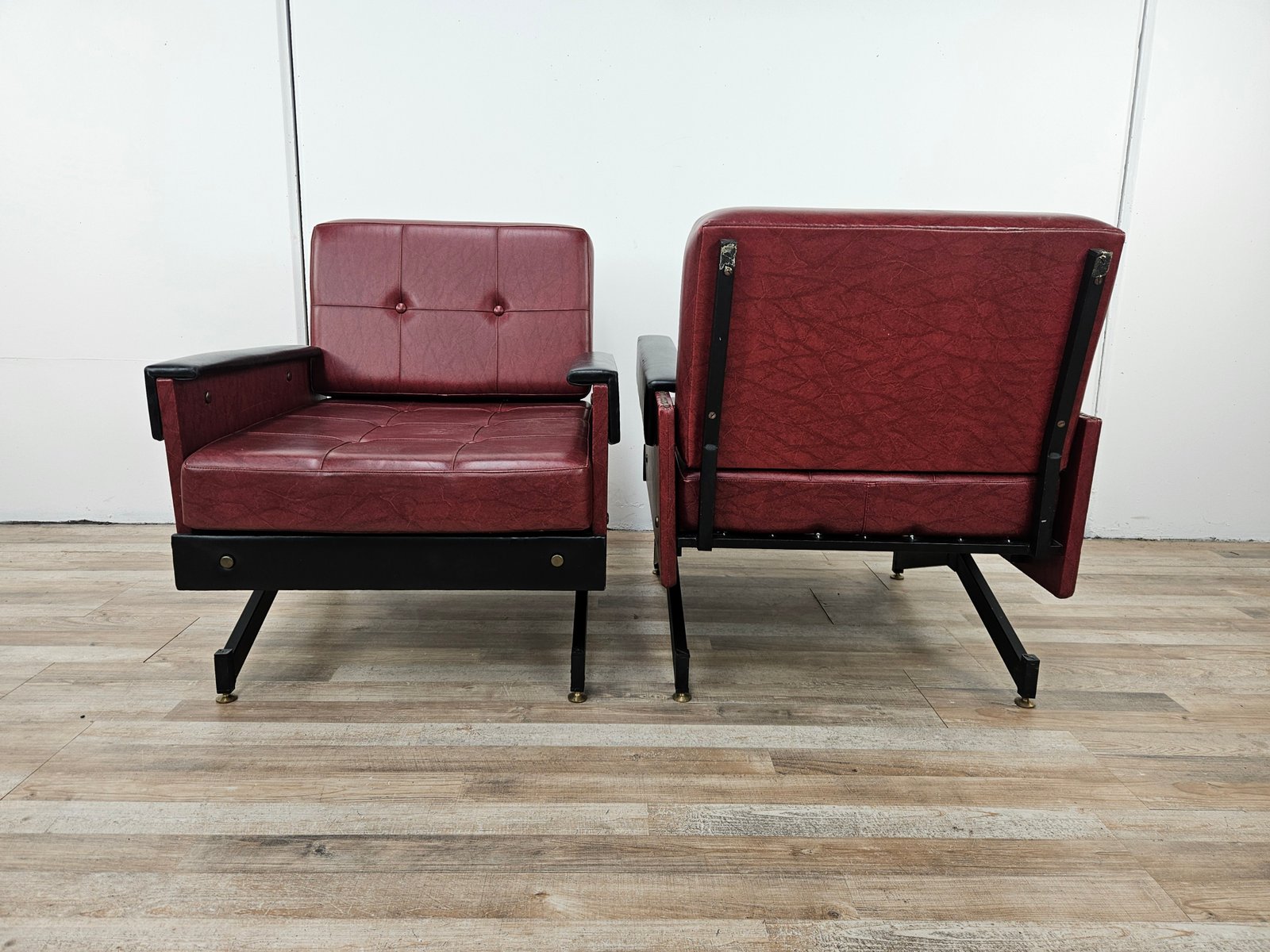 Set of Italian Cubist Iron and Imitation Leather Armchairs, 1960s