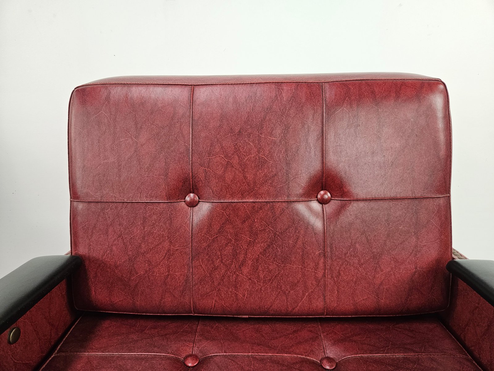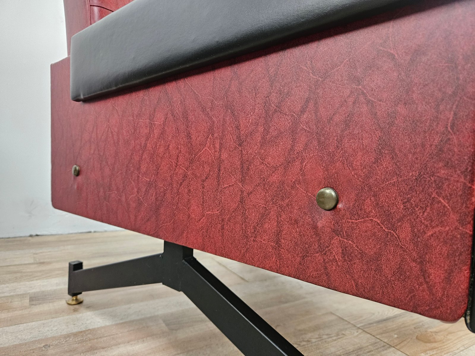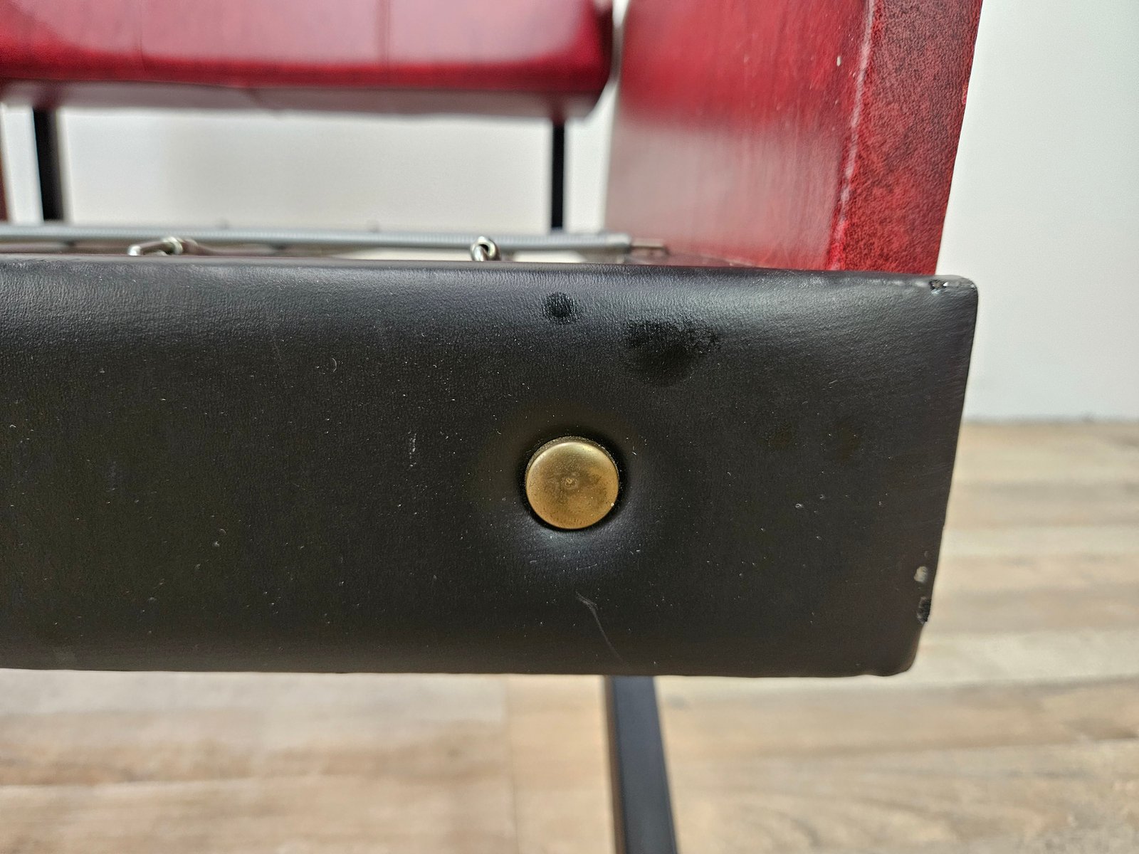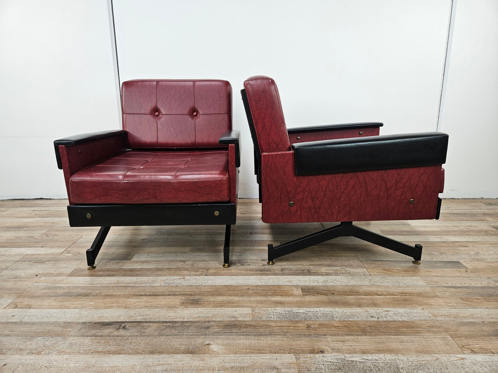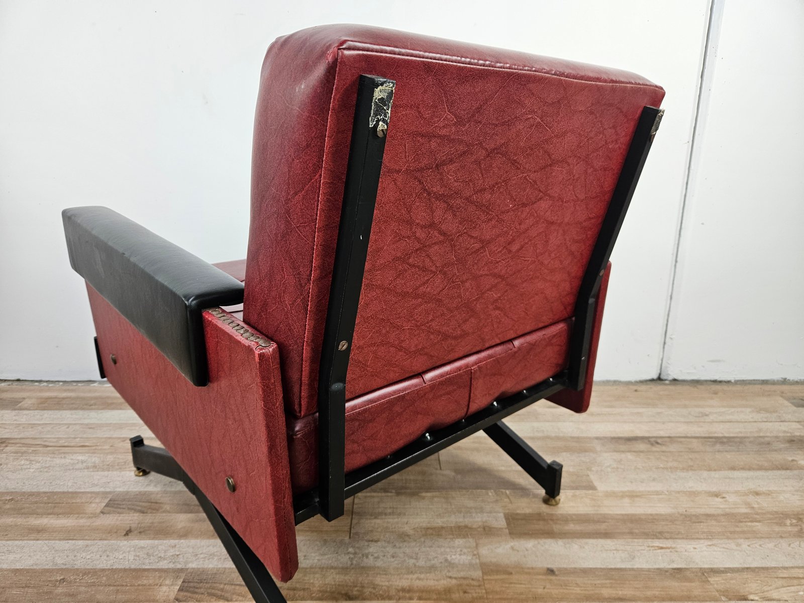 Set of Italian Cubist Iron and Imitation Leather Armchairs, 1960s