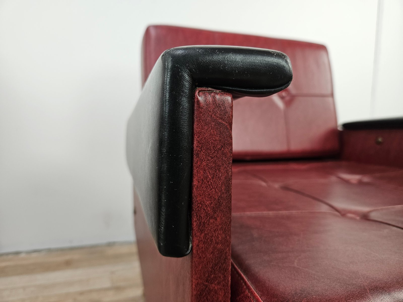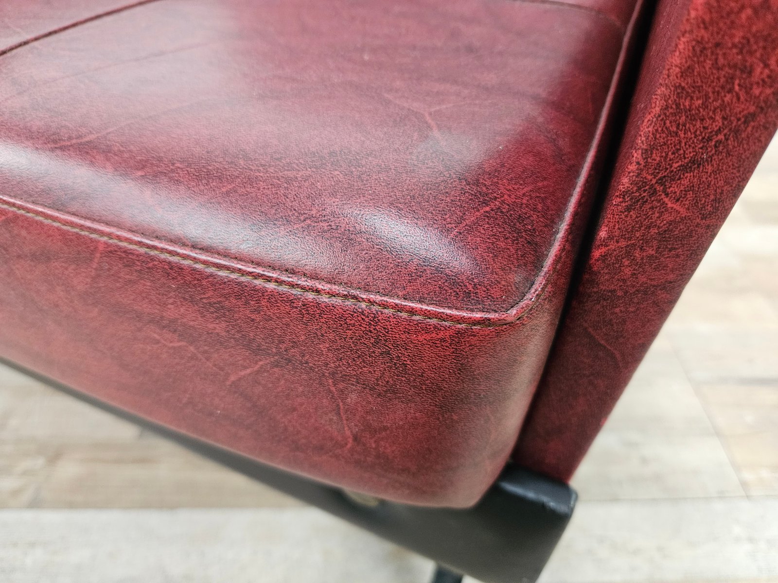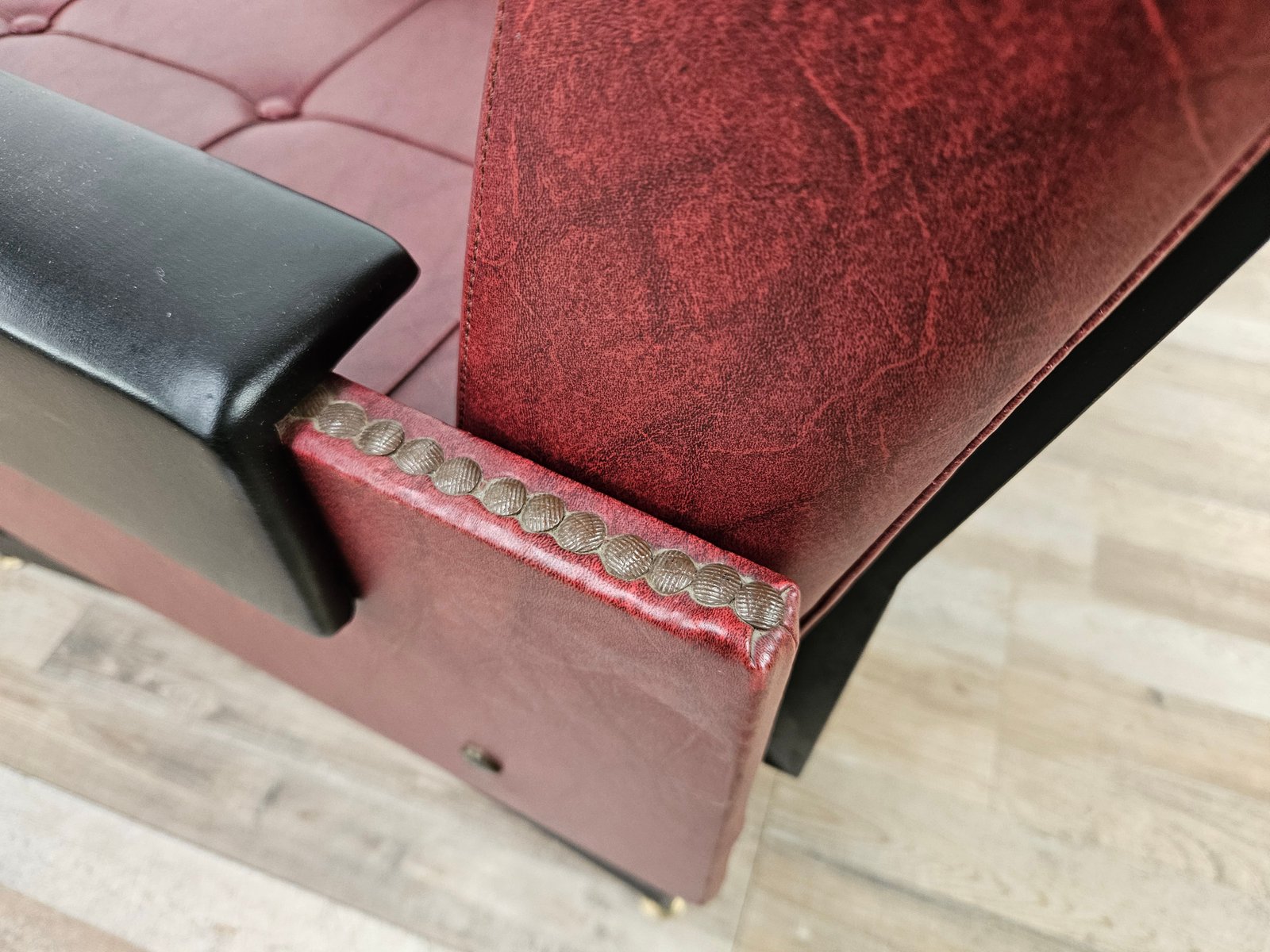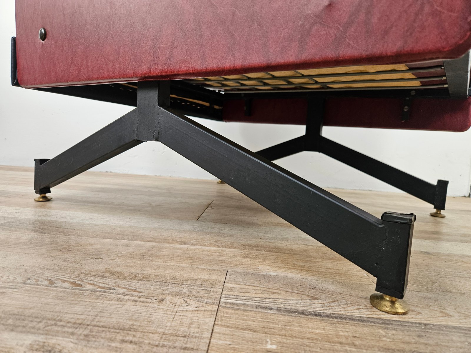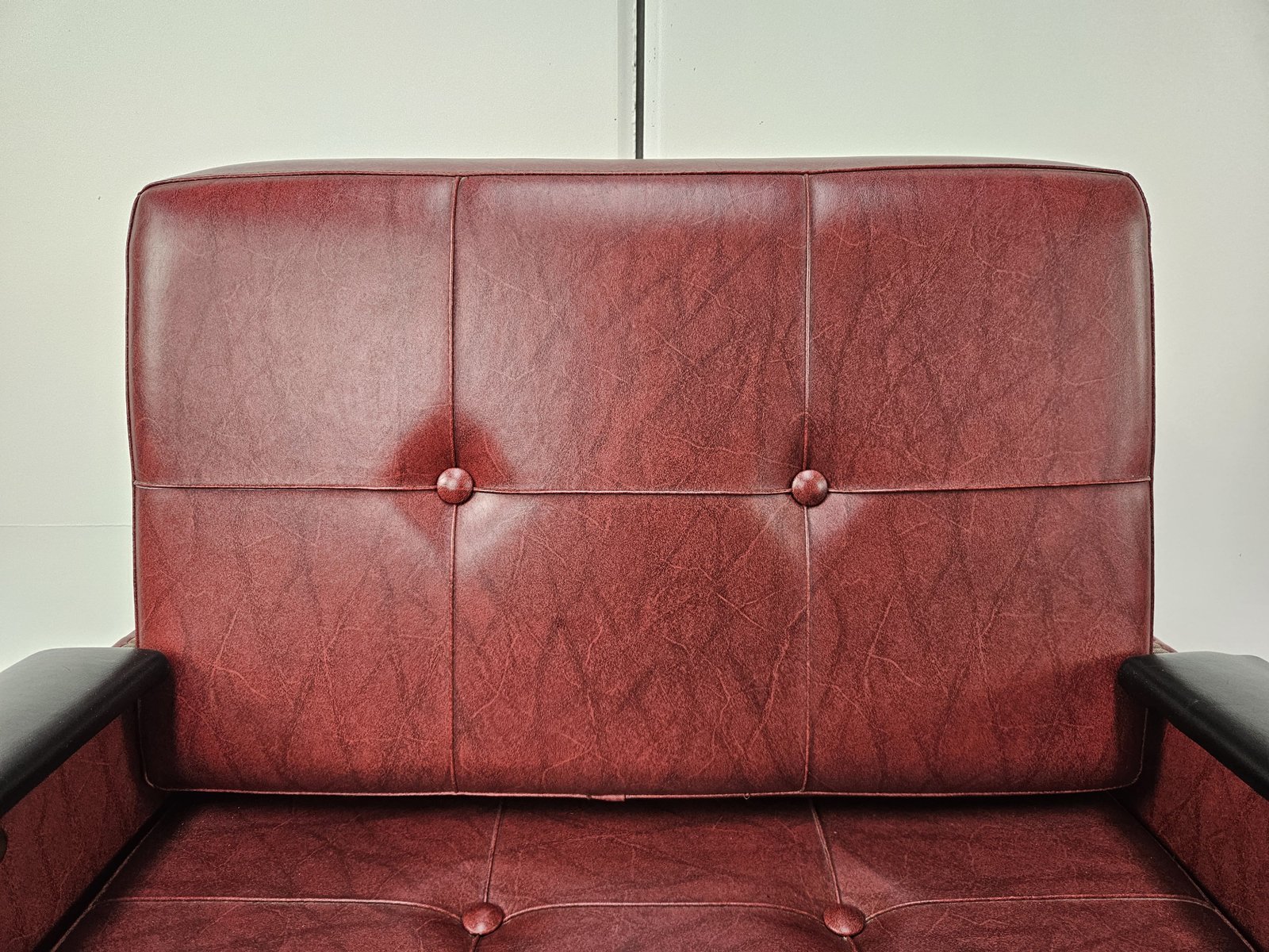 Set of Italian Cubist Iron and Imitation Leather Armchairs, 1960s
