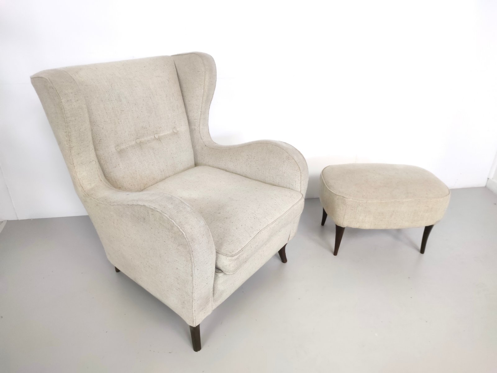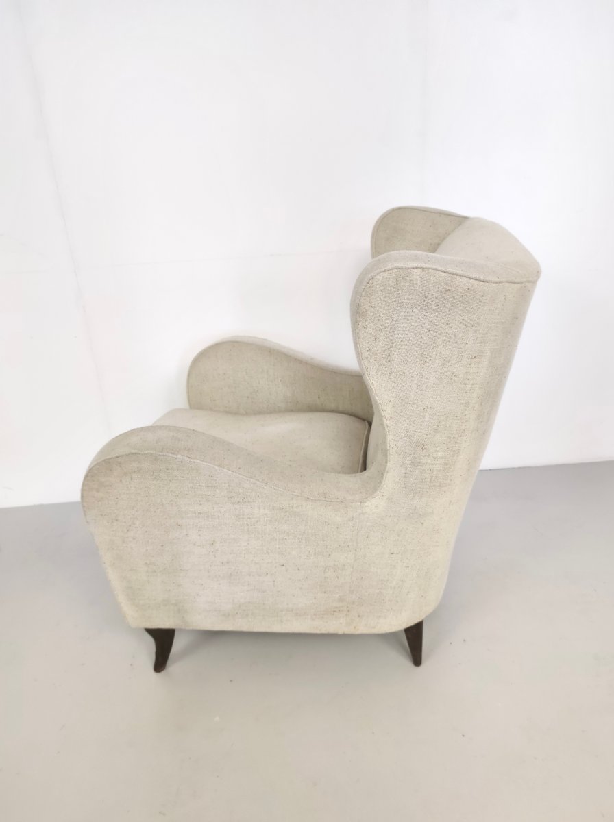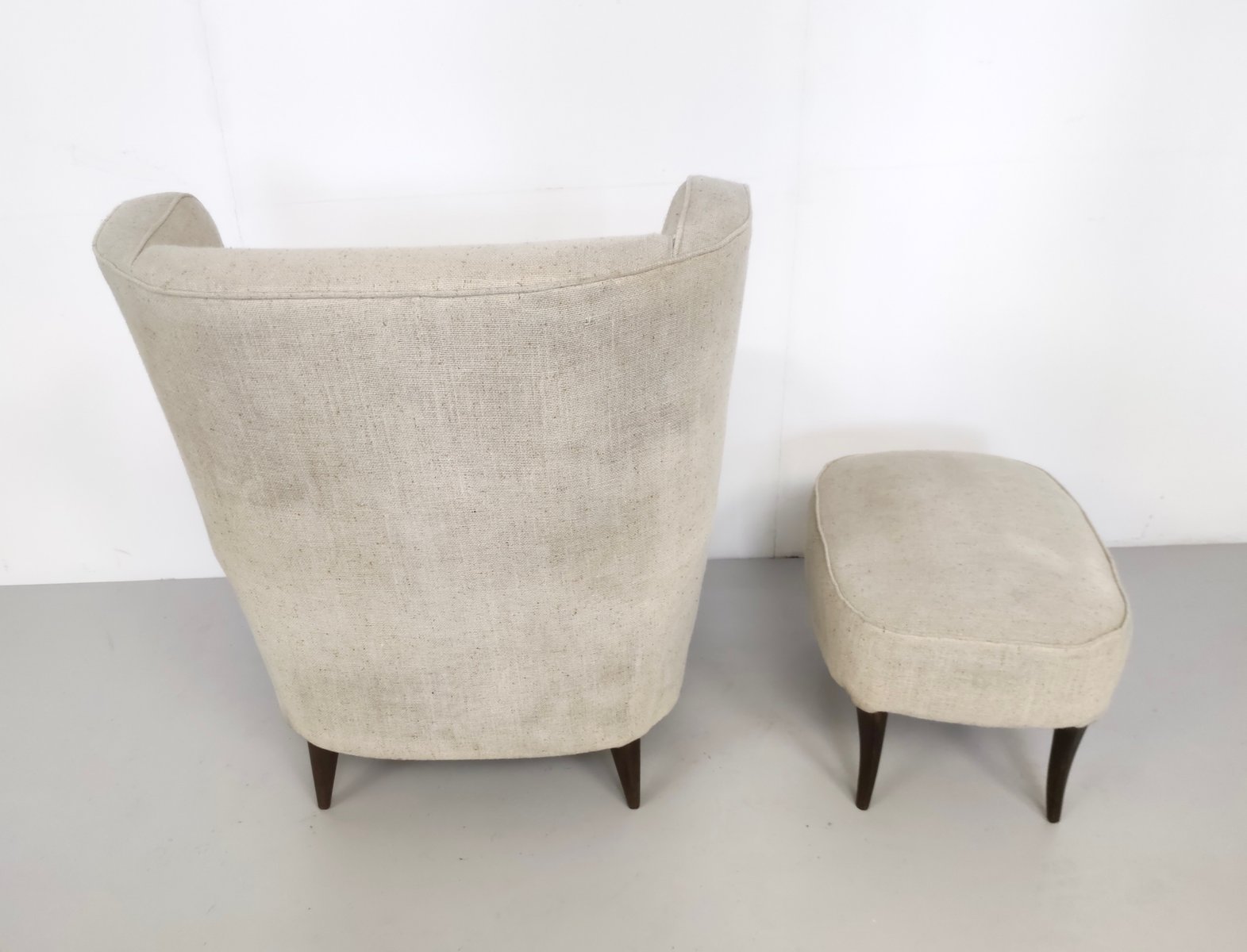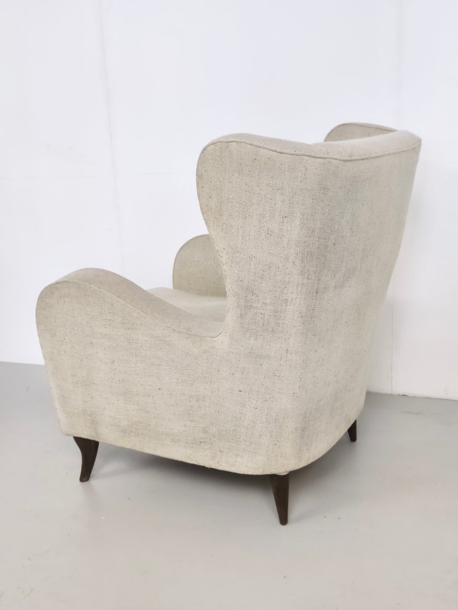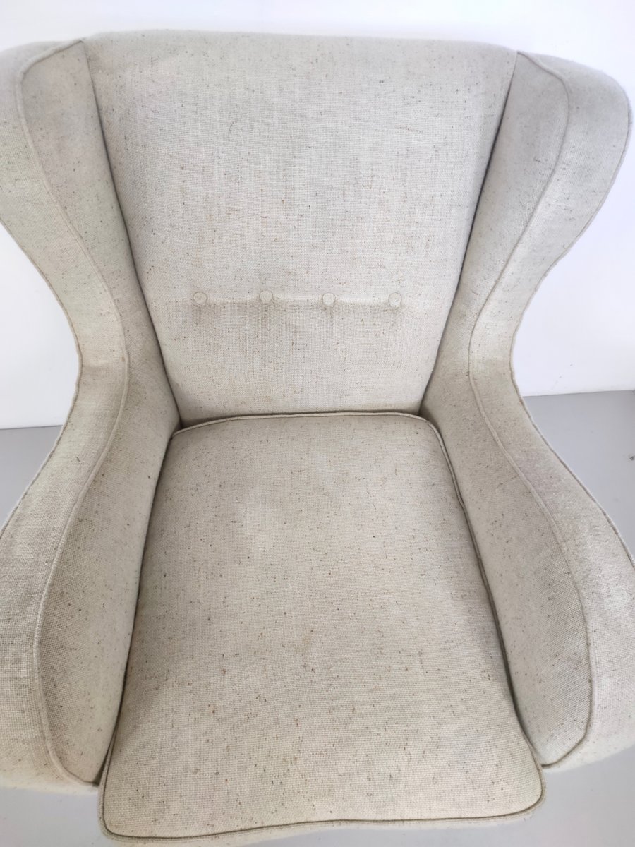 Vintage Orange Fabric Upholstery and Walnut Dining Chairs, Italy, 1930s, Set of 10
