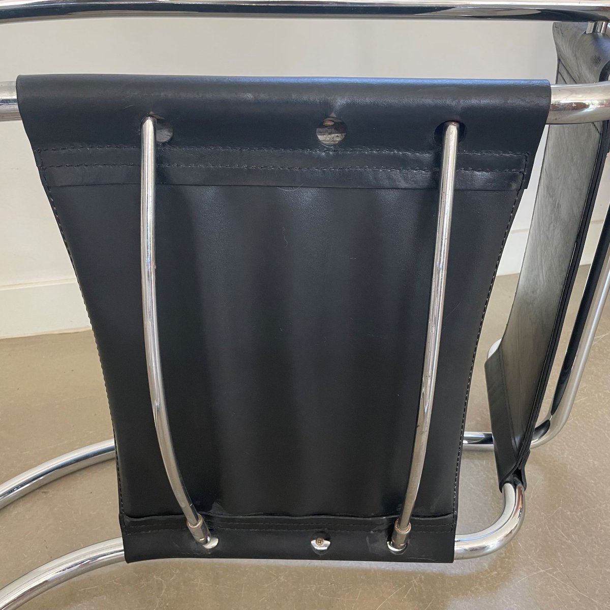 During the 1920s, Mies was active in Berlin’s avant-garde circles, participating in organizations like the Novembergruppe and Zehner Ring and contributing to the magazine G. He began studying and designing skyscrapers, which, while not built, portended future designs. He also directed the Weißenhofsiedlung exhibition in Stuttgart, a model housing colony project for which he invited the era’s most accomplished European architects to participate—including Walter Gropius and Le Corbusier—and 20 permanent residential buildings were built around his own steel-framed apartments, revealing a series of individual interpretations of workers’ housing. This project introduced him to Lilly Reich and the pair collaborated frequently over the next decade. His other major project of this era was the German (or Barcelona) Pavilion, built for the German section of the 1929 Barcelona International Exposition, which helped establish him on an international stage. Using glass and marble interior walls that could be easily moved, he merged interior and exterior spaces, emphasizing a fluidity of space and incorporating specially designed furniture, including the iconic leather and chrome Barcelona chair. Shortly after, in 1932, his work was included in the first architectural exhibition at the Museum of Modern Art in New York, entitled Modern Architecture: An International Exhibition, which helped introduce his work to an American audience. From 1930 to 1933, he served as Director of the Bauhaus; under political pressure from the Nazis, he moved the school from Dessau to Steglitz, Berlin and ultimately closed the school in 1933.