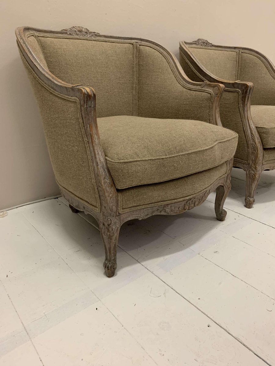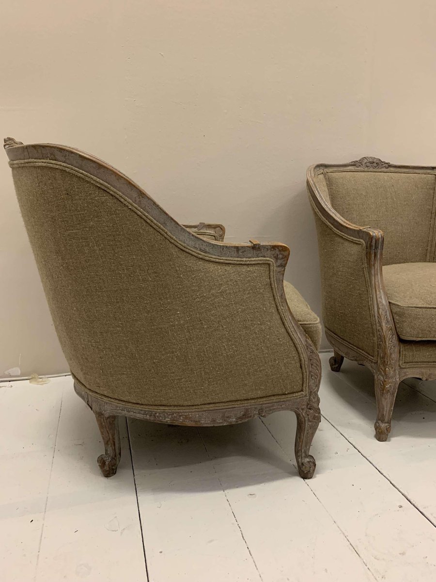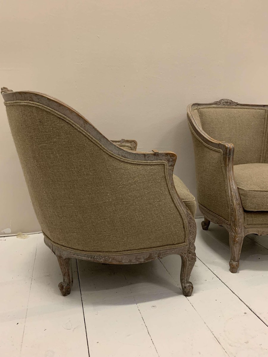 Set of Swedish Lounge Chairs Upholstered in Linen, 1920s