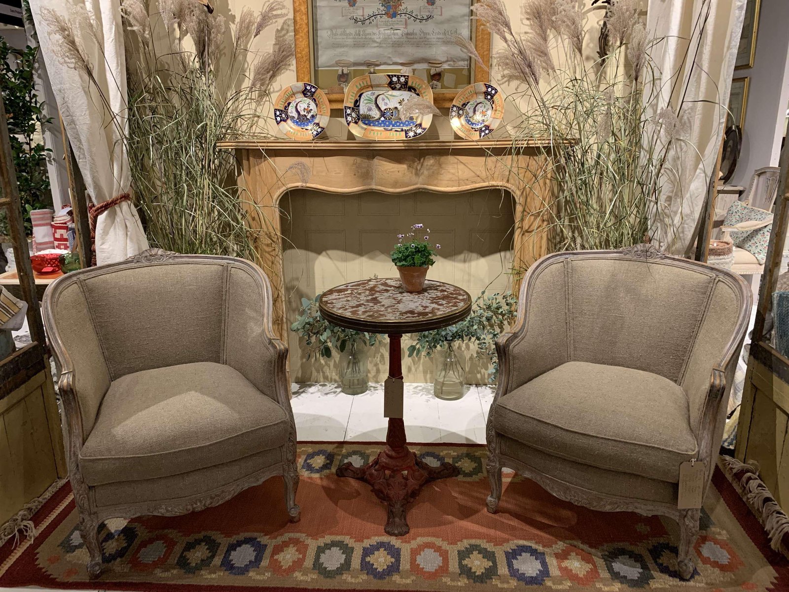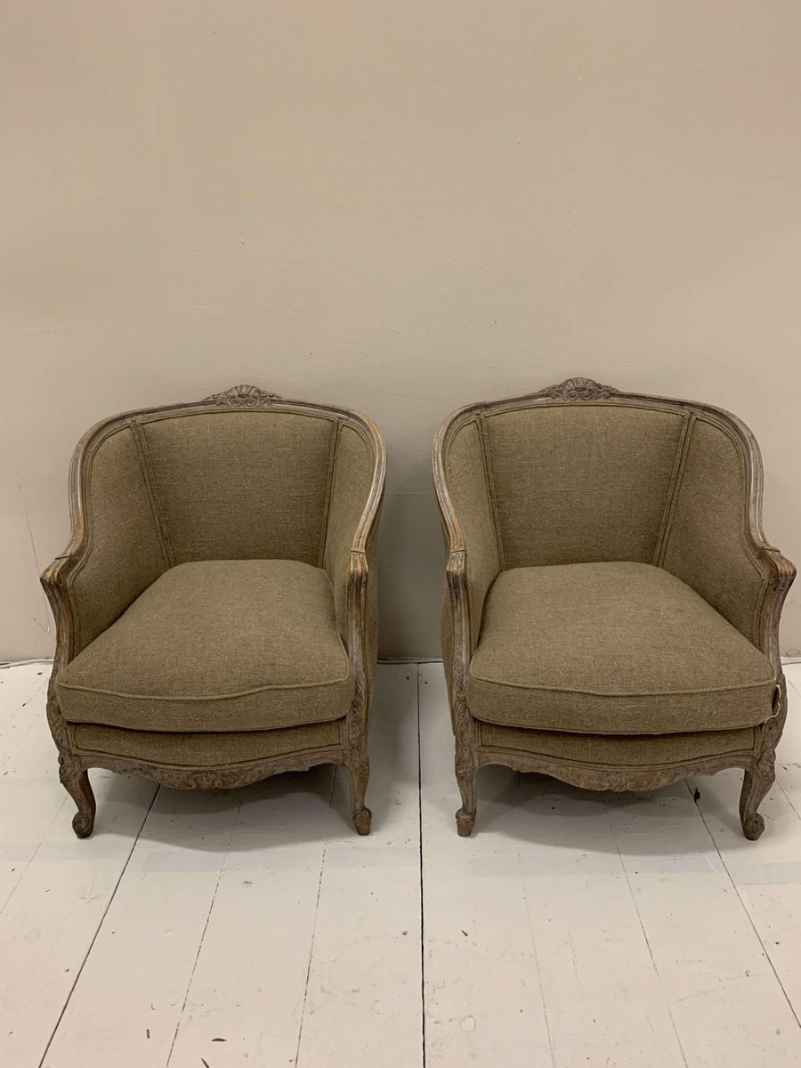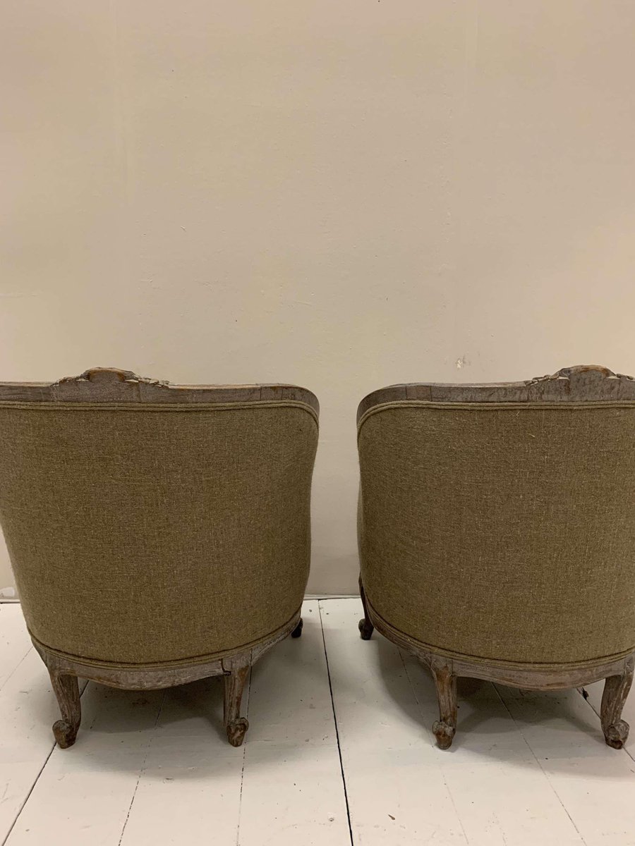 Set of Swedish Lounge Chairs Upholstered in Linen, 1920s