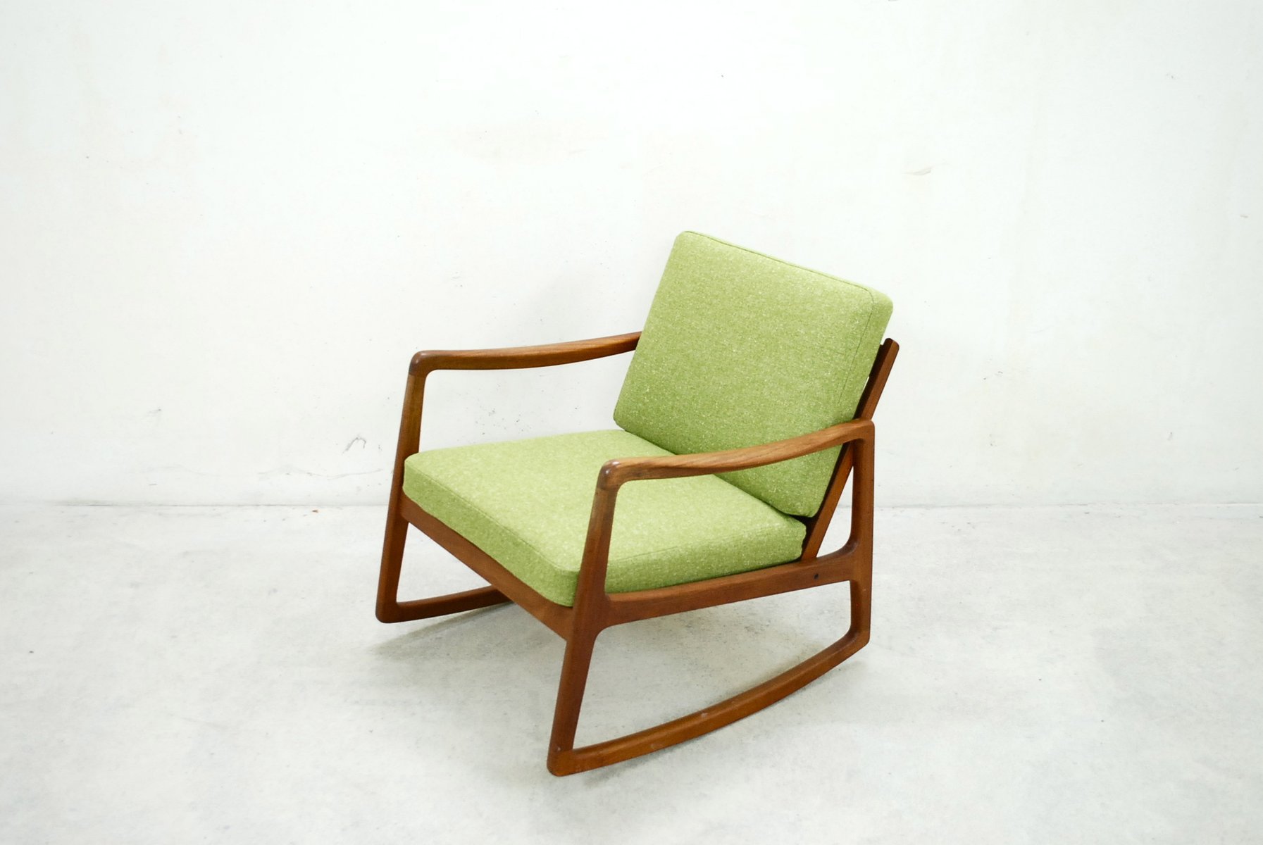Between the 1940s and 1960s, Wanscher enjoyed fruitful collaborations with small-scale, artisanal cabinetmakers, like the masterful A. J. Iversen (1888-1979), as well as well as larger-scale Danish companies, such as France & Søn, Fritz Hansen, Poul Jeppesen, and Rud Rasmussen. With Iversen, he created the iconic Ladies Desk (1954) and Egyptian Stool (1957). Other standout Wanscher designs include the PJ-149 Colonial Chair (1949), Rungstedlund Dining Chair (ca. 1950), and PJ-112 Sofa (1951) for Poul Jeppesen; as well as the 110 Rocking Chair (1951) and Senator Easy Chair (1951) for France & Søn .