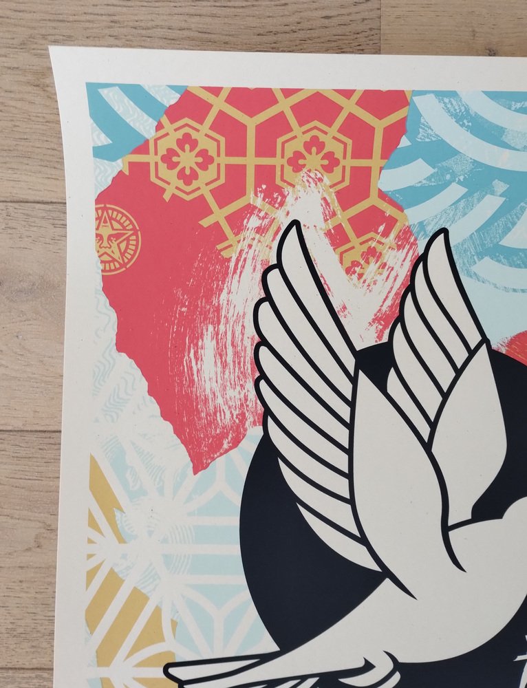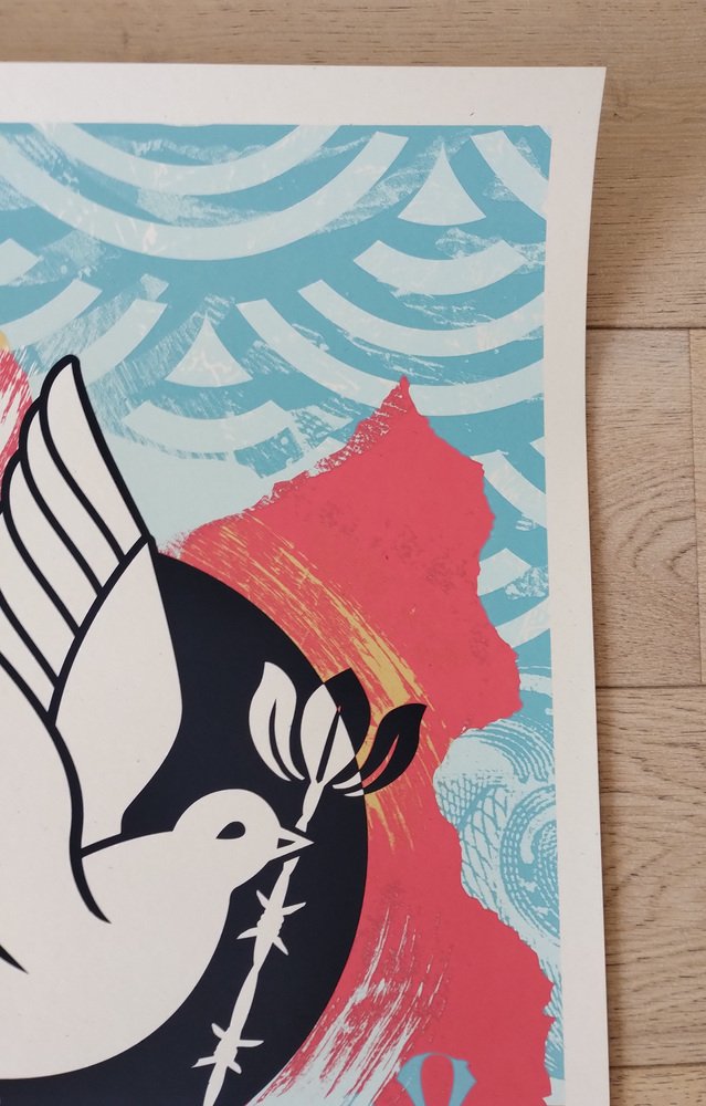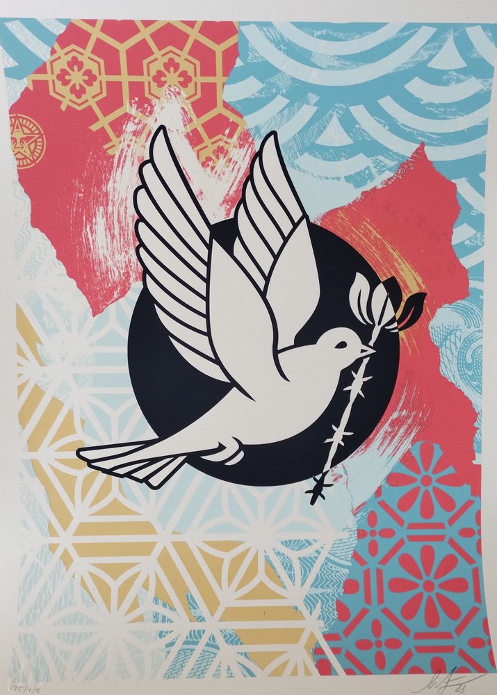 Shepard Fairey (Obey), Barbwire Dove Collage, Pencil Screenprint