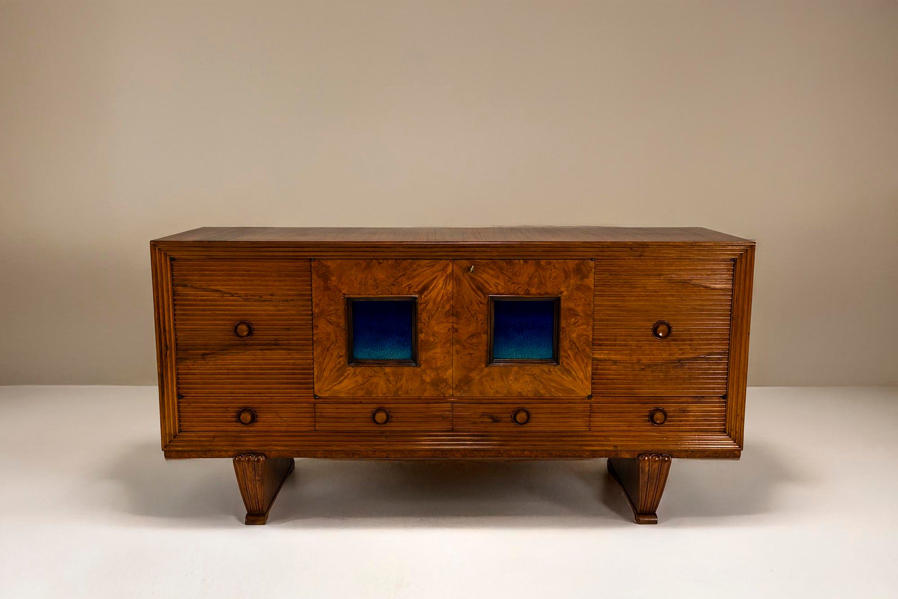 Large Display Cabinet in Wood and Lacquer by Fantoni, 1940s