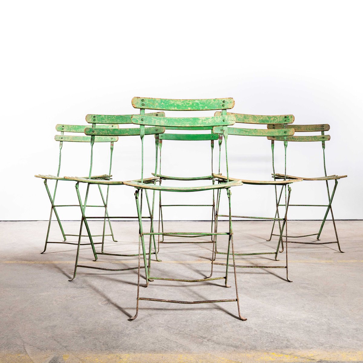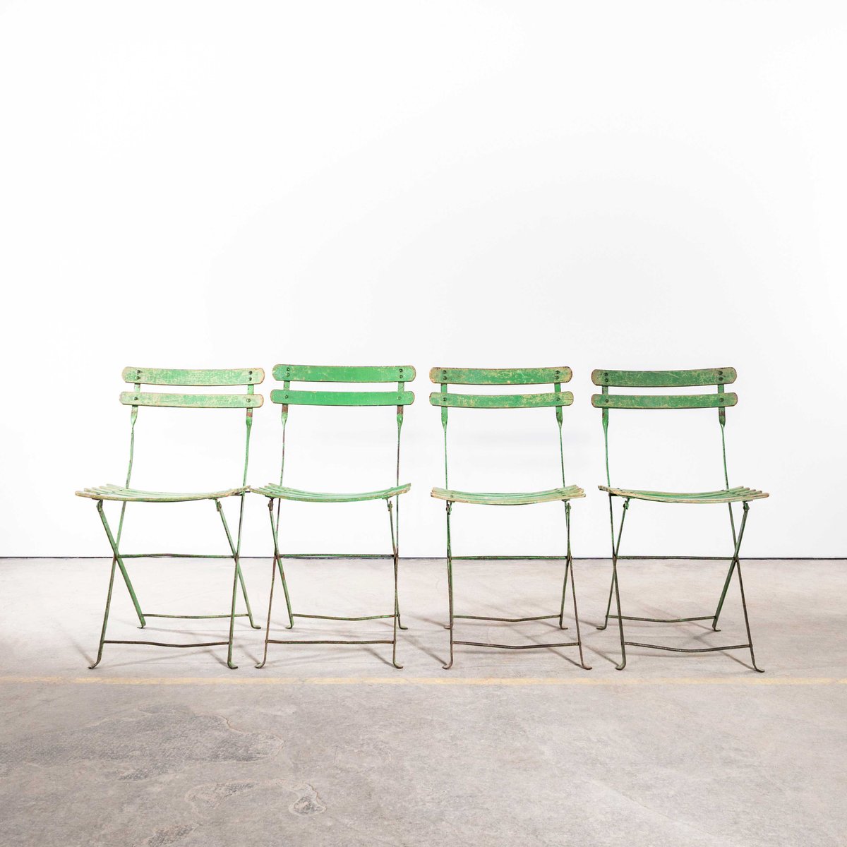 Slatted Green French Outdoor Folding Chair, 1950s