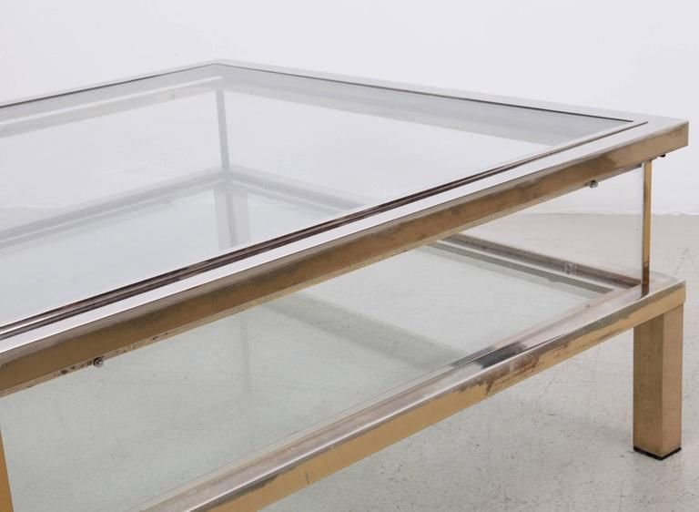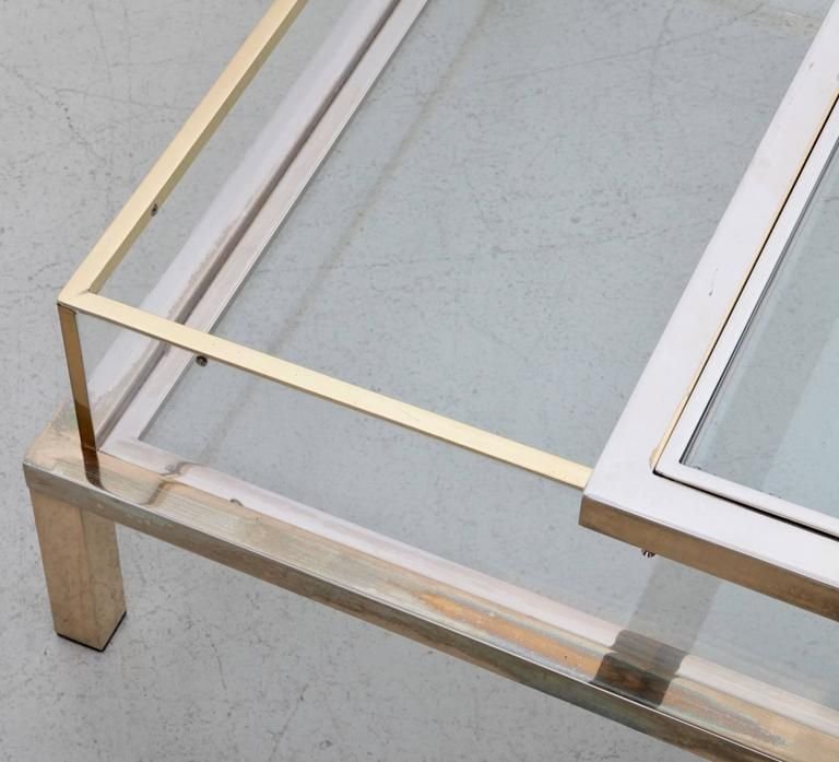 Sliding Top Coffee Table in Brass and Chrome from Maison Jansen, 1970s