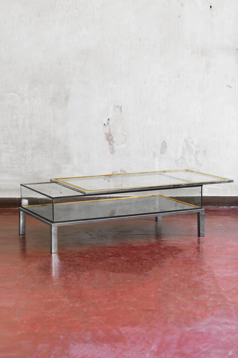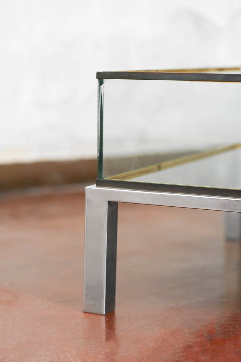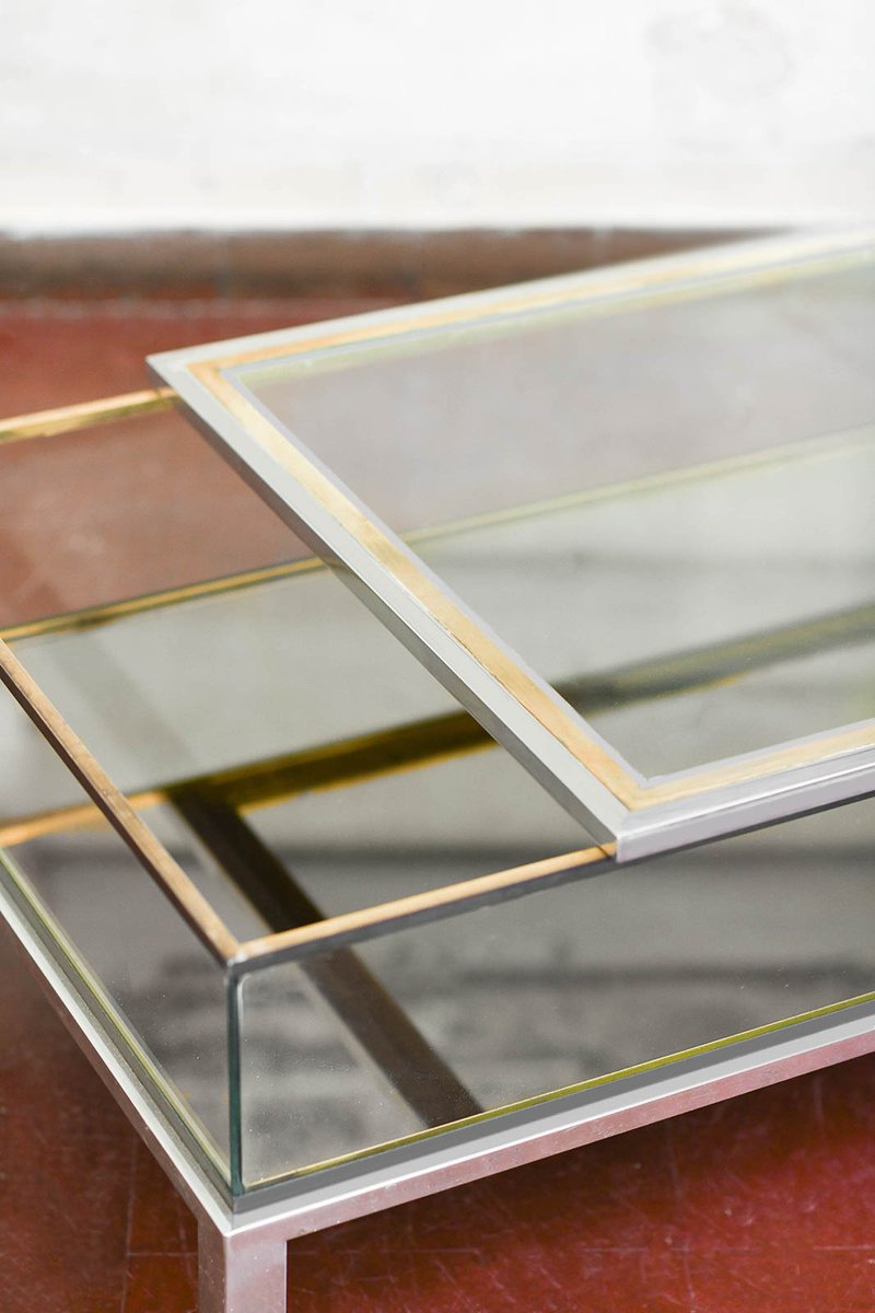 Coffee Tables in Brass and Glass, 1970, Set of 2