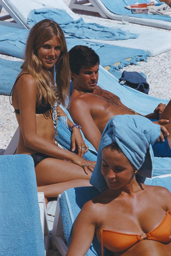 Slim Aarons, George Hamilton and Alana Collins, Estate Stamped Photographic Print, 1968 / 2020s