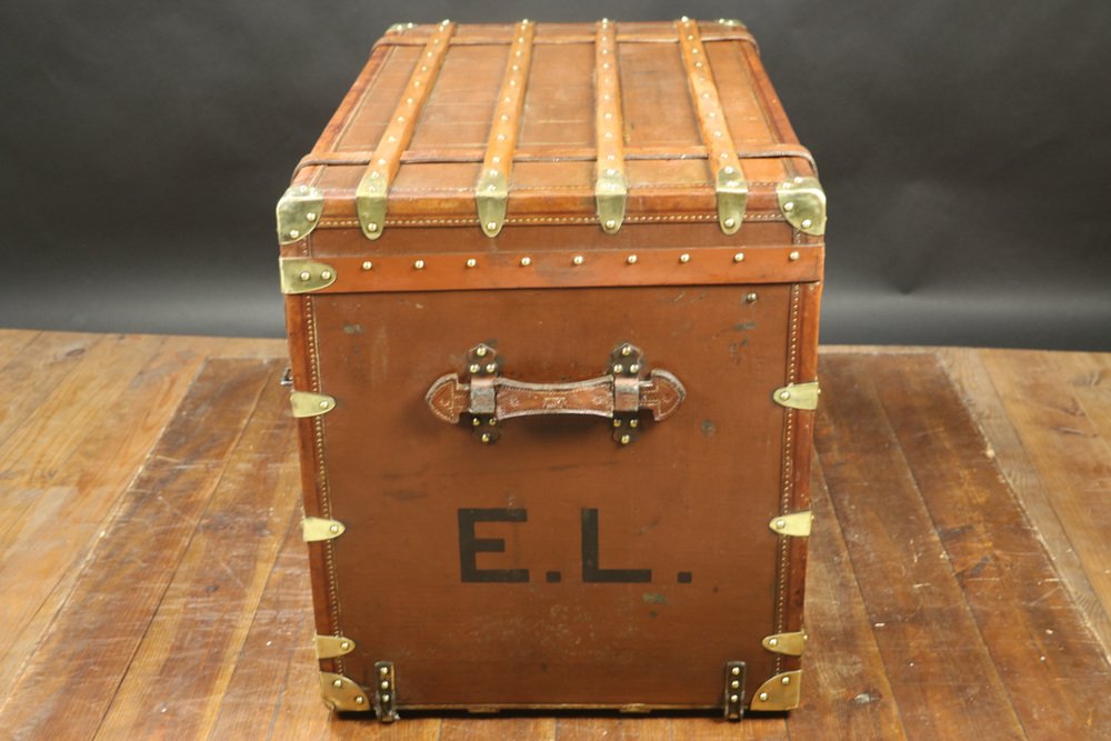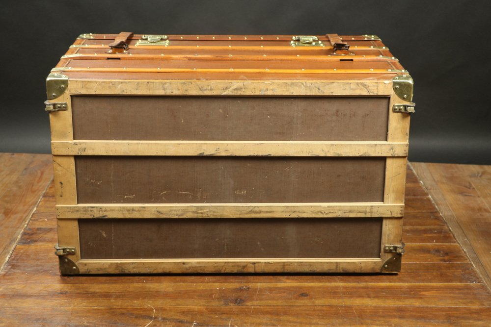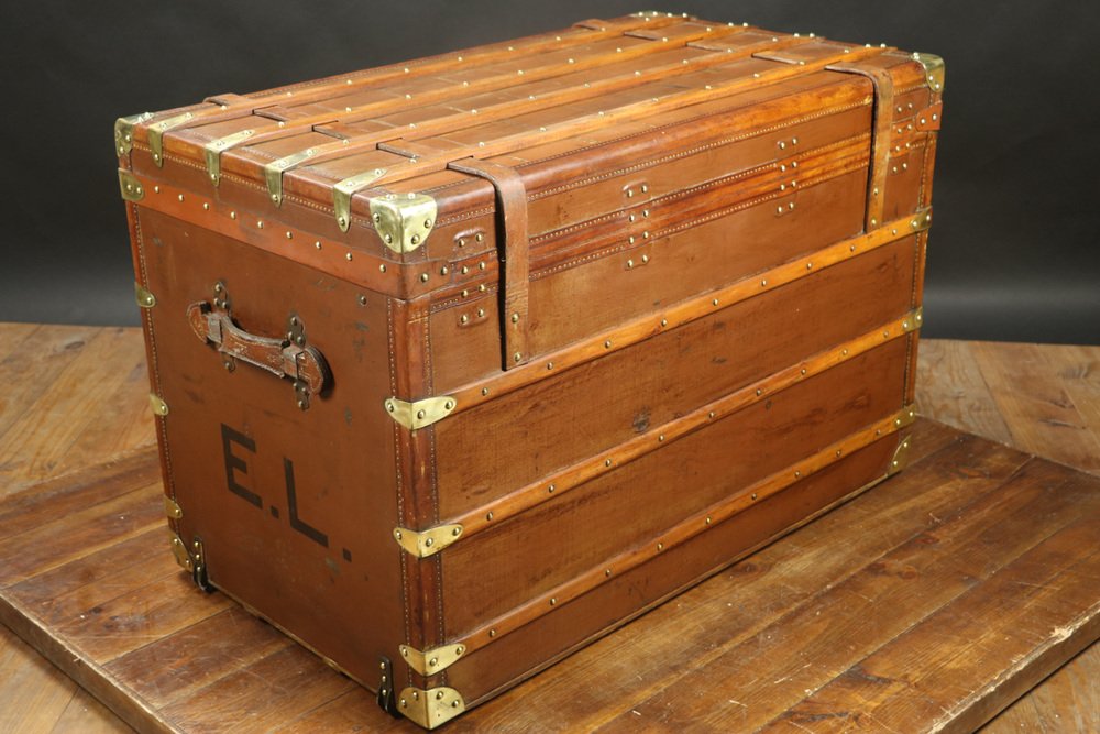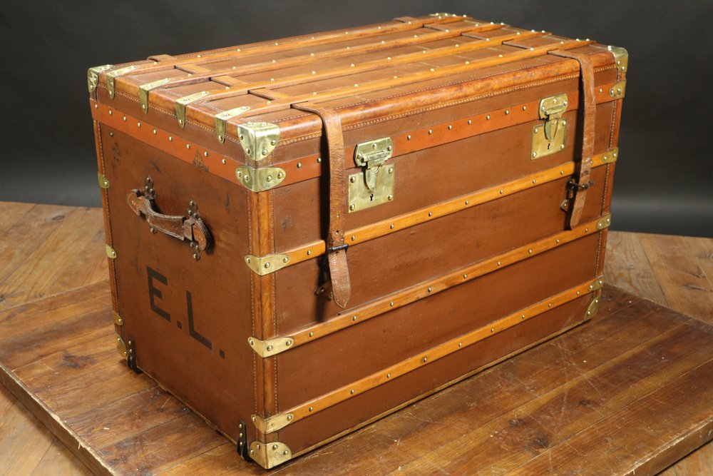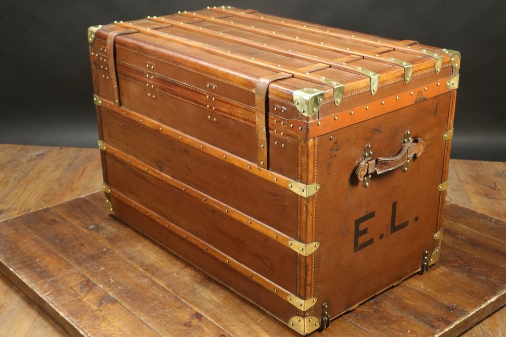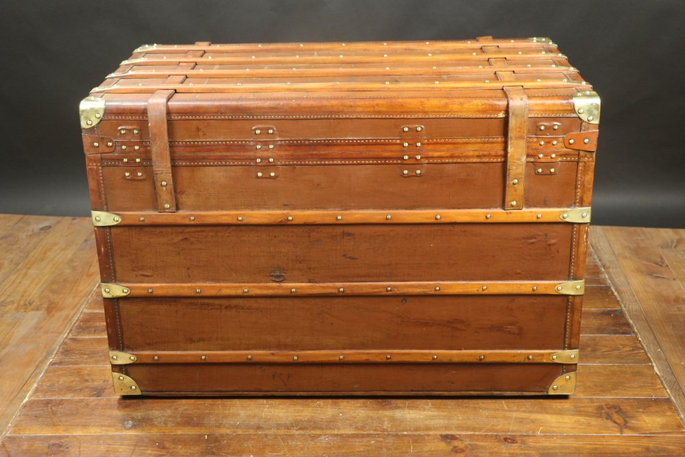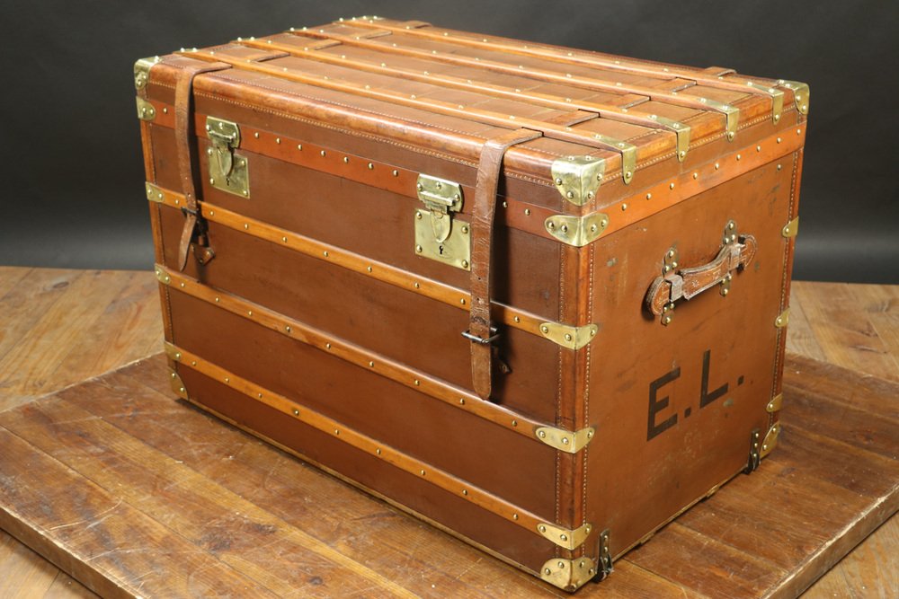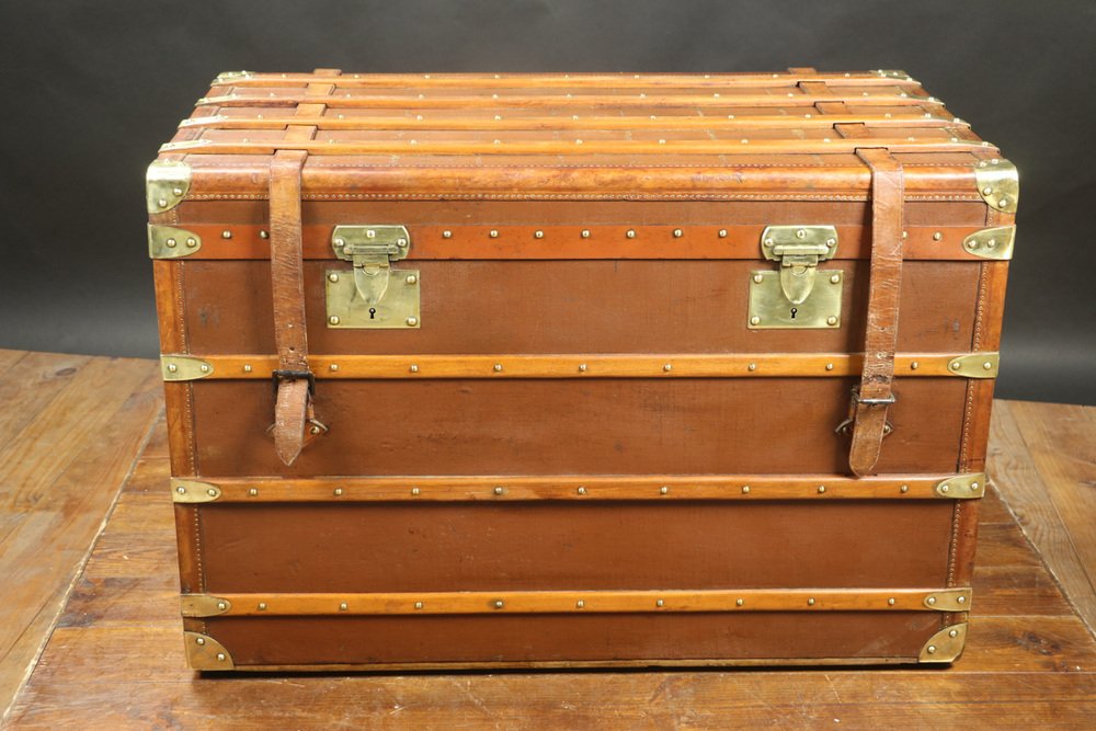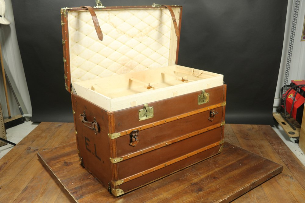 Moynat’s workshop was one of the first of its kind for leather work and developed many technical innovations; for instance, a patent for gutta-percha waterproofing in 1854, which used the sap of the gutta-percha tree. The company became widely lauded for its sturdy and waterproof trunks lined with silk or velvet intended for use in all modes of transport (steamship, railway, and eventually automobile travel).