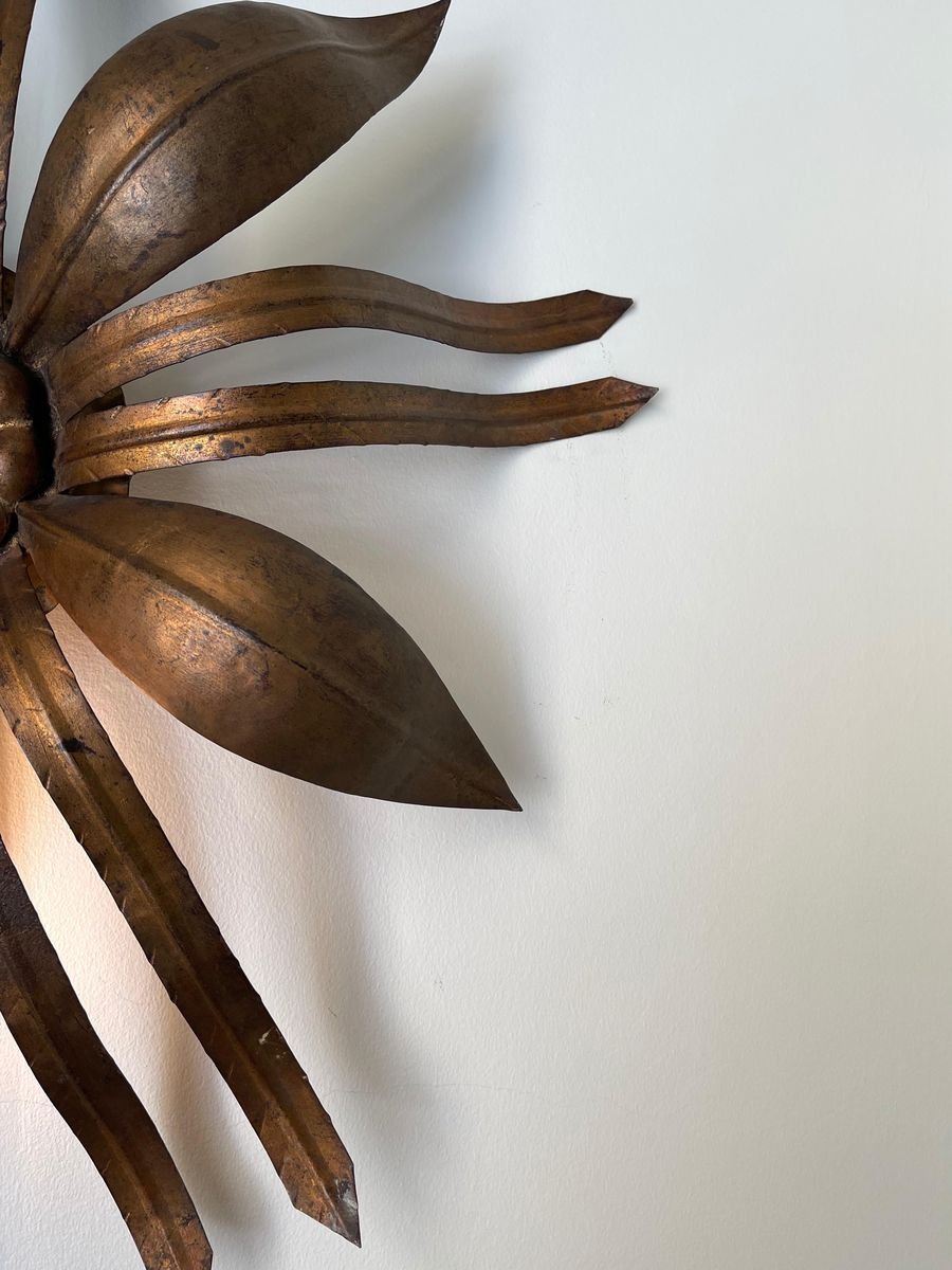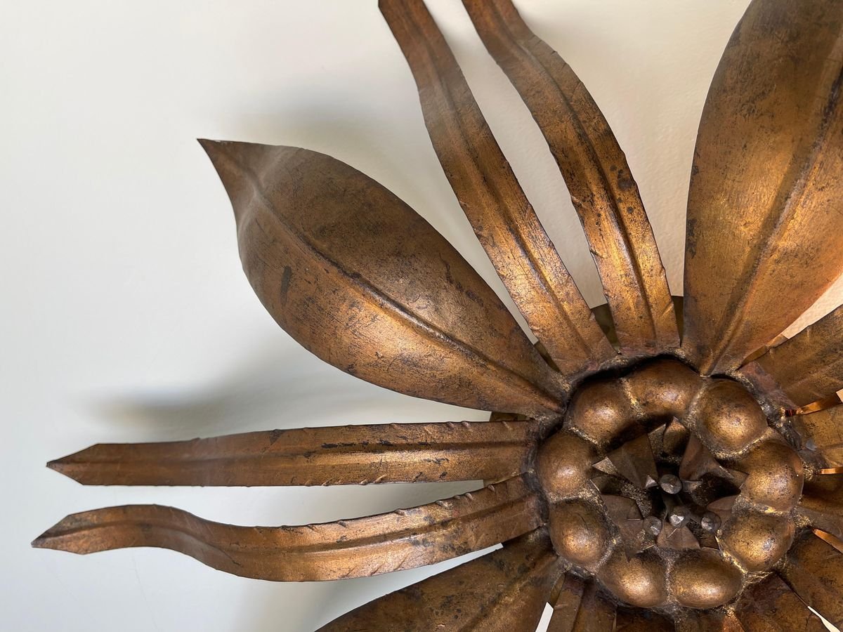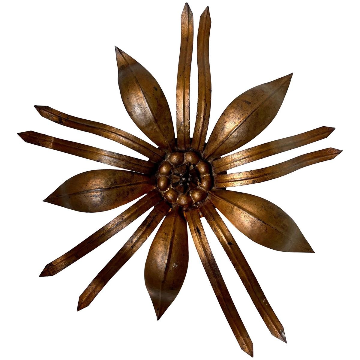 Sunburst Flower Flush Mount Light / Wall Light in Gilt Iron, France, 1970s