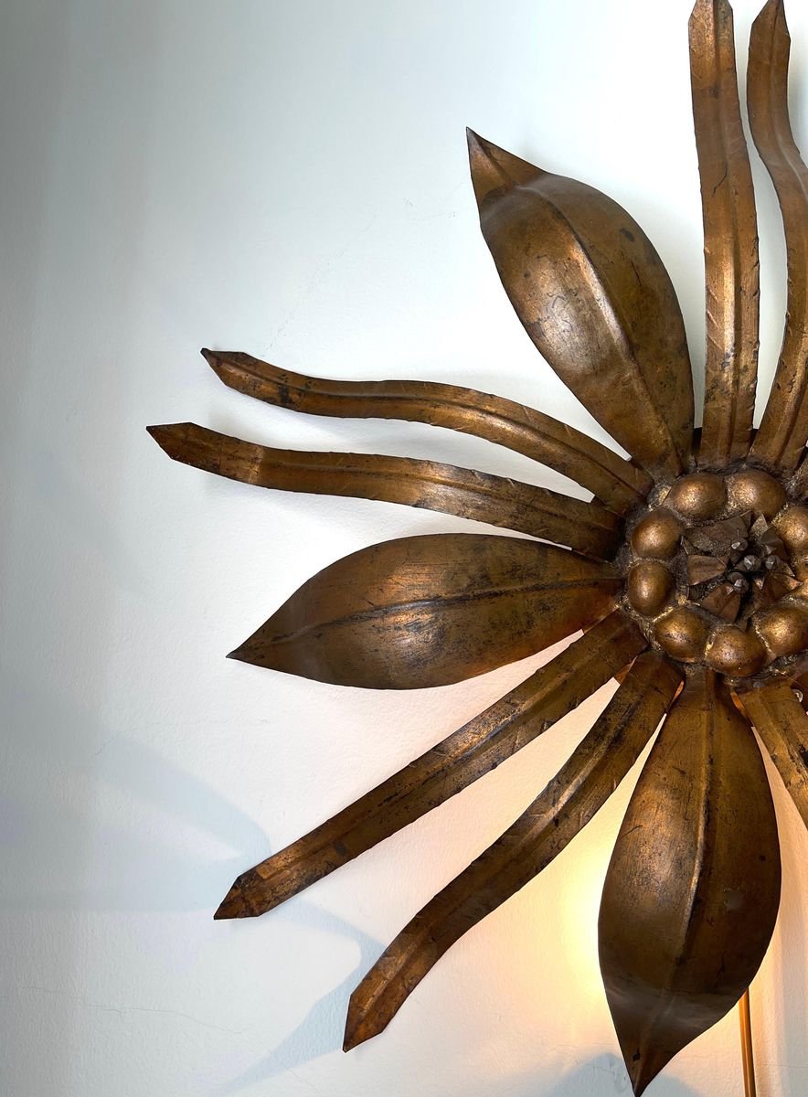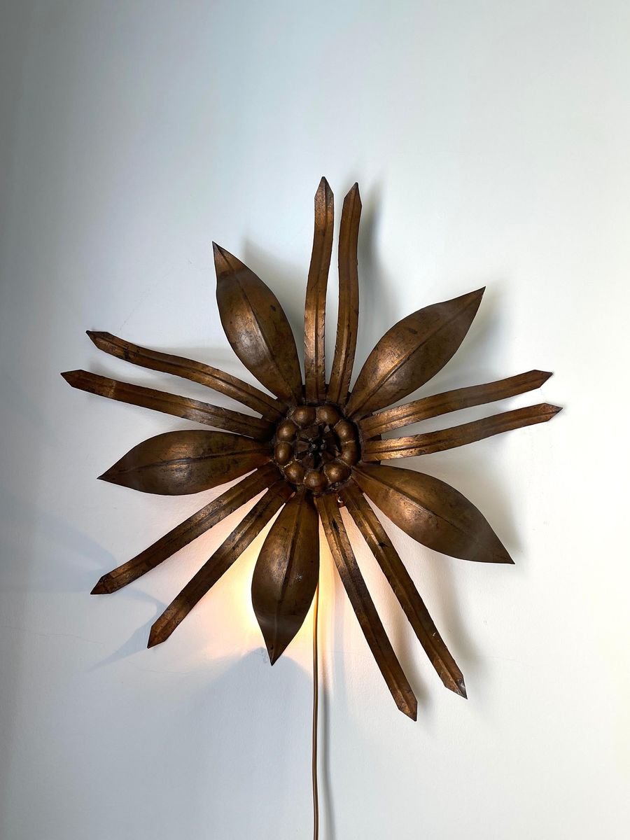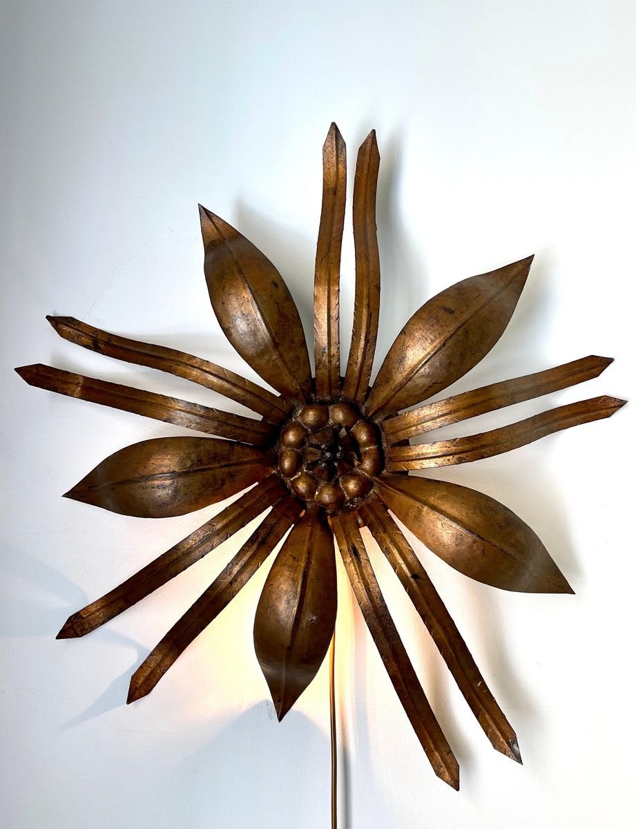 Sunburst Flower Flush Mount Light / Wall Light in Gilt Iron, France, 1970s