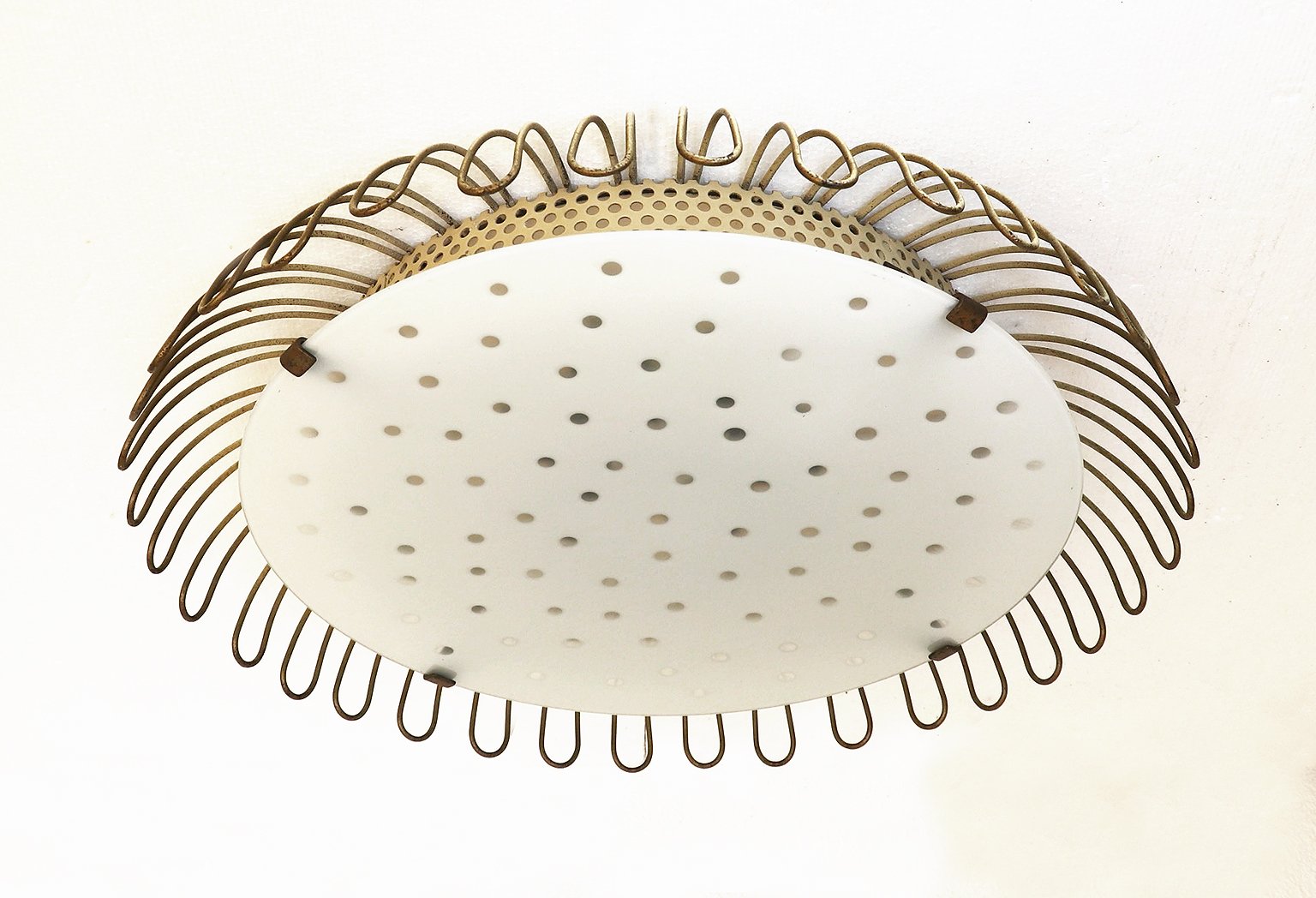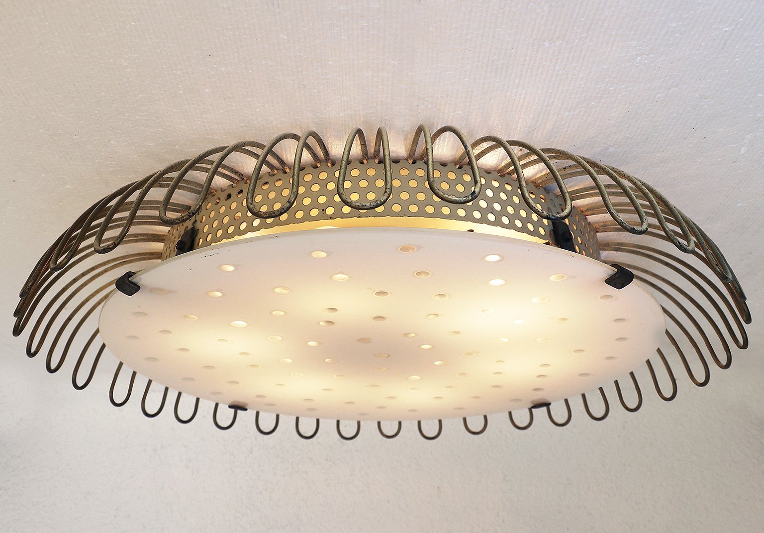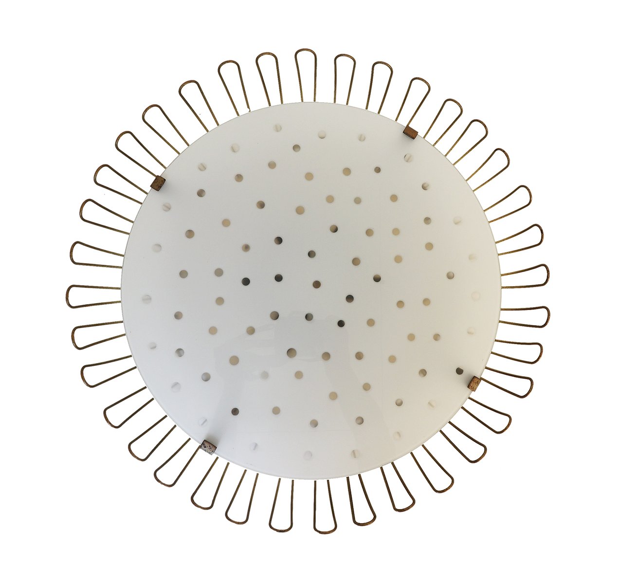 Sunflower Flush Mount Sconce in Glass and Brass by Karl Walther for Kaiser Leuchten, Germany, 1950s