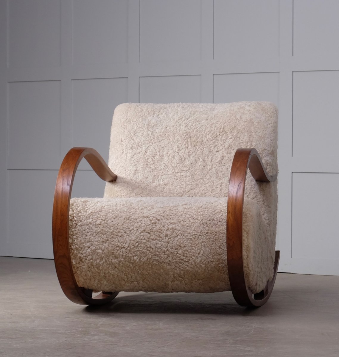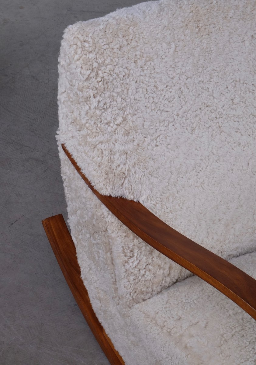 Swedish Sheepskin Rocking Chair, 1950s