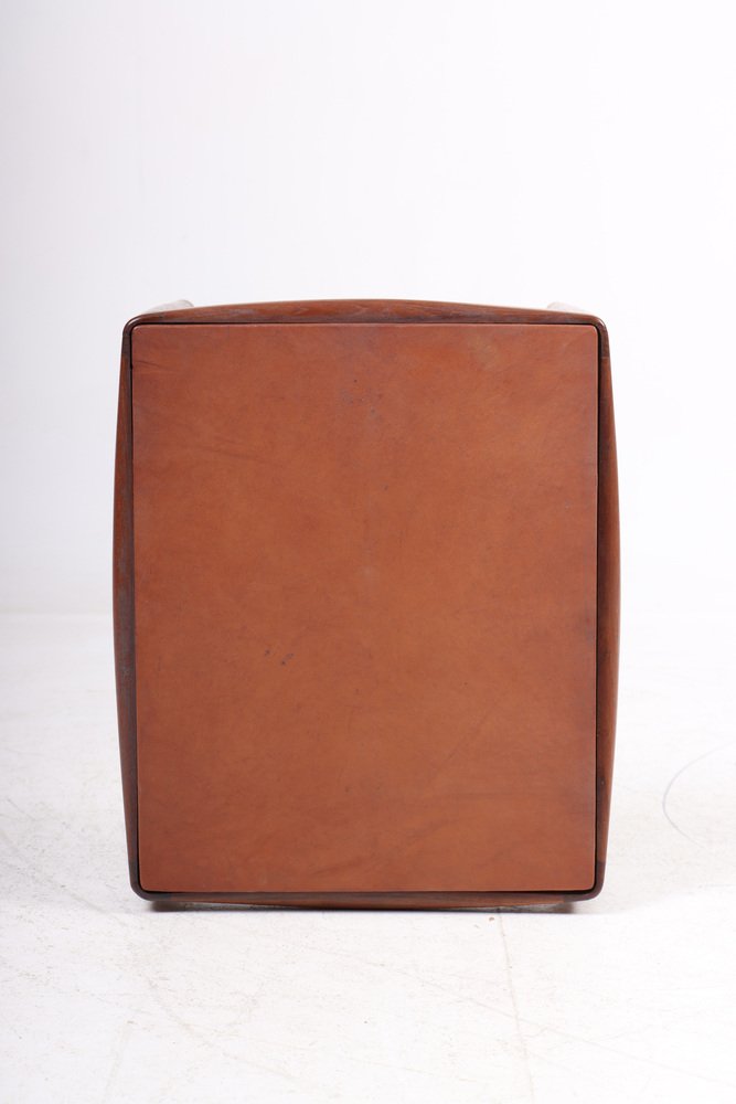 Larsen and Bender Madsen's most famous design, namely the Metropolitan Chair, was developed in 1949 and produced from 1950; its name came from New York's Metropolitan Museum of Art, where it was shown and acquired for the Arts of Denmark exhibition in 1960-61. Upholstered in saddle leather, the Metropolitan Chair is an elegant example of organic Danish modern design.
