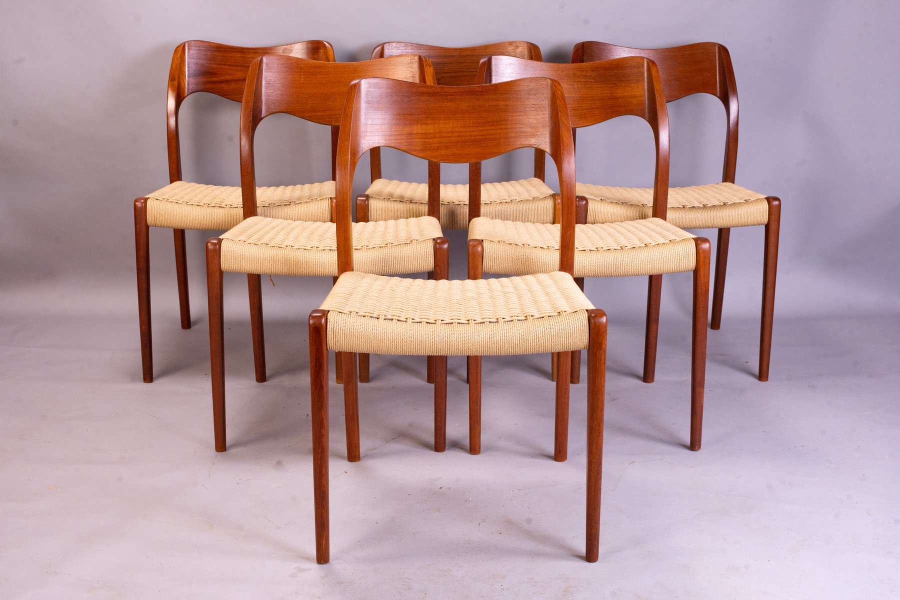Teak Model 71 Dining Chairs by Niels Møller for J. L. Møllers, 1960s, Set of 6